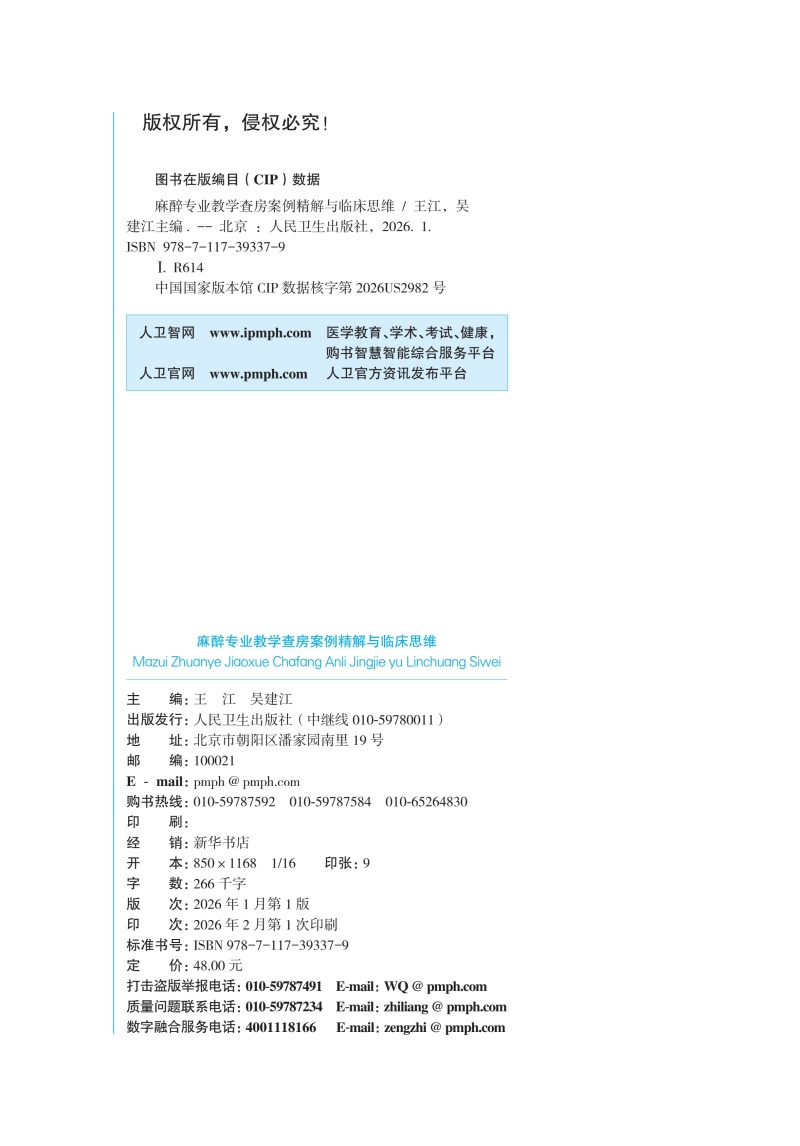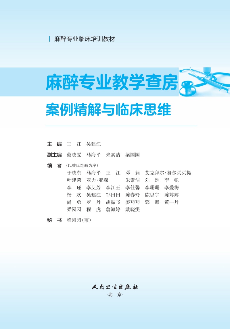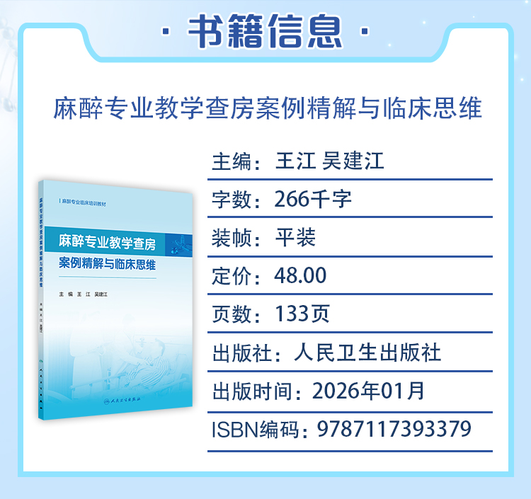 麻醉专业教学查房案例精解与临床思维 王江 吴建江 主编 麻醉专业临床培训教材 培训教材 医药 卫生 9787117393379 人民卫生出版社