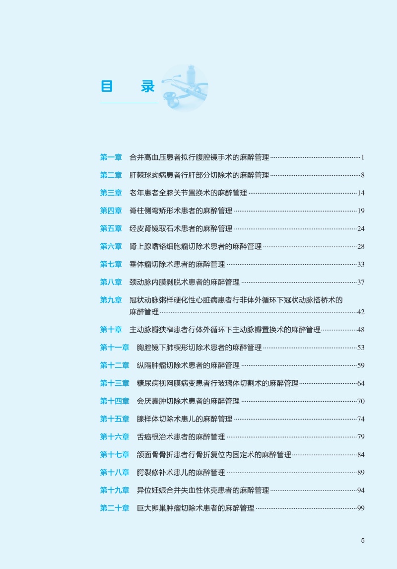 第一章合并高血压患者拟行腹腔镜手术的麻醉管理/1 第二章肝棘球蚴病患者行肝部分切除术的麻醉管理/8 第三章老年患者全膝关节置换术的麻醉管理/14 第四章脊柱侧弯矫形术患者的麻醉管理/19 第五章经皮肾镜取石术患者的麻醉管理/24 第六章肾上腺嗜铬细胞瘤切除术患者的麻醉管理/28 第七章垂体瘤切除术患者的麻醉管理/33 第八章颈动脉内膜剥脱术患者的麻醉管理/37 第九章冠状动脉粥样硬化性心脏病患者行非体外循环下冠状动脉搭桥术的麻醉管理/42 第十章主动脉瓣狭窄患者行体外循环下主动脉瓣置换术的麻醉管理/48 第十一章胸腔镜下肺楔形切除术患者的麻醉管理/53 第十二章纵隔肿瘤切除术患者的麻醉管理/59 第十三章糖尿病视网膜病变患者行玻璃体切割术的麻醉管理/64 第十四章会厌囊肿切除术患者的麻醉管理/70 第十五章腺样体切除术患儿的麻醉管理/74 第十六章舌癌根治术患者的麻醉管理/79 第十七章颌面骨骨折患者行骨折复位内固定术的麻醉管理/84 第十八章腭裂修补术患儿的麻醉管理/89 第十九章异位妊娠合并失血性休克患者的麻醉管理/94 第二十章巨大卵巢肿瘤切除术患者的麻醉管理/99 第二十一章肥胖产妇行剖宫产术的麻醉管理/104 第二十二章凶险性前置胎盘产妇行剖宫产术的麻醉管理/109 第二十三章脑积水患儿行脑室腹腔分流术的麻醉管理/113 第二十四章肺棘球蚴病患儿手术的麻醉管理/117 第二十五章日间行膝关节镜探查术患者的麻醉管理/123 第二十六章慢性阻塞性肺疾病患者行(支)气管镜诊疗的麻醉管理/128 参考文献/133