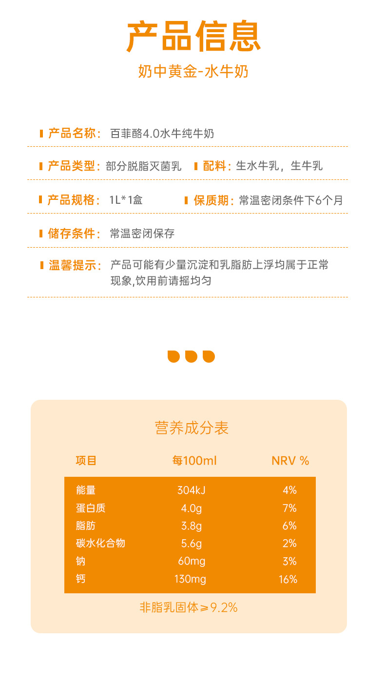 品名:4.0g百菲酪水牛纯奶 |