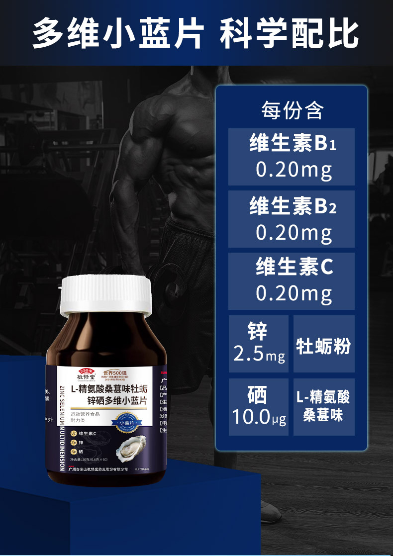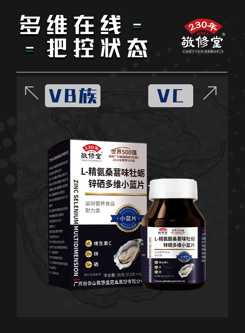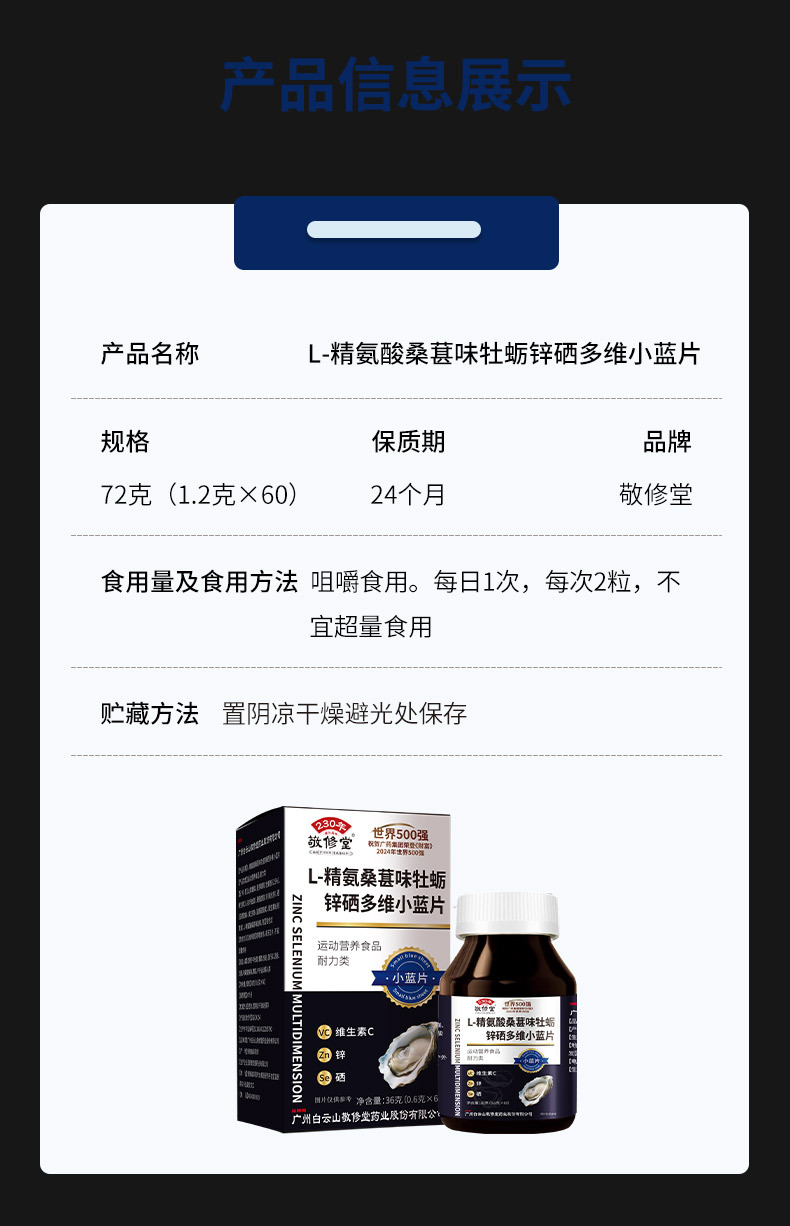 限时抢6瓶!【有“硒”生活,“精”力充沛!】敬修堂精氨酸牡蛎锌硒片 多维小蓝片60粒 多维在线 把控状态-QB