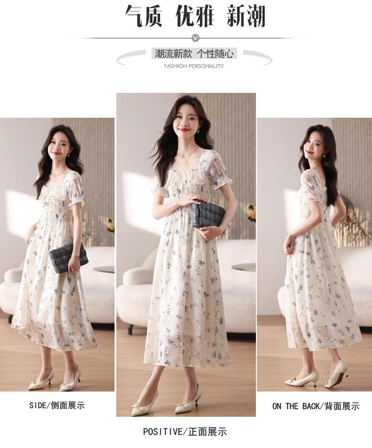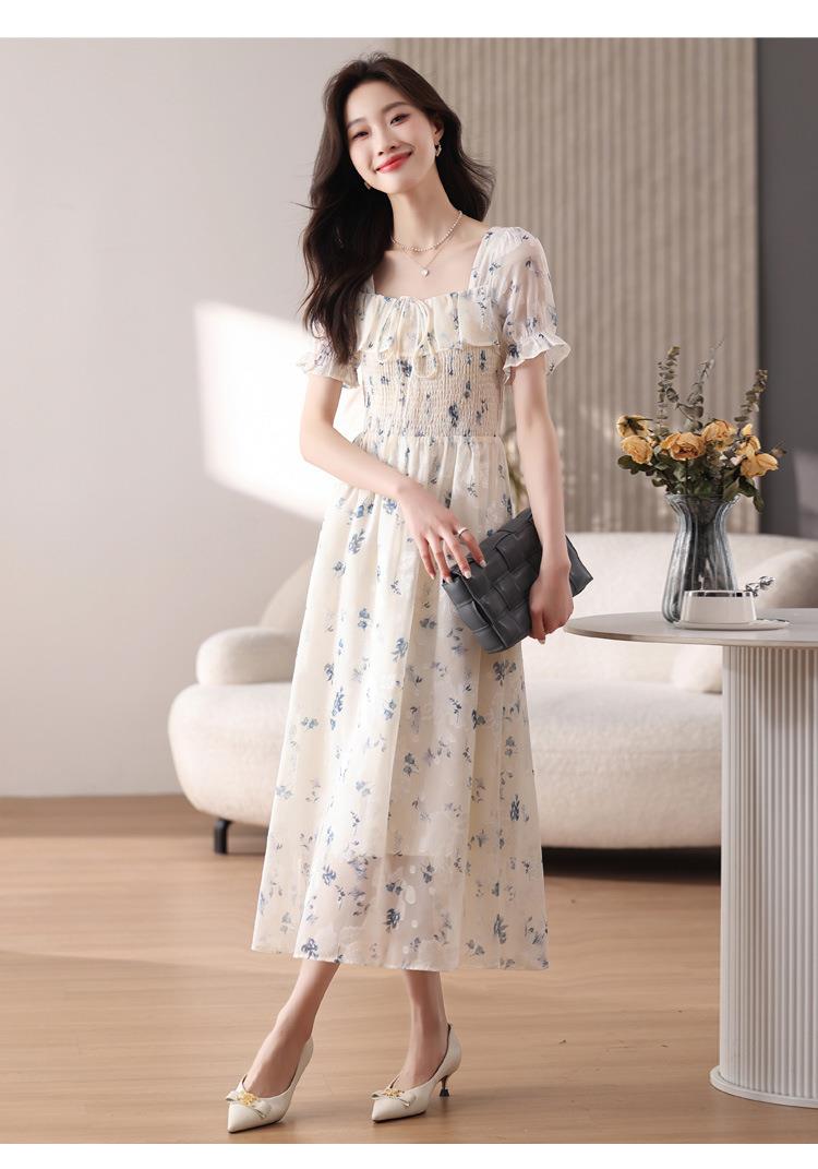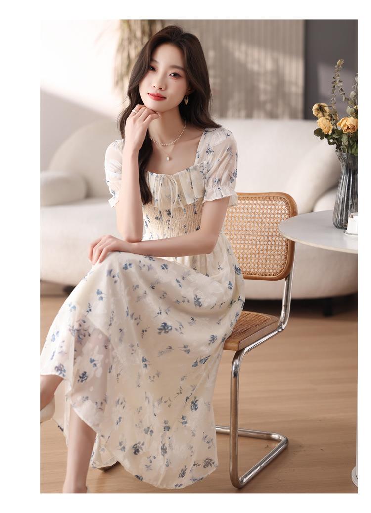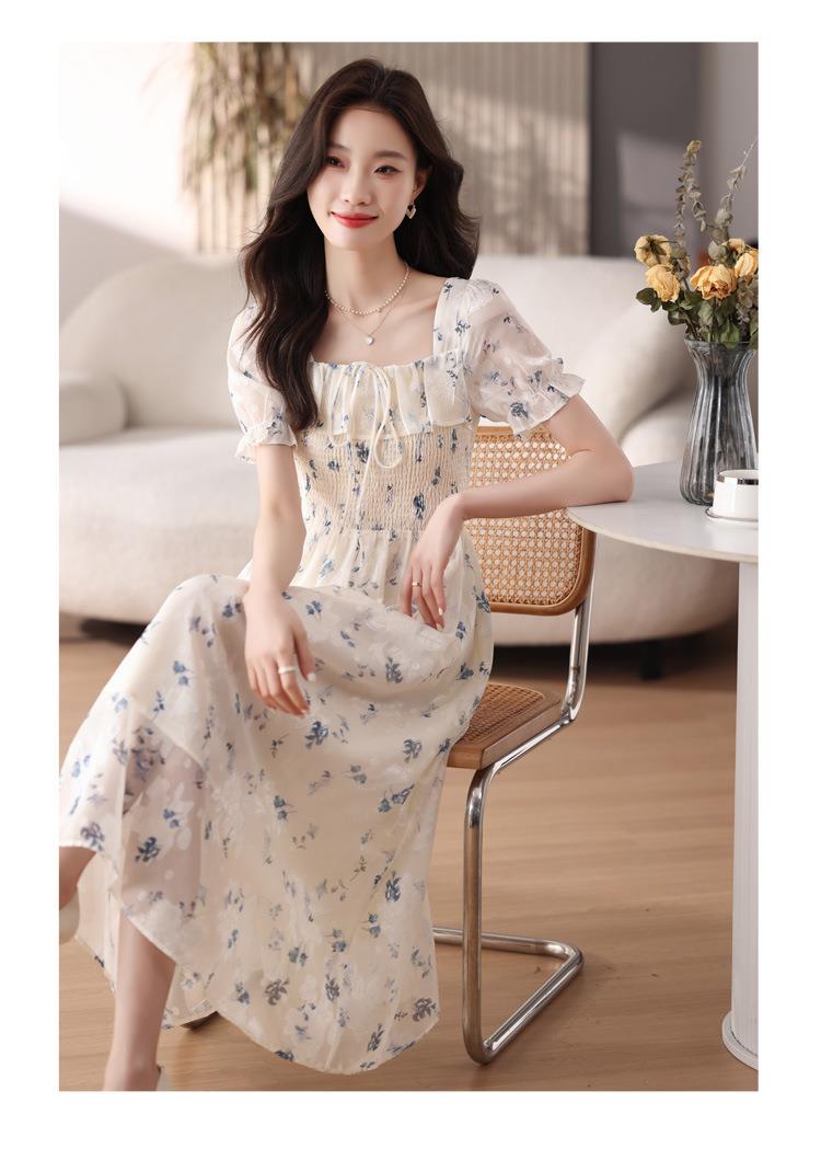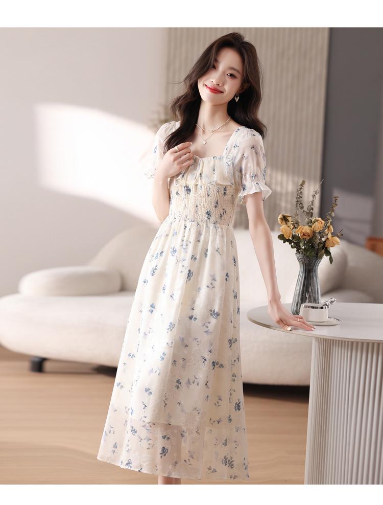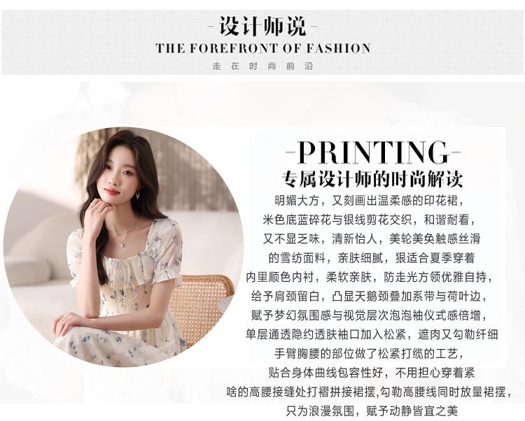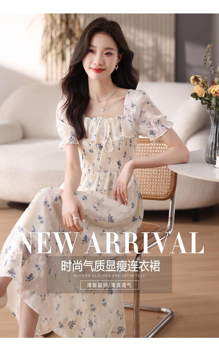 碎花连衣裙女夏季短袖2024新款雪纺海边度假初恋裙子泡泡袖长裙子