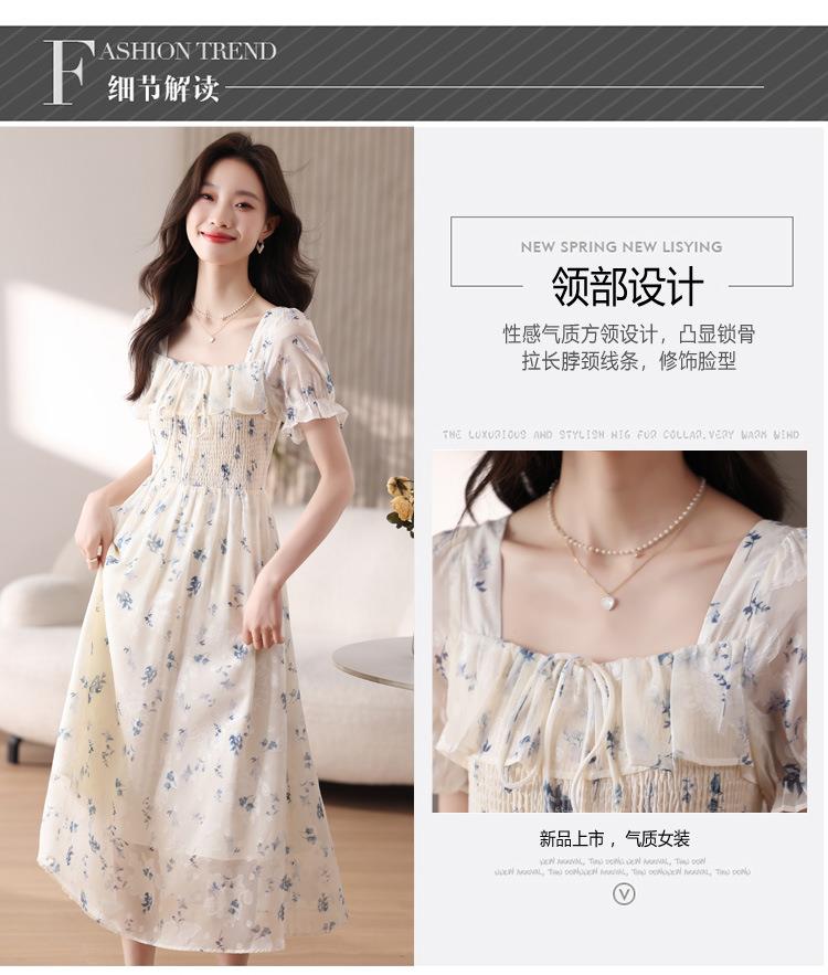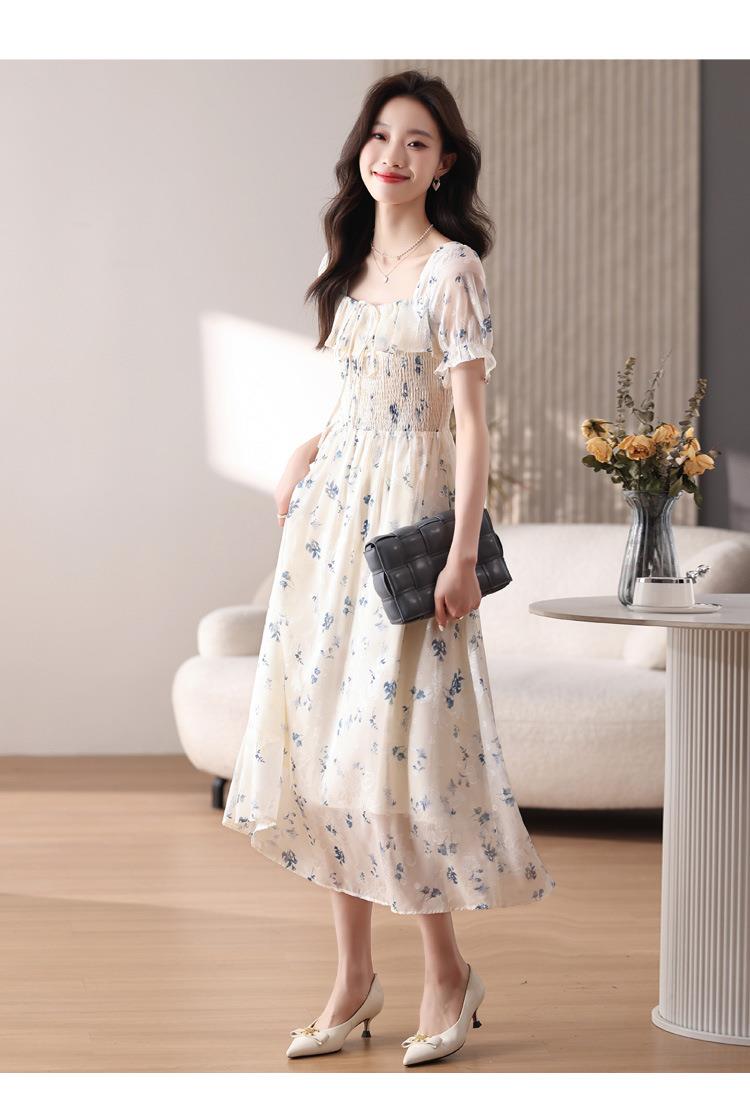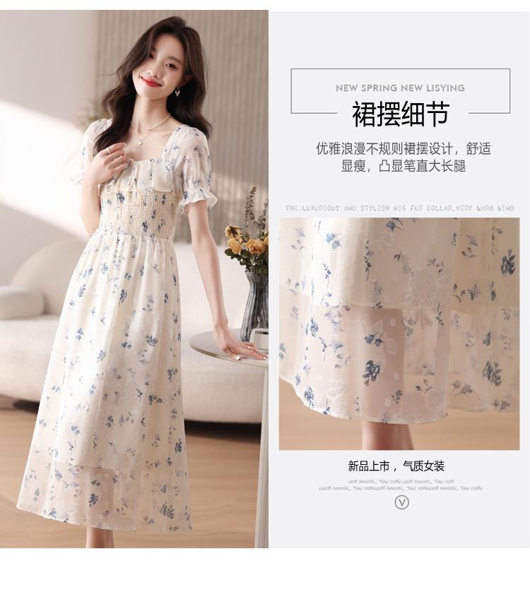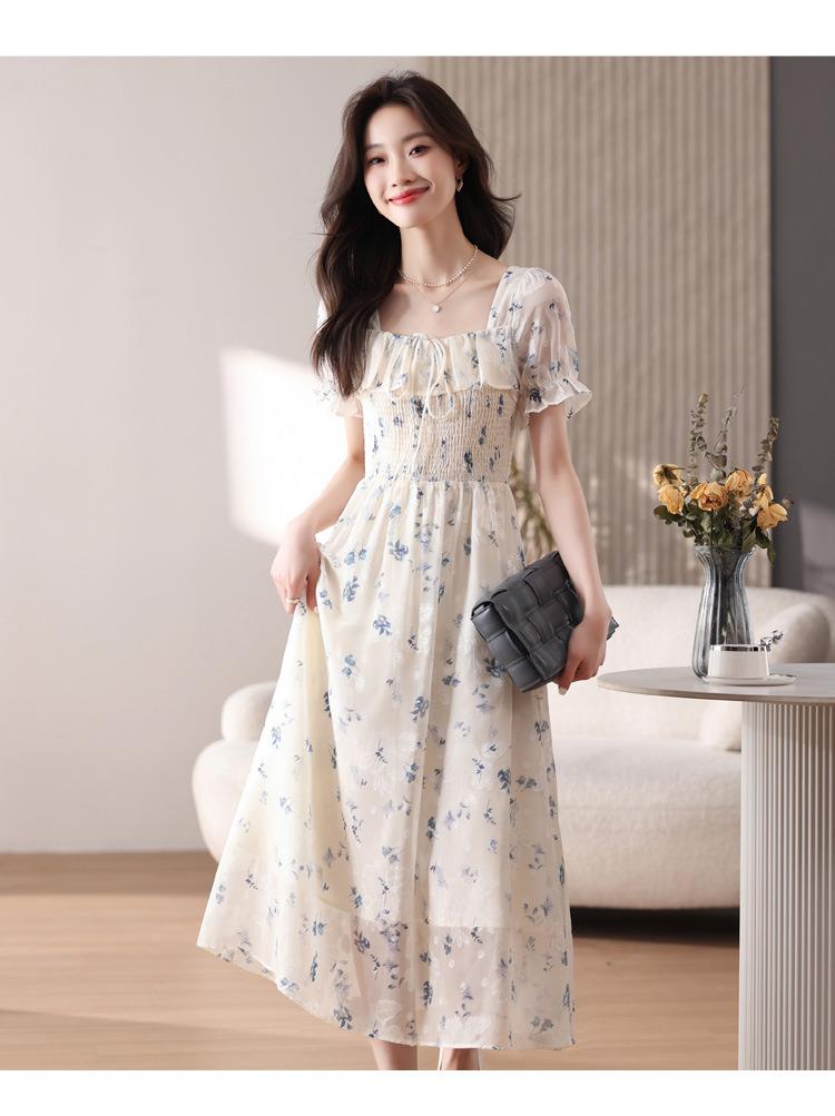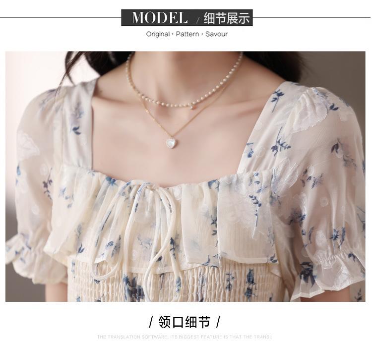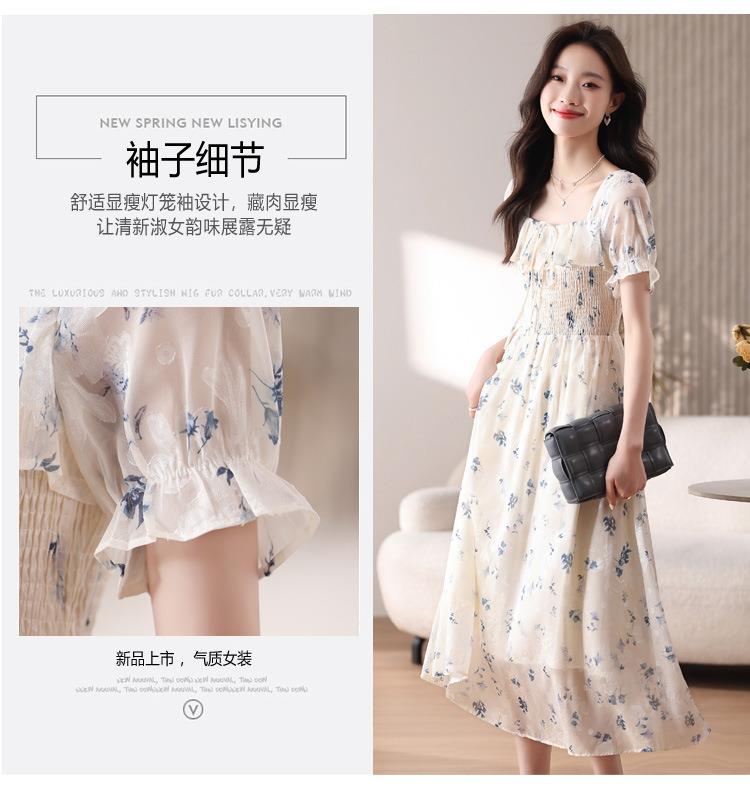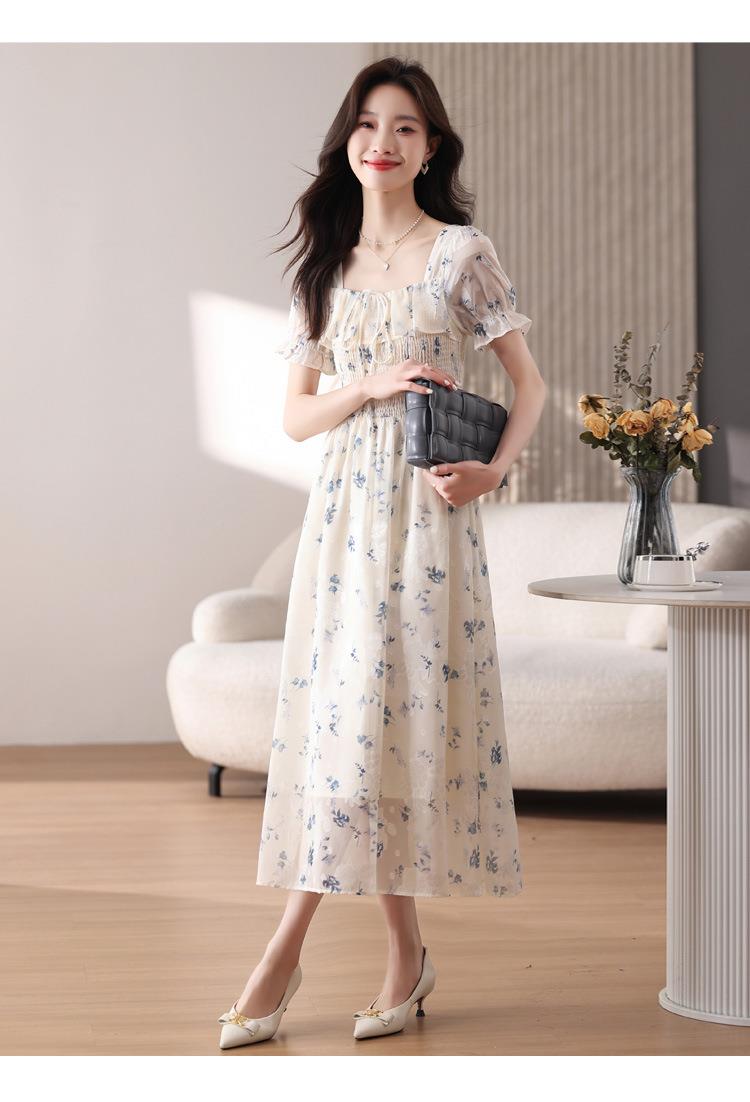碎花连衣裙女夏季短袖2024新款雪纺海边度假初恋裙子泡泡袖长裙子