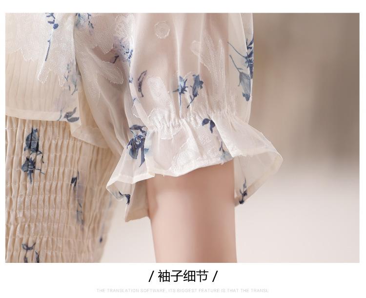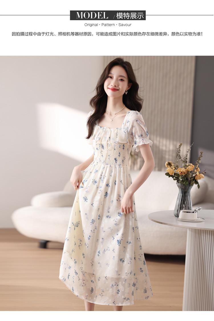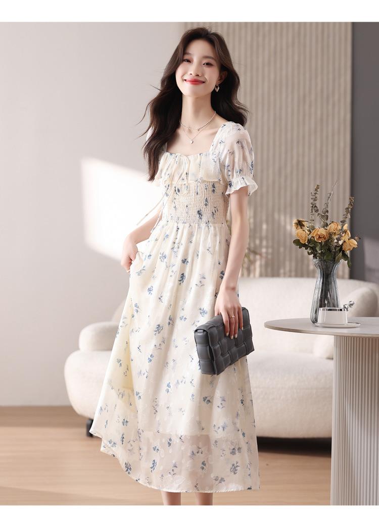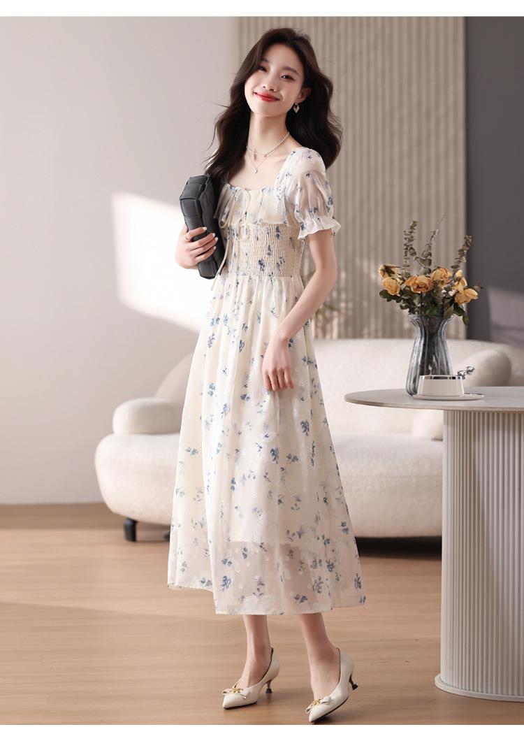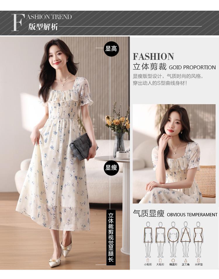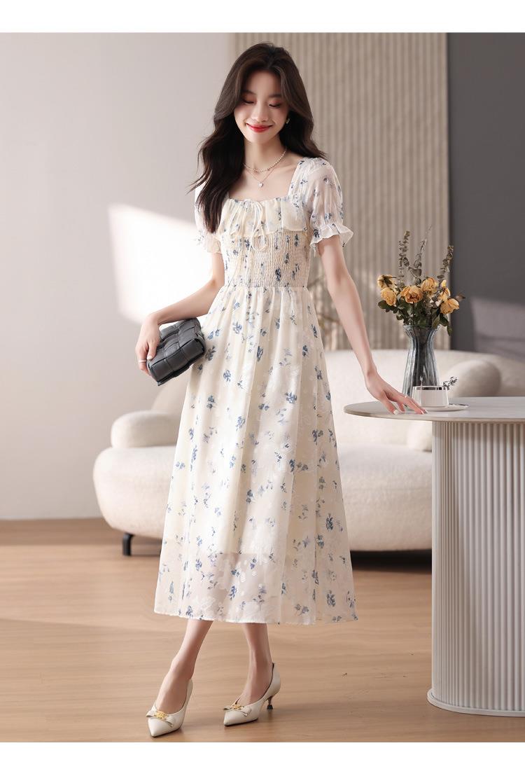 碎花连衣裙女夏季短袖2024新款雪纺海边度假初恋裙子泡泡袖长裙子
