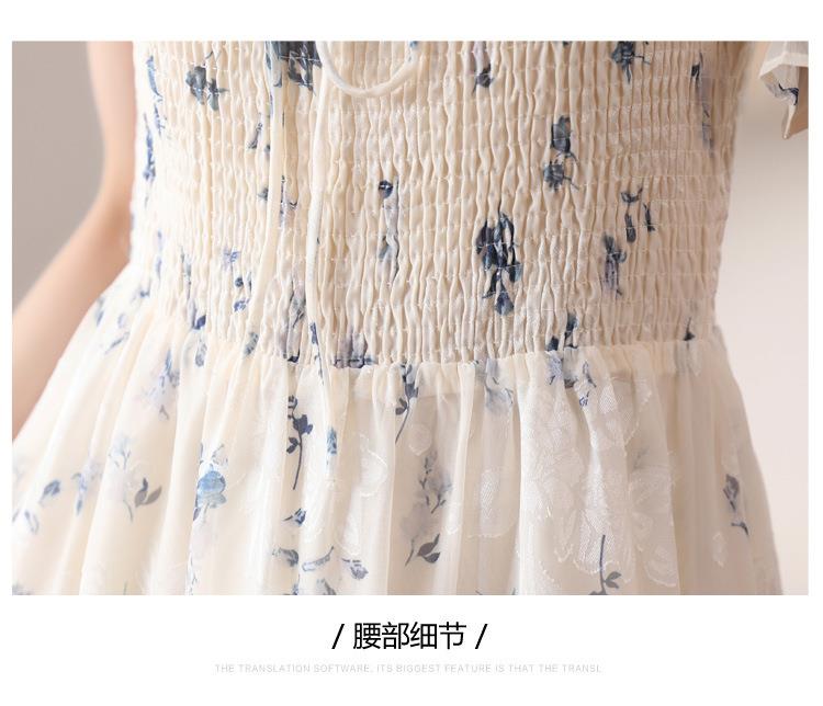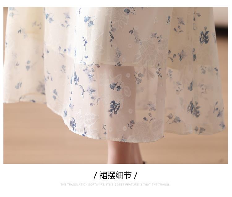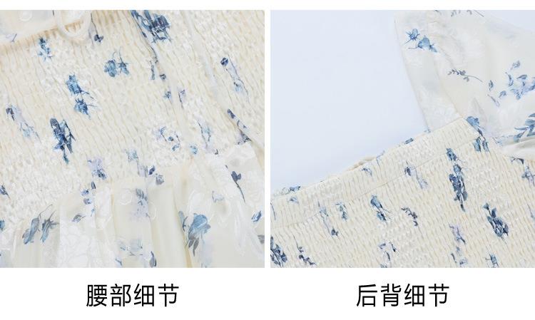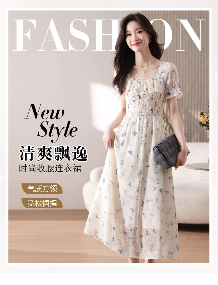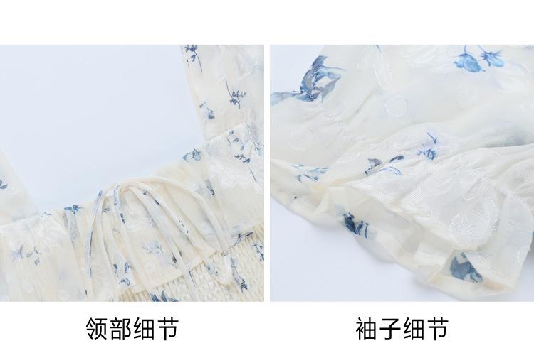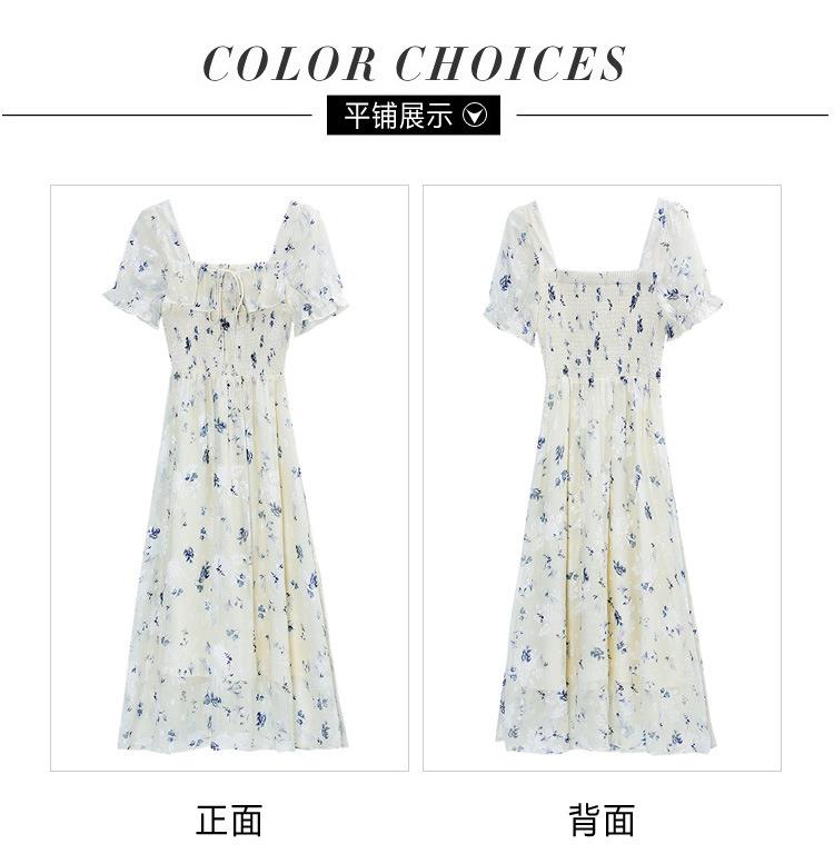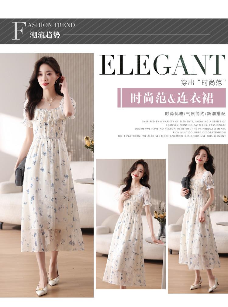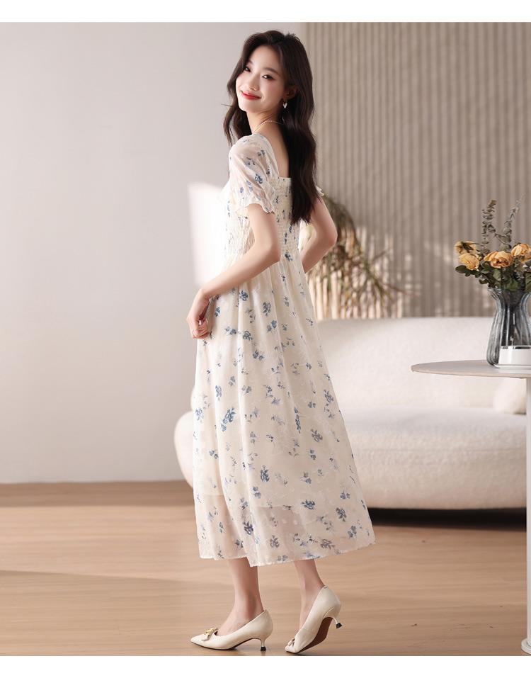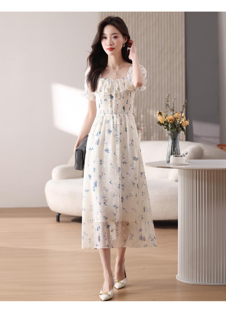 碎花连衣裙女夏季短袖2024新款雪纺海边度假初恋裙子泡泡袖长裙子