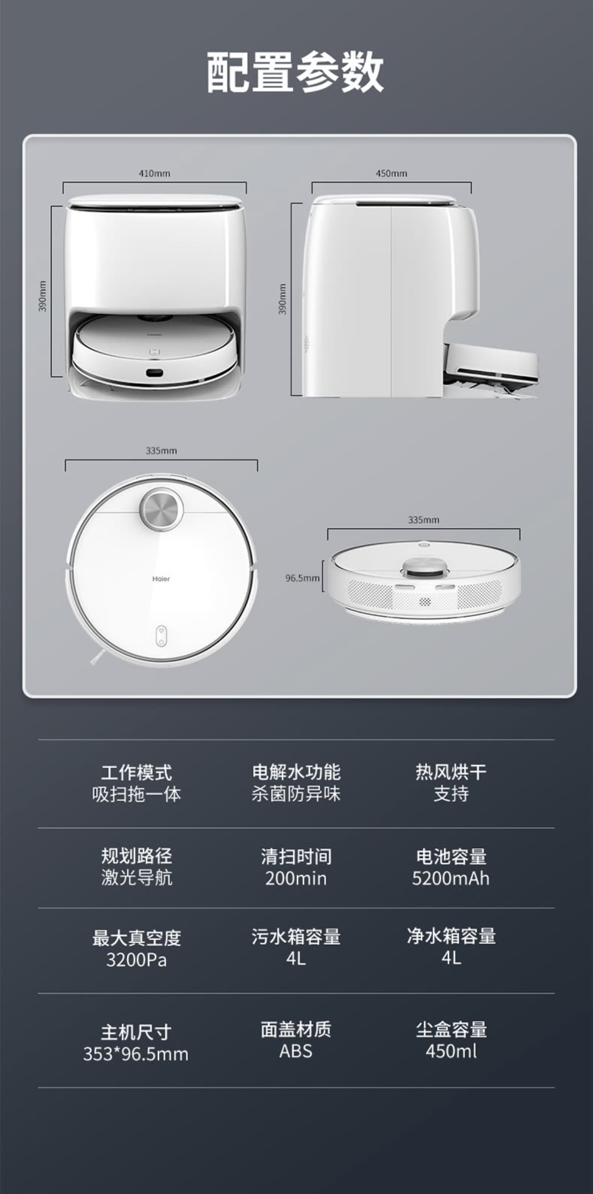 海尔(Haier)扫地机器人H10+ 大白鲸