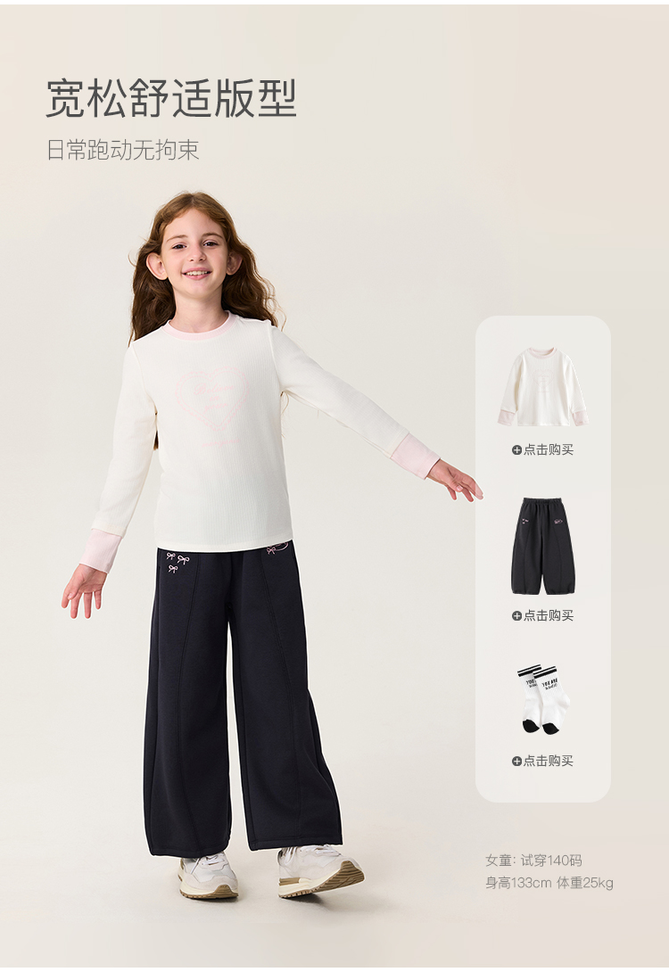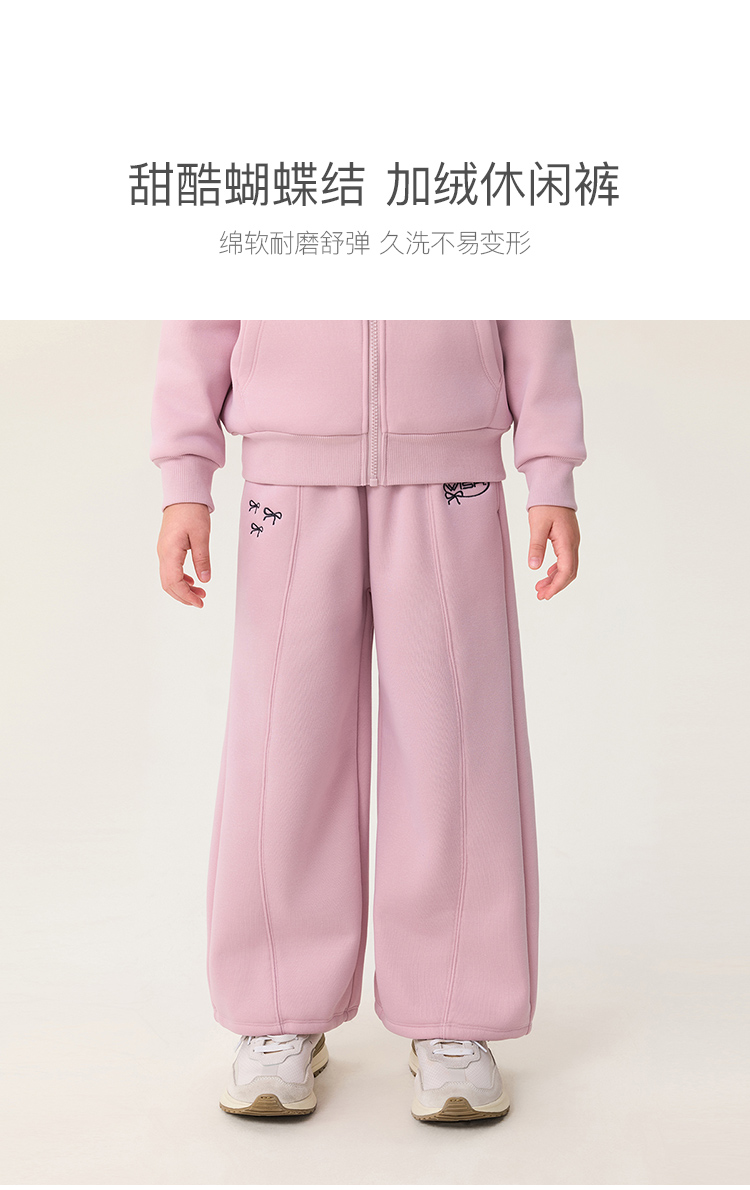 【奥利绒】马克珍妮女童甜酷蝴蝶结加绒运动裤2025年冬装新款551531