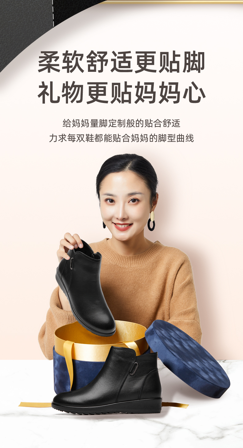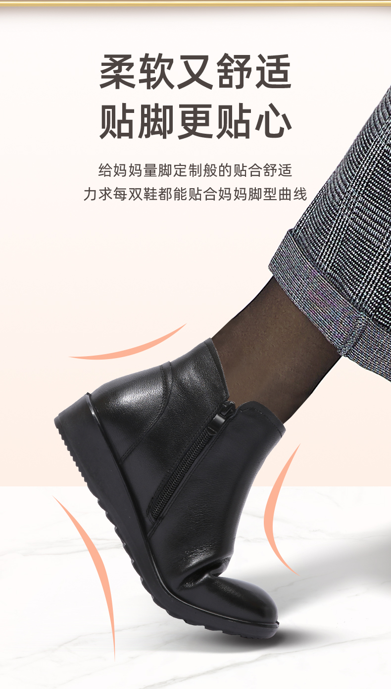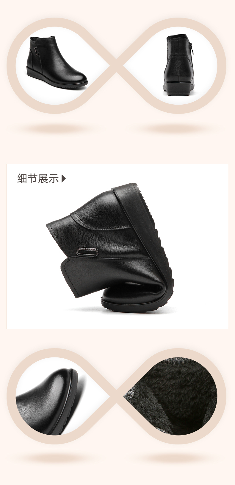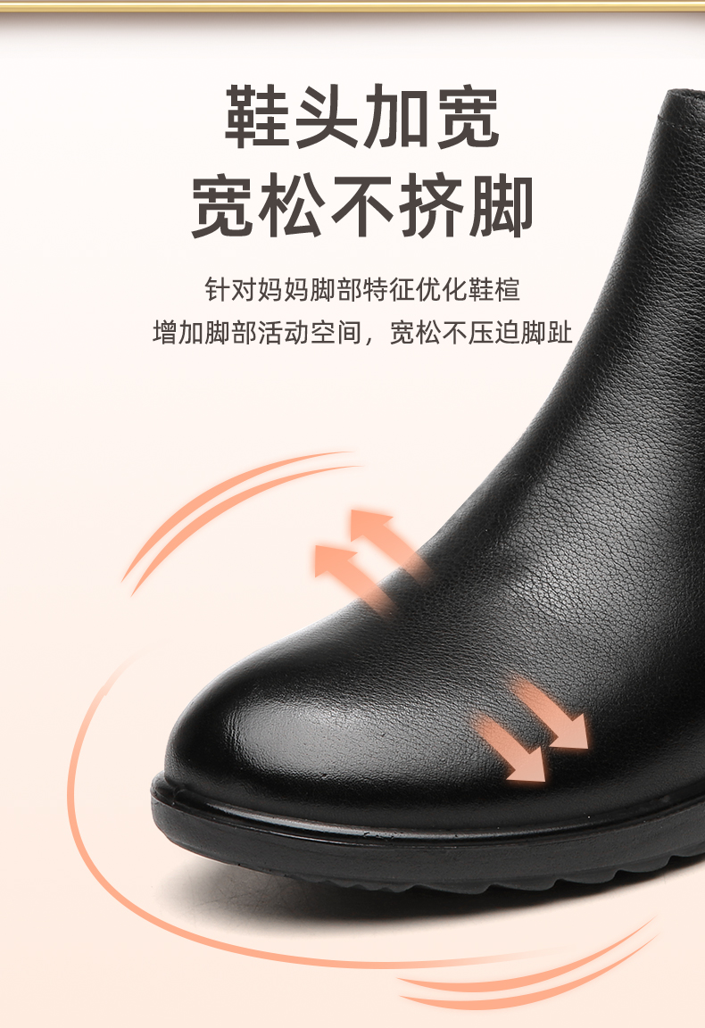 信诺妈妈棉鞋软底加绒保暖中老年棉鞋2020年冬季防滑加厚真皮短靴