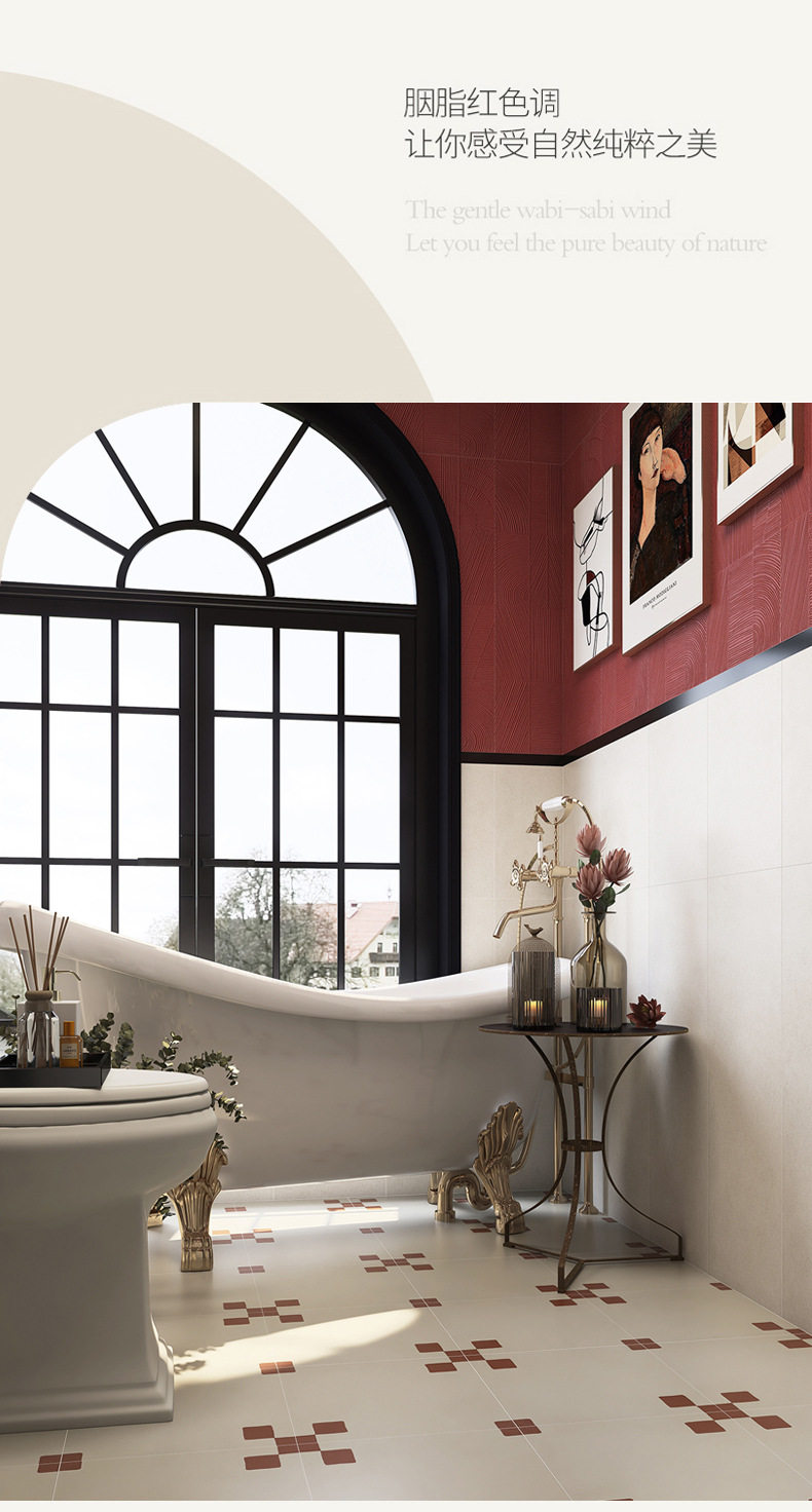 佛山花砖阳台复古瓷砖卫生间瓷砖红全300x800地砖墙砖广东厨房 商品图4