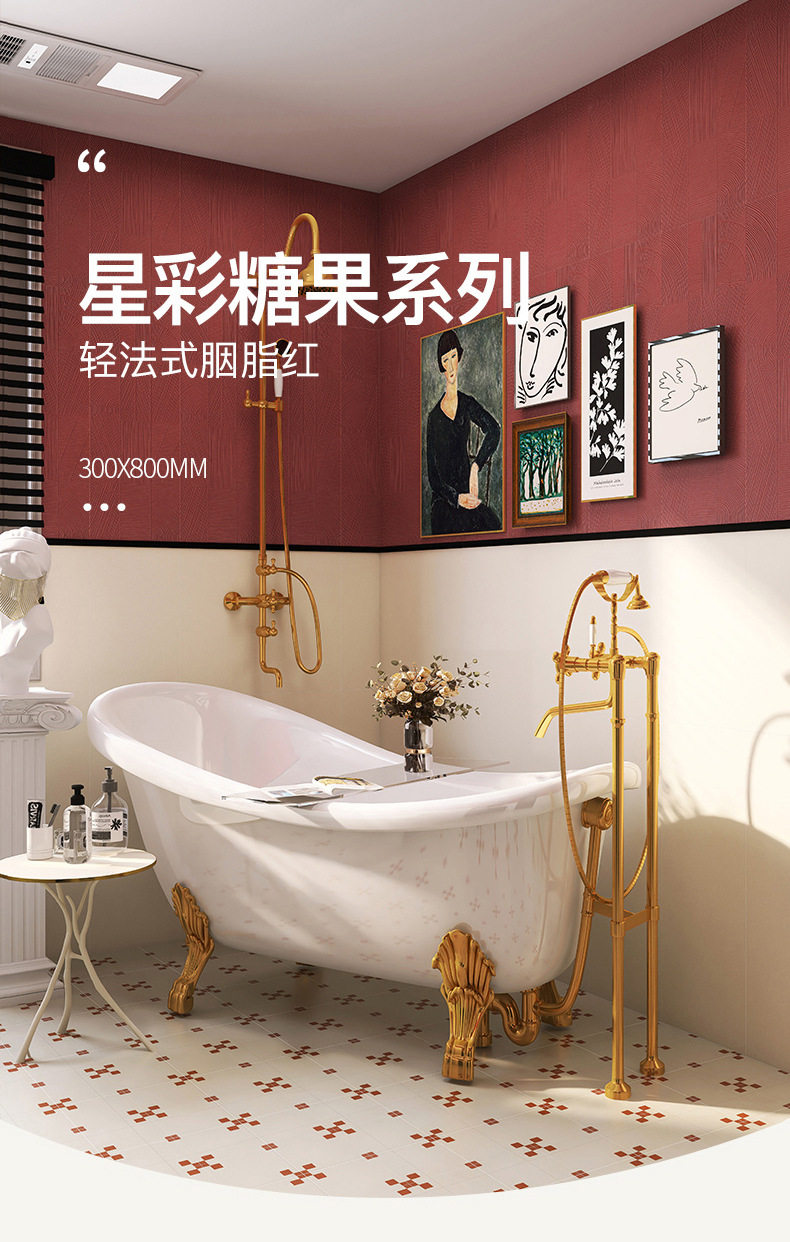 佛山花砖阳台复古瓷砖卫生间瓷砖红全300x800地砖墙砖广东厨房 商品图0