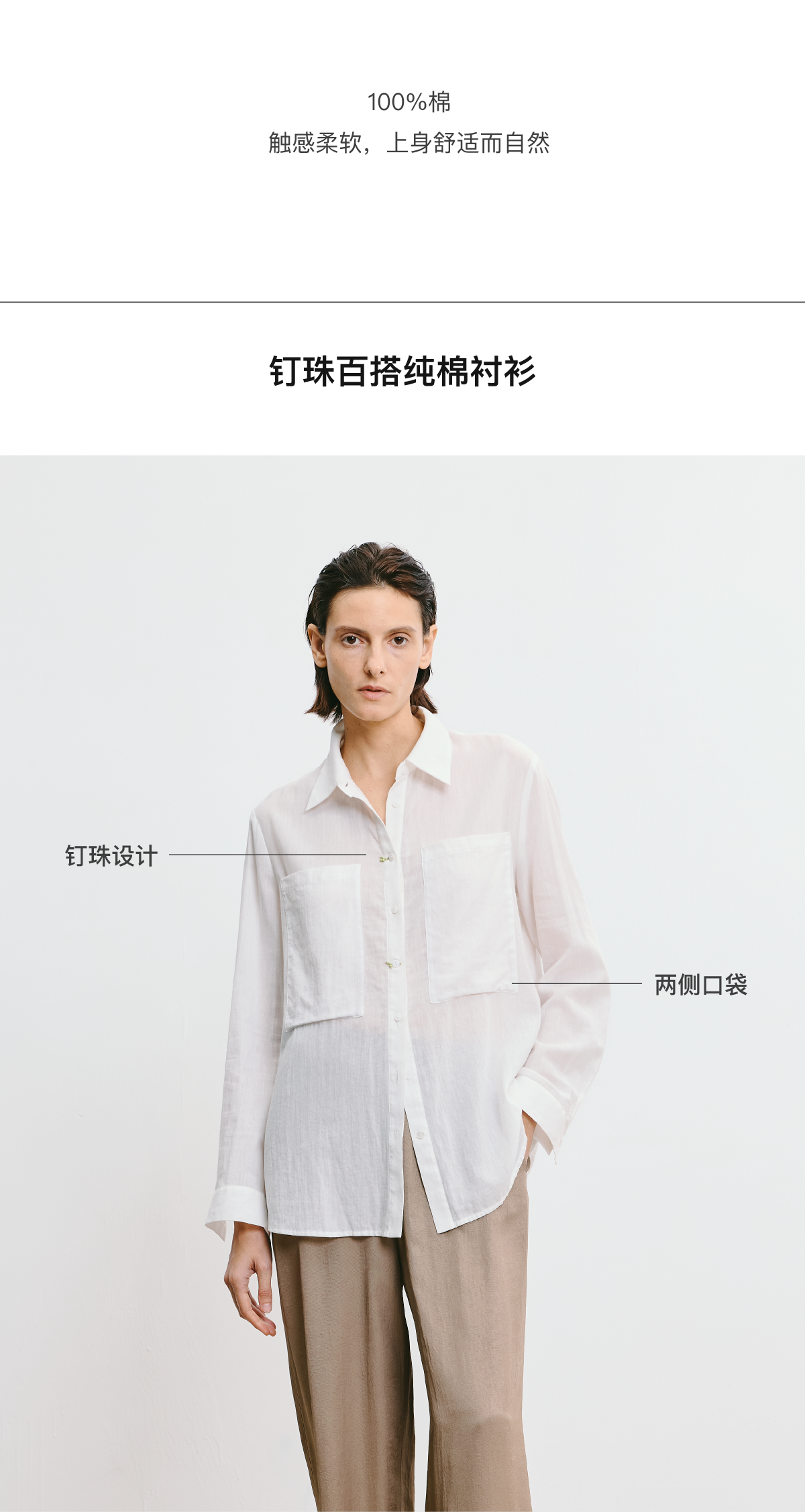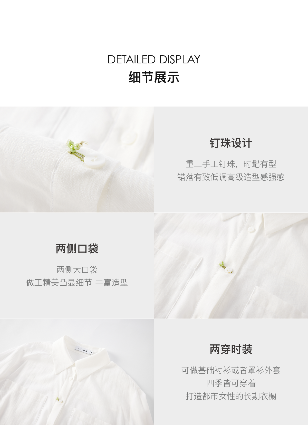 LIYIHAN序章 薄款轻盈款细密纯棉钉珠百搭衬衫极简风