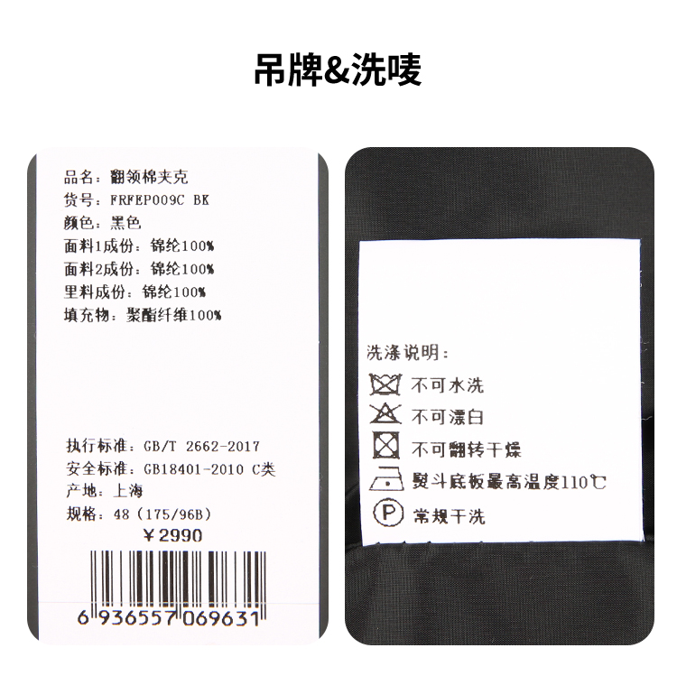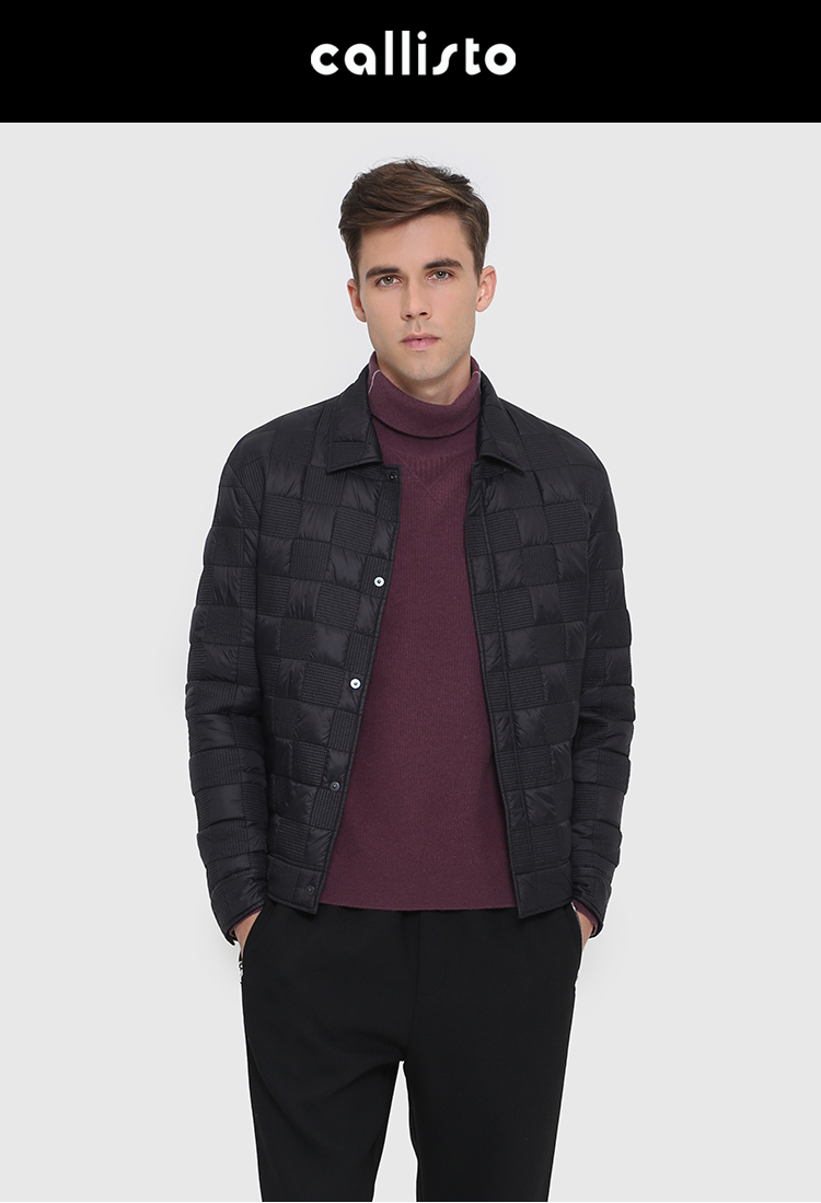 callisto黑色锦纶聚酯纤维翻领棉夹克 FRFEP009C