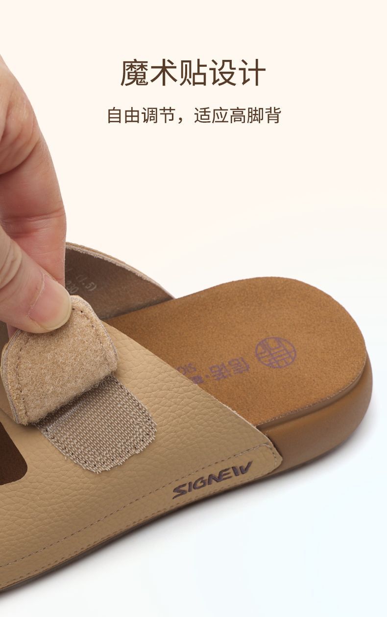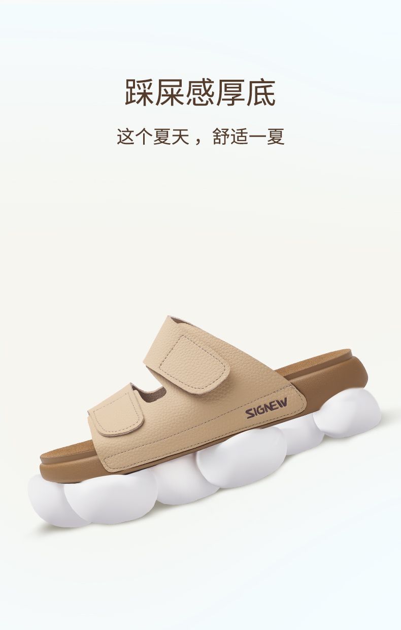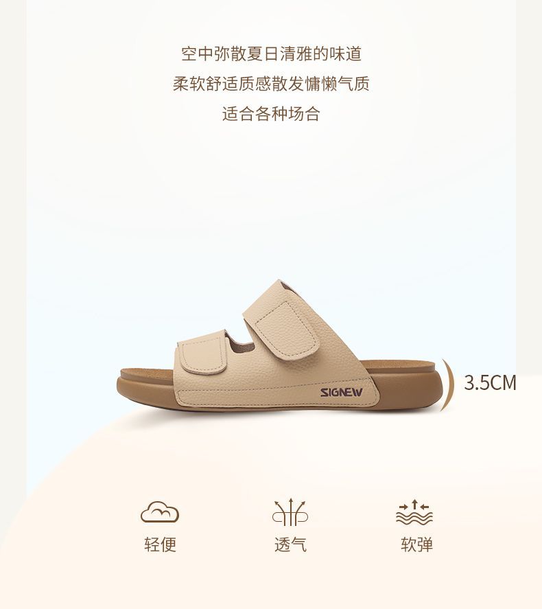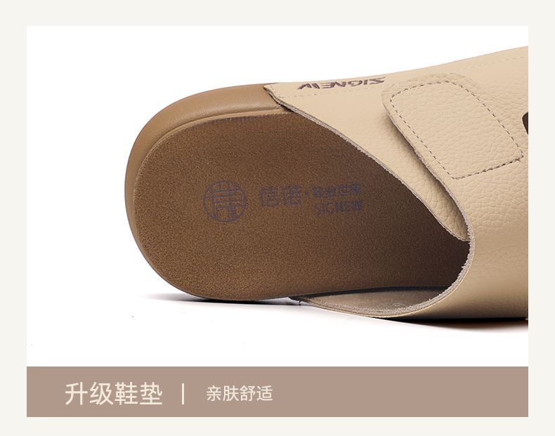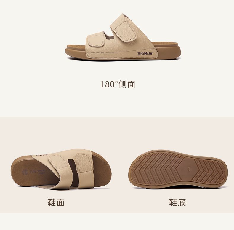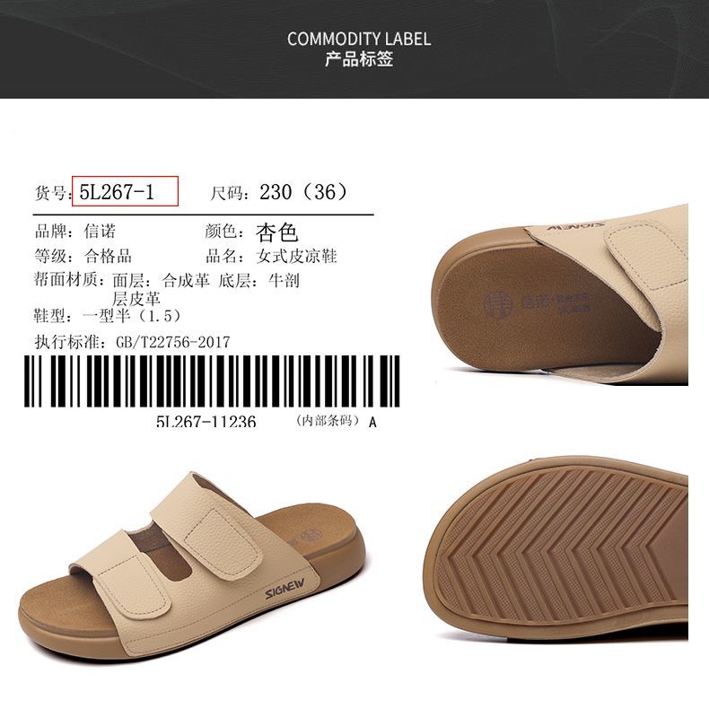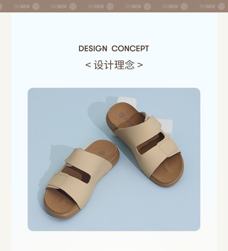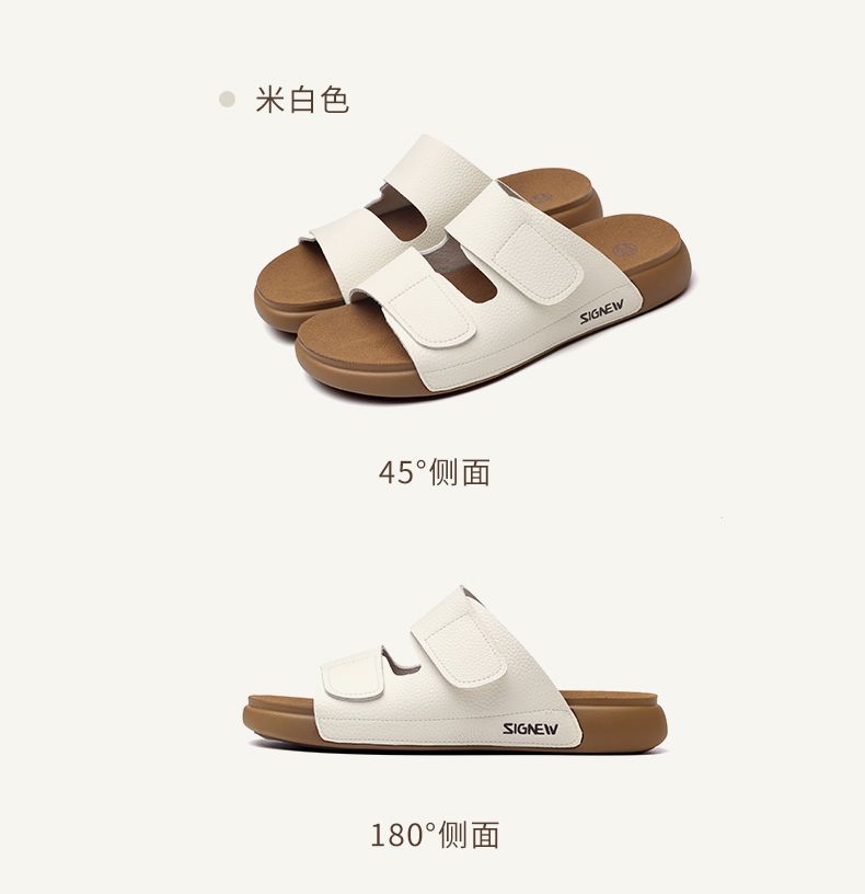 信诺真皮平底勃肯拖鞋女2025夏季新款女鞋半拖凉鞋外穿轻便沙滩鞋5L267-1