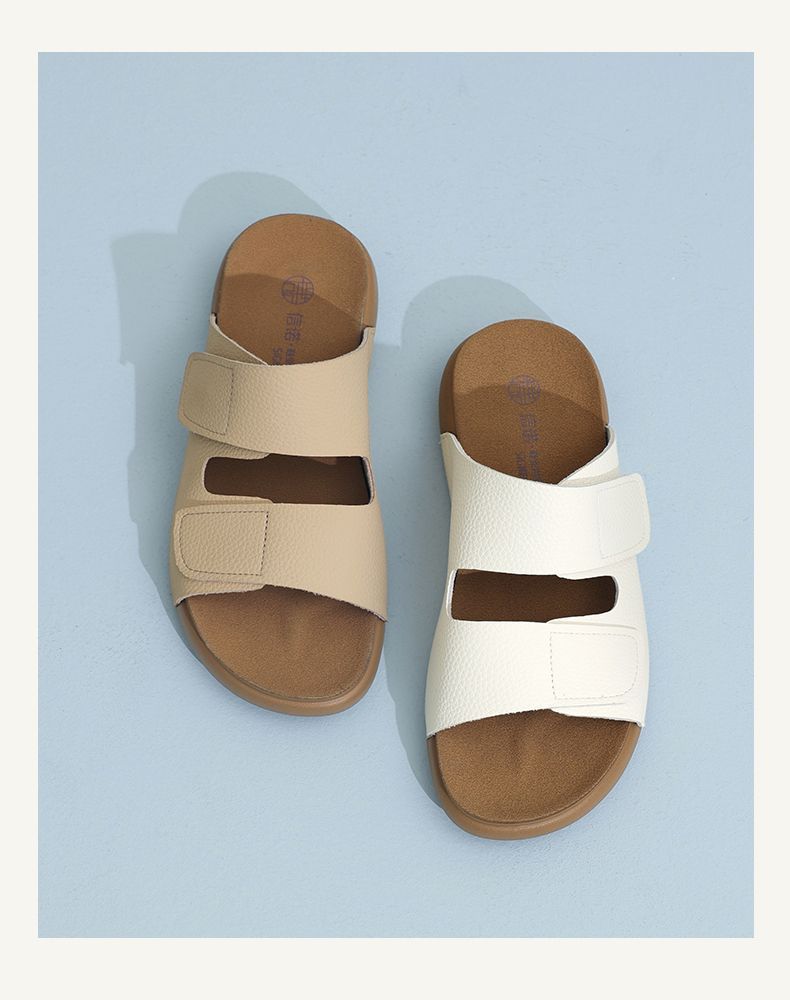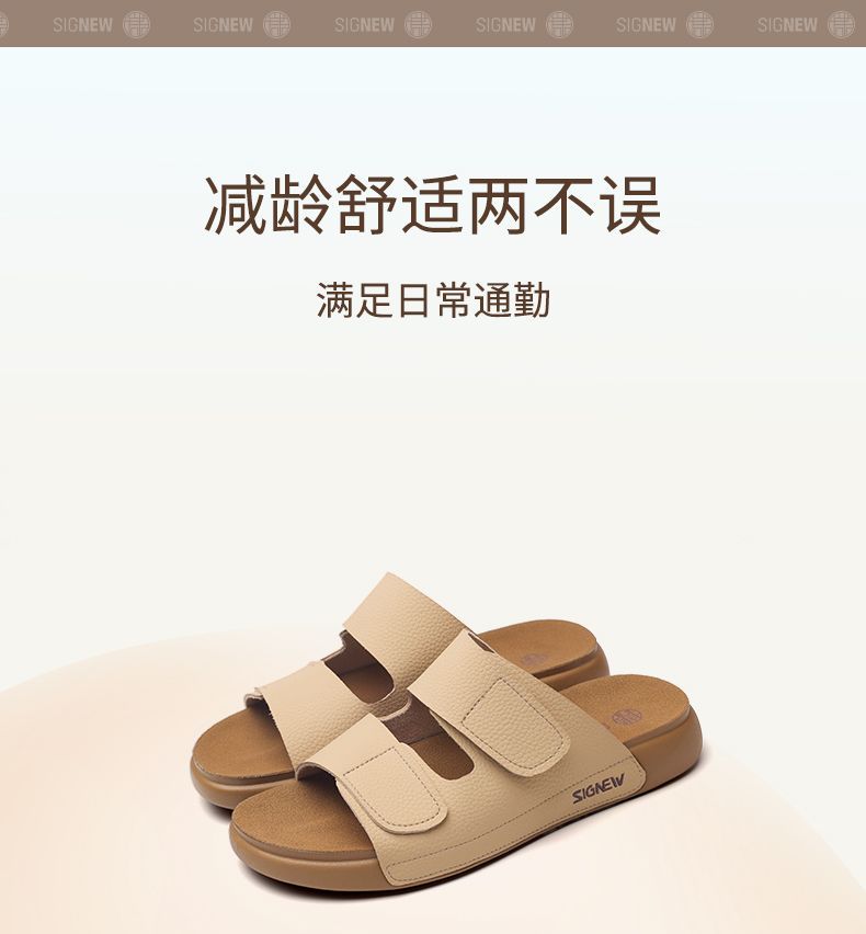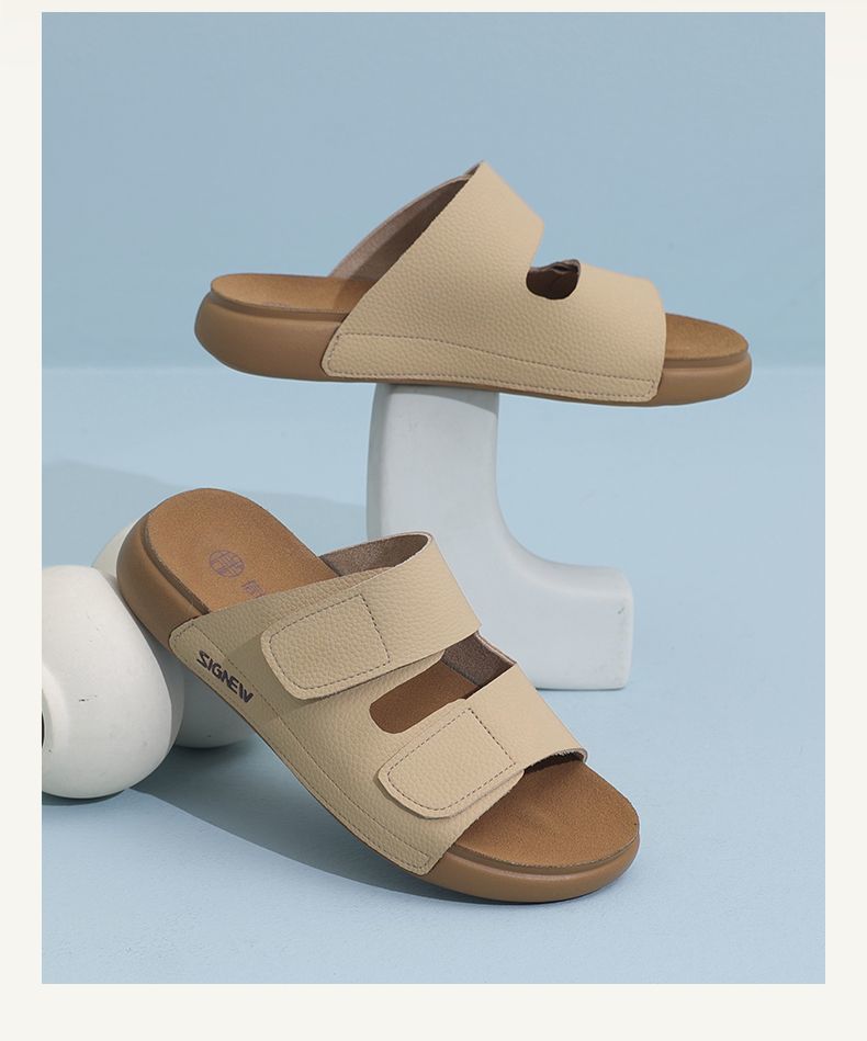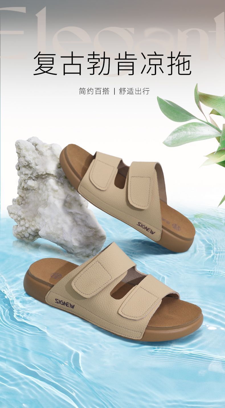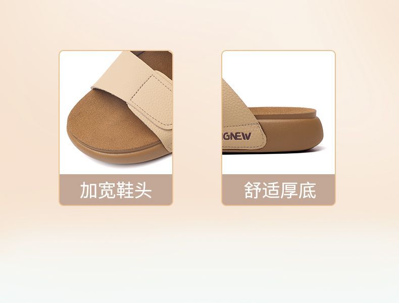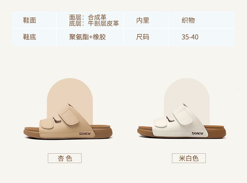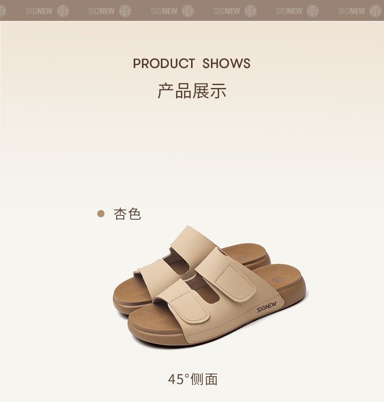 信诺真皮平底勃肯拖鞋女2025夏季新款女鞋半拖凉鞋外穿轻便沙滩鞋5L267-1
