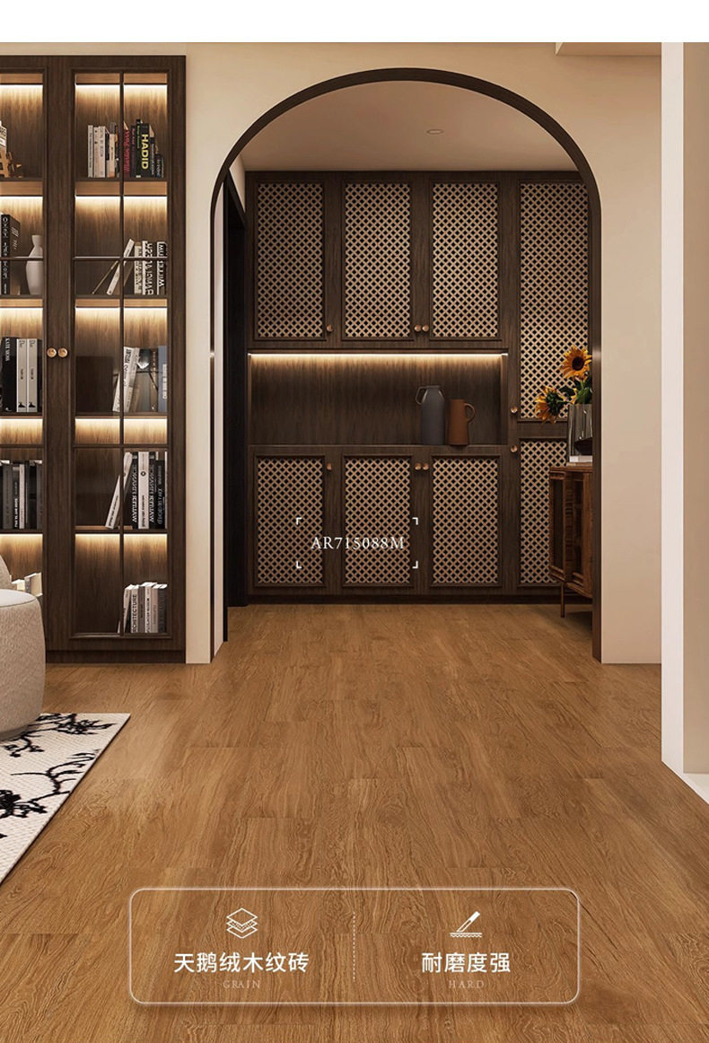 客厅风天鹅绒餐厅原木实木柔光木纹地板砖卧室750x1500mm瓷砖仿 商品图2