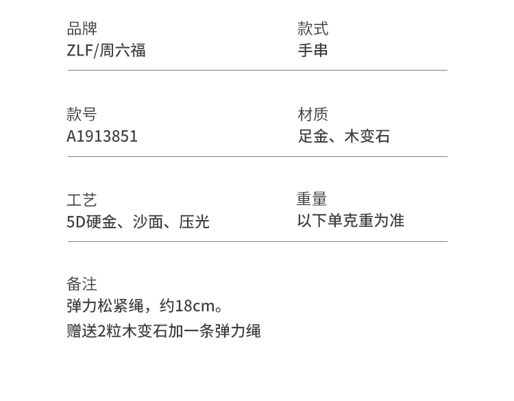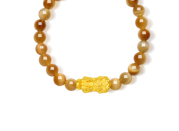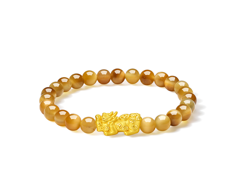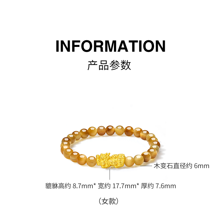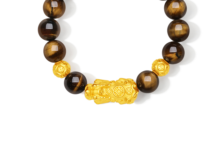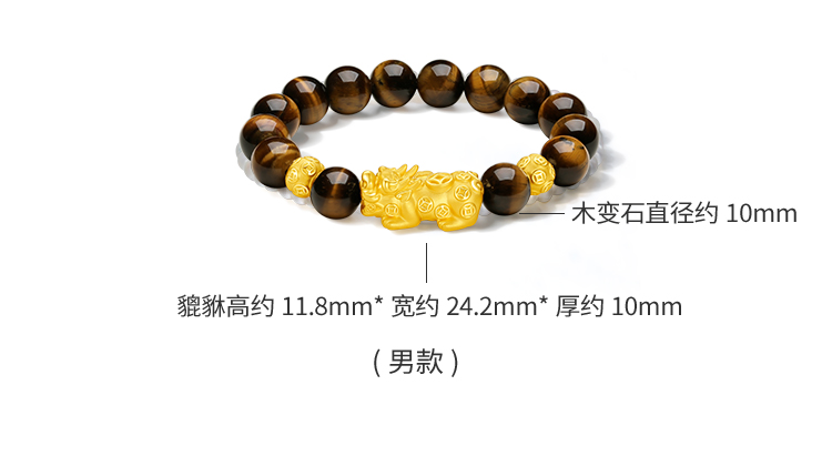 周六福黄金手串5d硬金定价虎眼石貔貅足金送老婆礼物情侣送礼官方