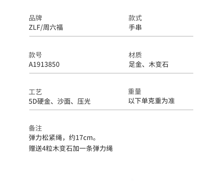 周六福珠宝黄金手链男女诸事圆满3D硬金情侣手绳足金圆环手饰