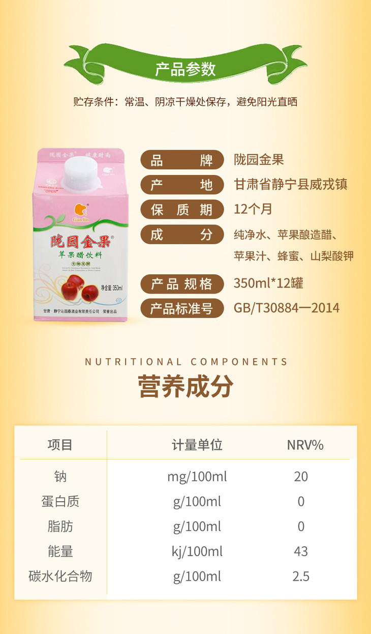 静宁县苹果醋 常温储存 冷藏更佳