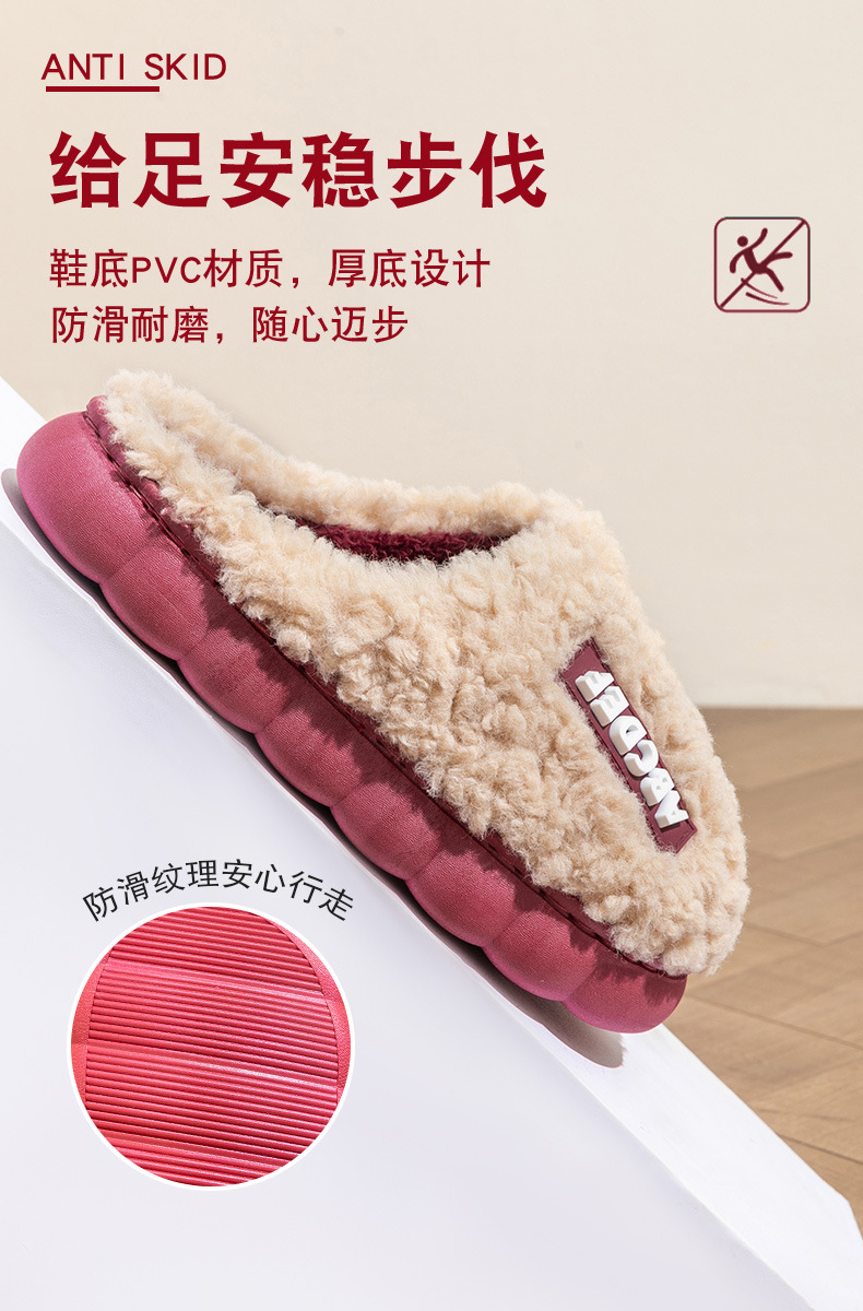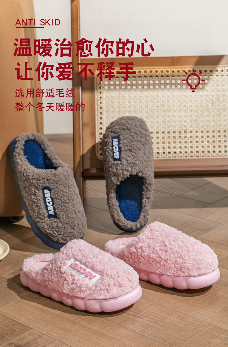 「五款配色!厚底毛绒款」新款字母情侣棉拖鞋 女冬季家居室内防滑月子鞋保暖厚底毛绒棉拖男