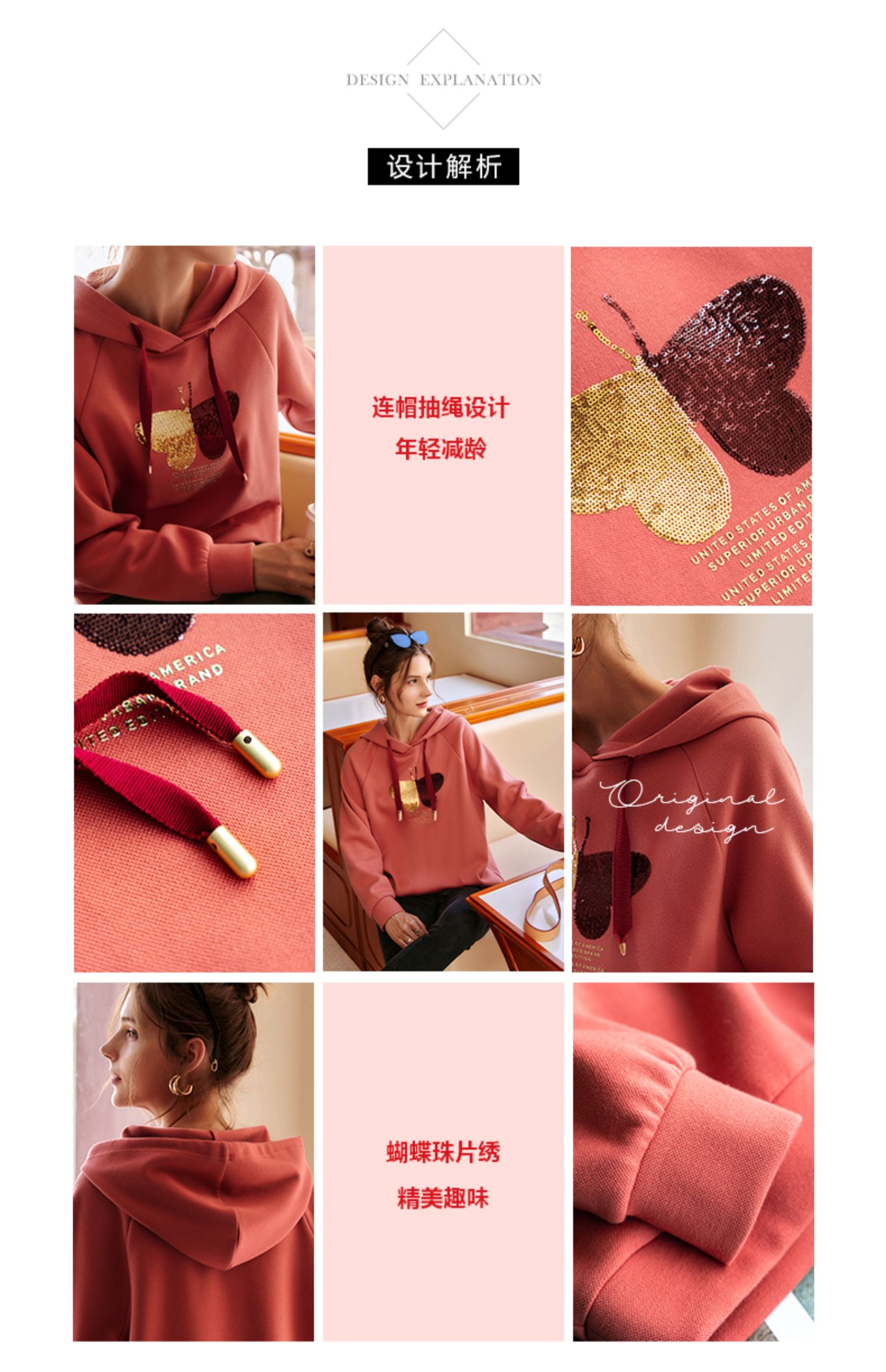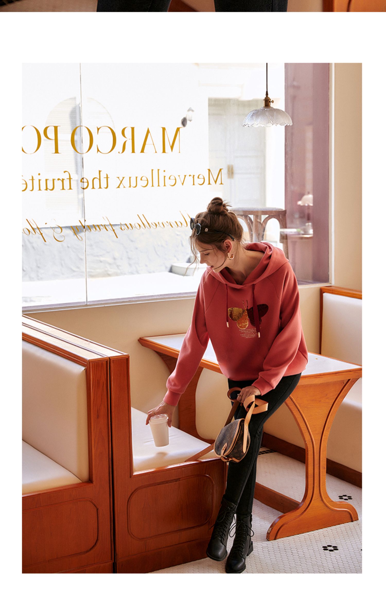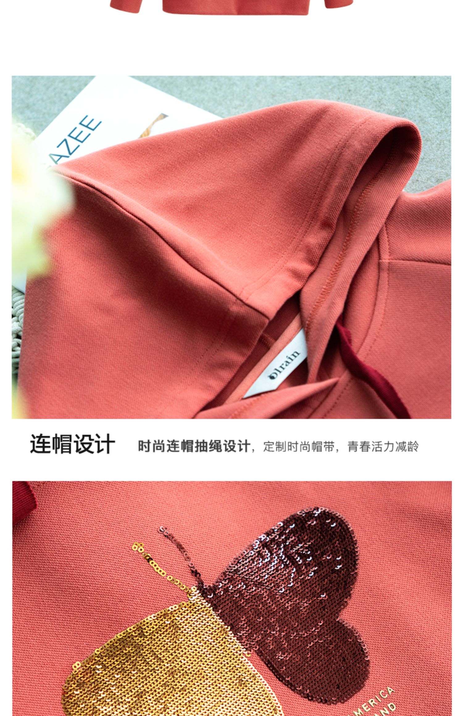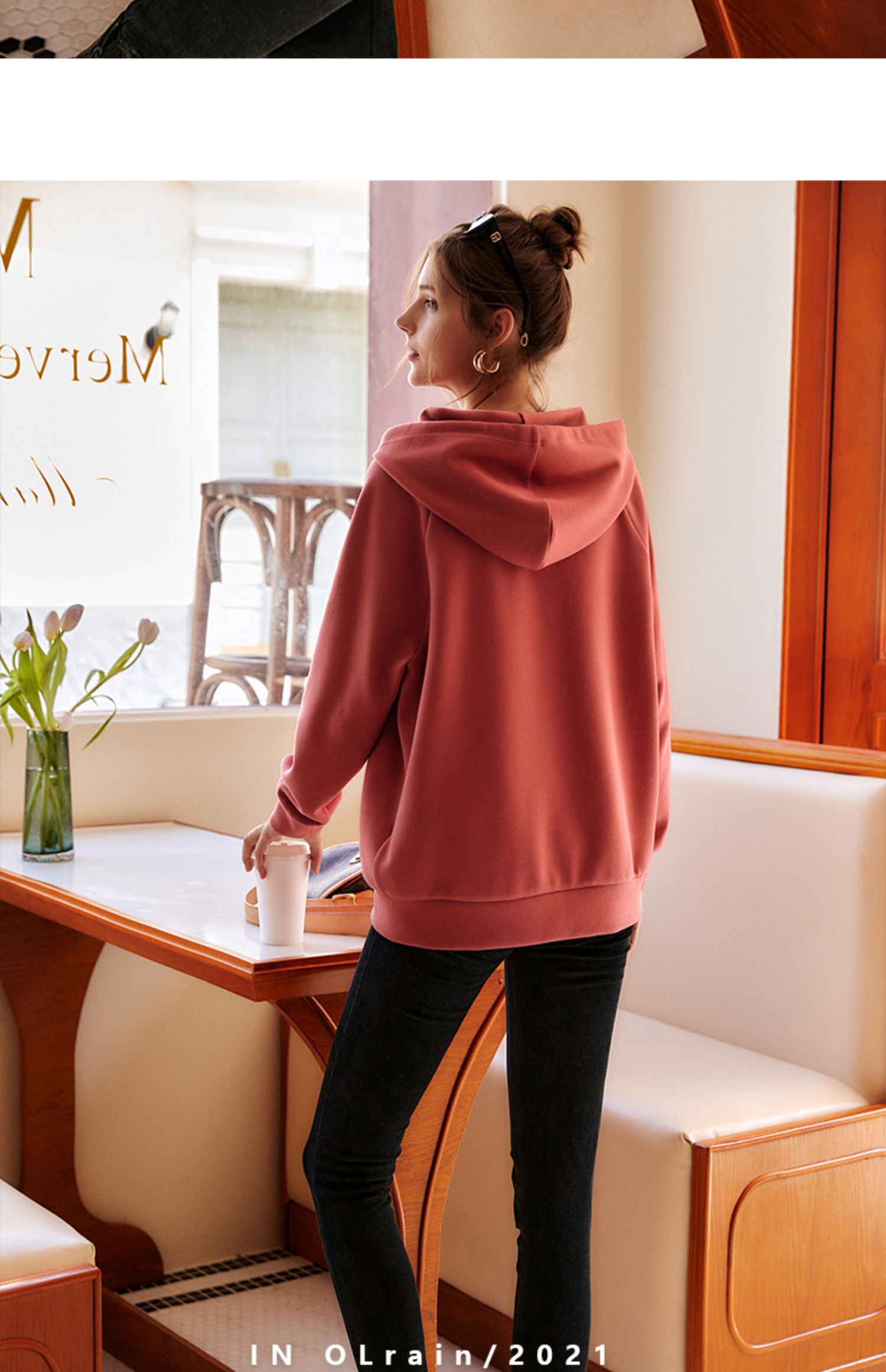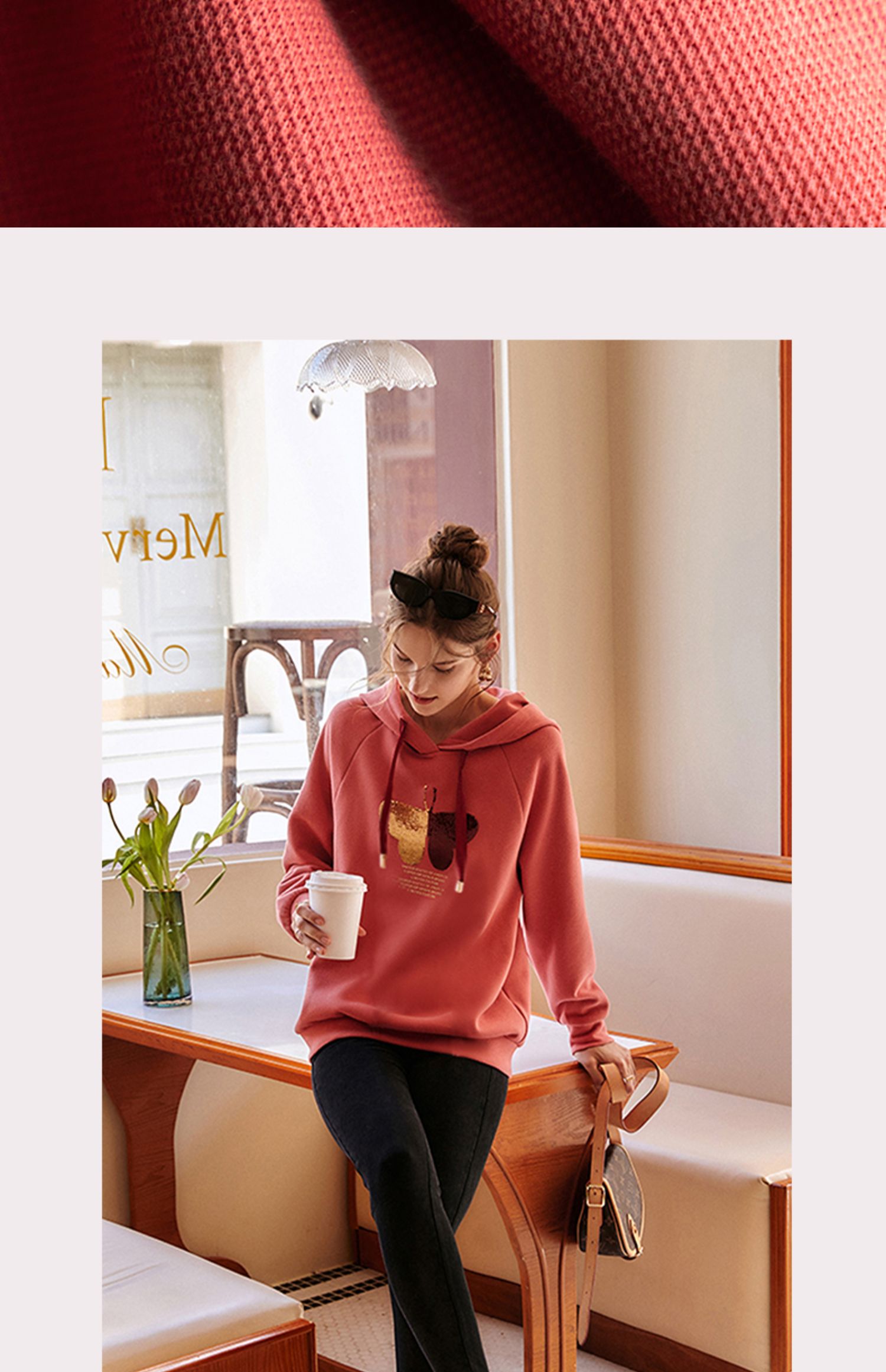 欧芮儿法式连帽卫衣女2024秋季新款宽松休闲设计感潮ins红色上衣
