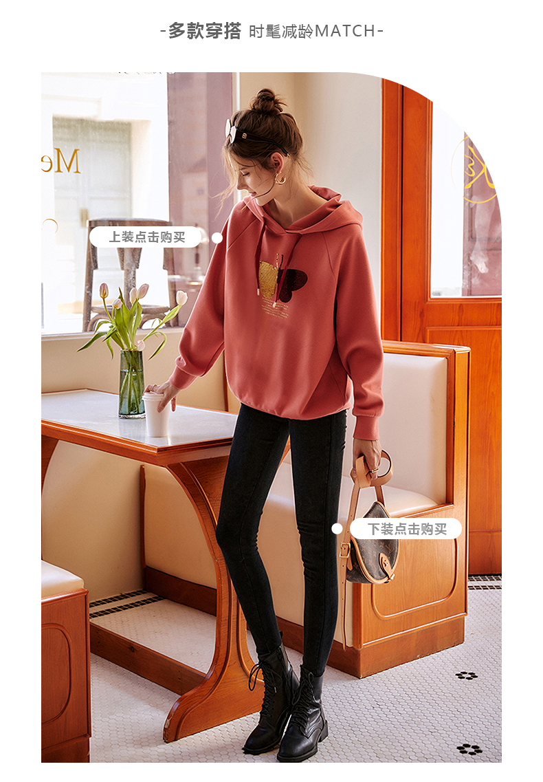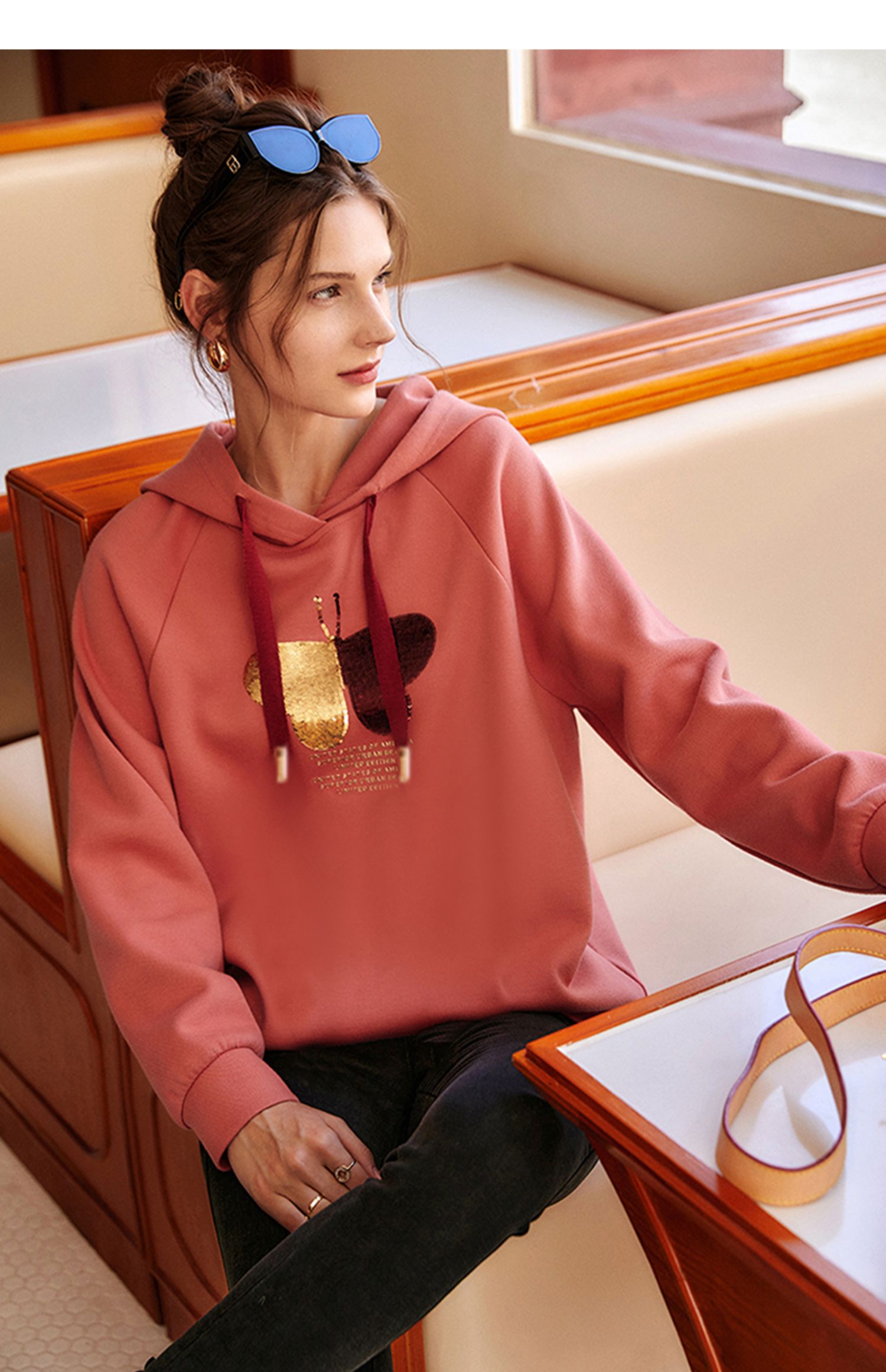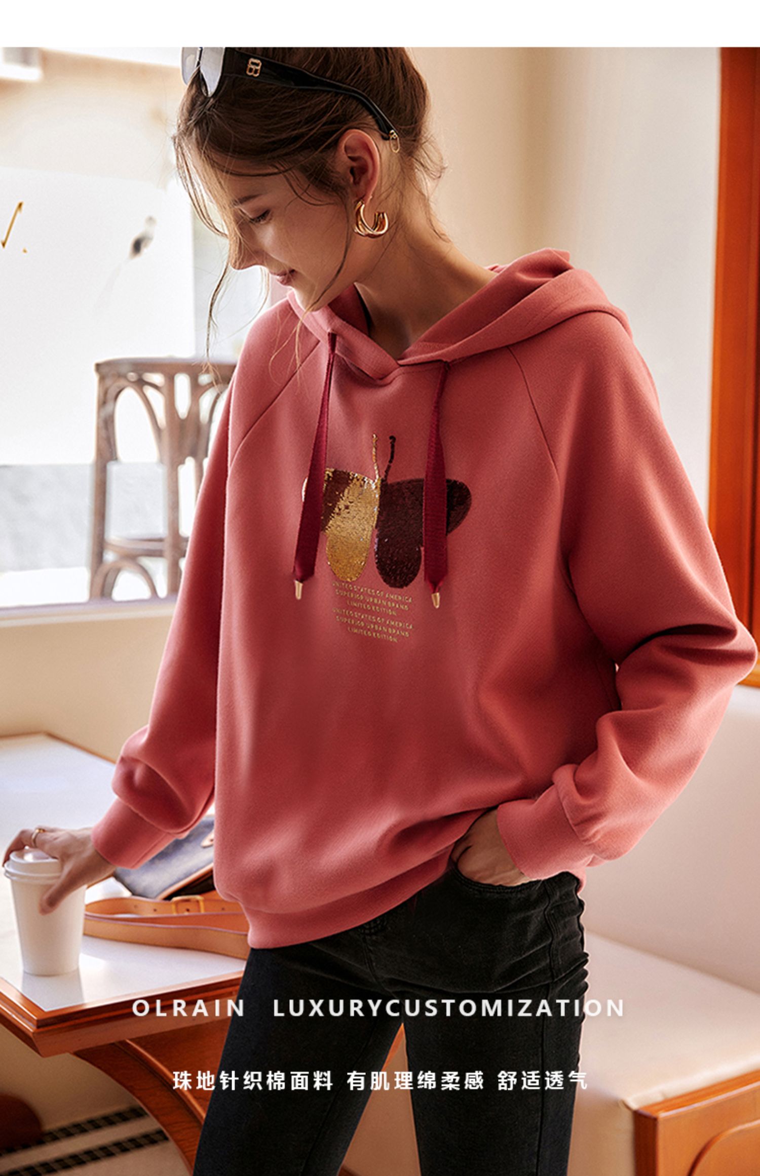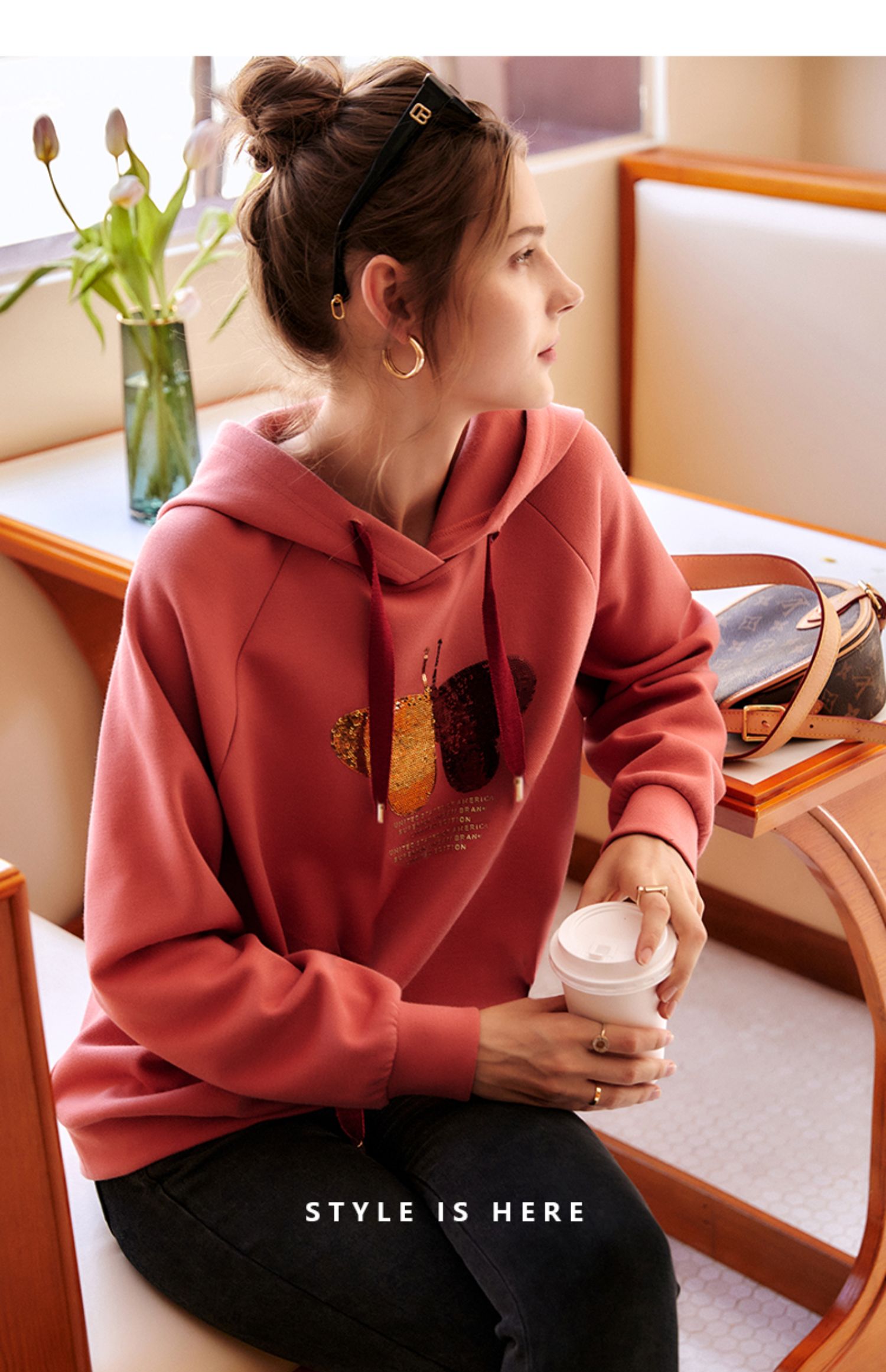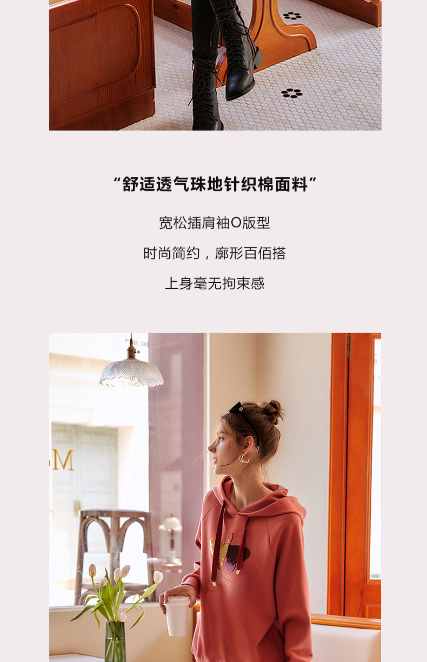 欧芮儿法式连帽卫衣女2024秋季新款宽松休闲设计感潮ins红色上衣