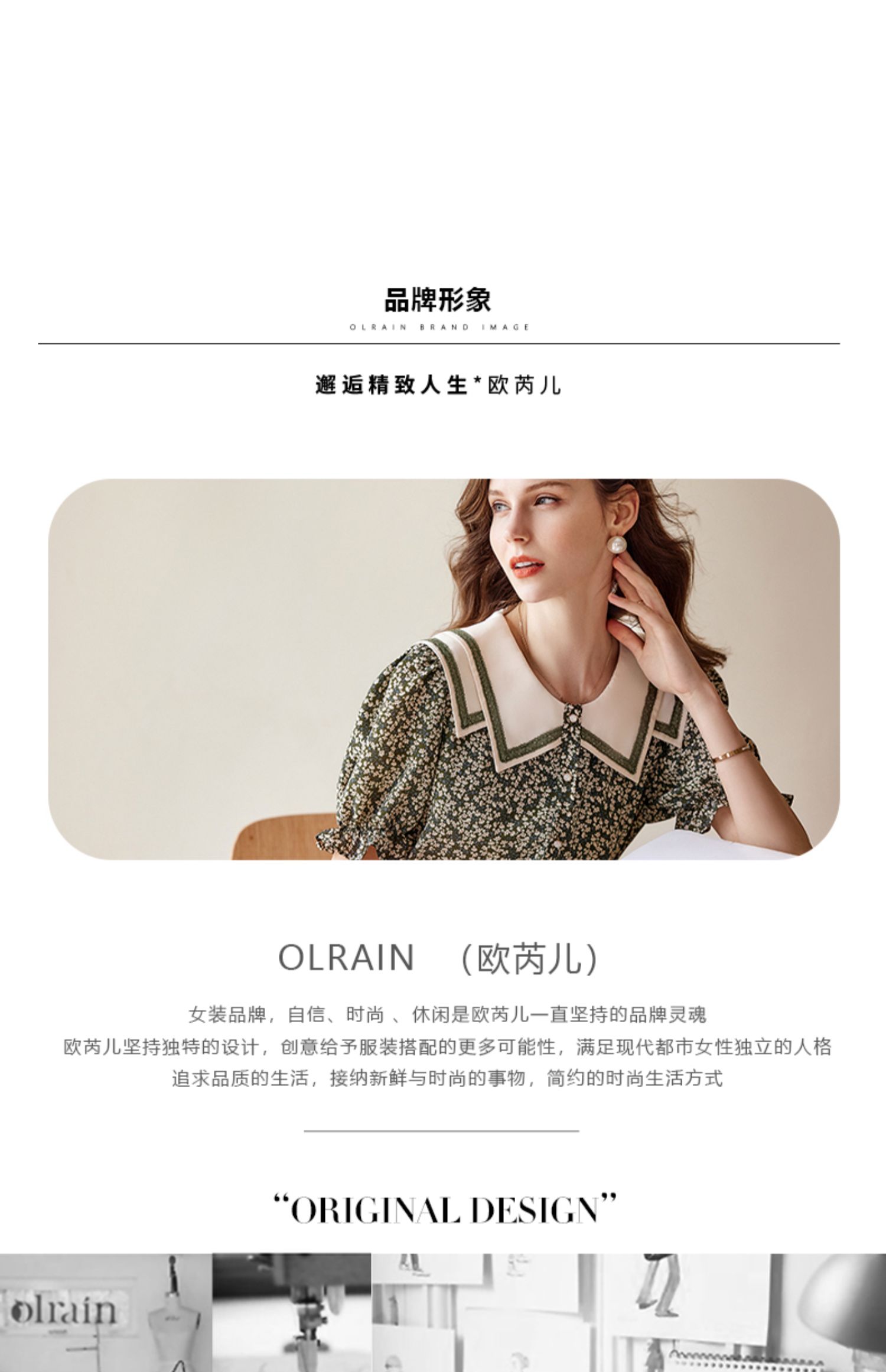 - “精致”是欧芮儿olrain品牌文化的核心,欧芮儿认为,精致的女人,不但要外在动人,更要内在迷人,内外兼修,有魅力、有气质、有内涵,自信而不自傲,优雅而不矫揉,自有万种风情而不轻浮,更不故作矜持。