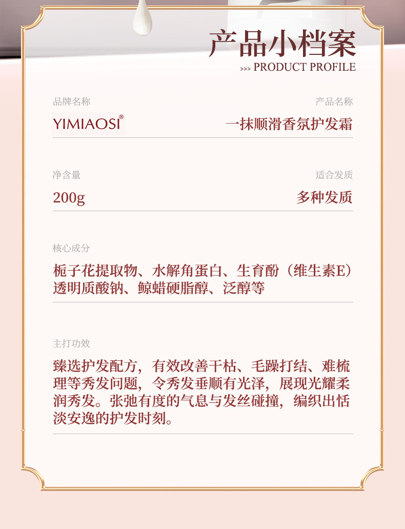 「买1送1!9.9到手2大支」YIMIAOSI一抹顺滑香氛护发霜200g护发素改善干枯毛躁发膜倒膜洗发