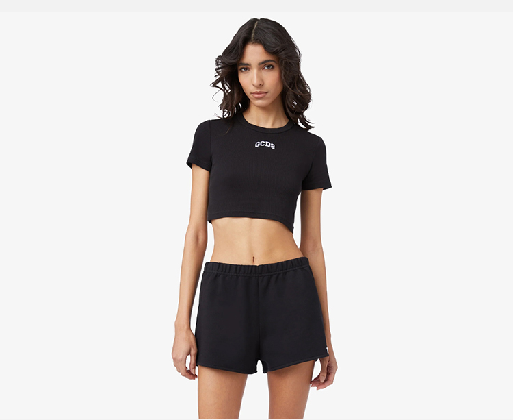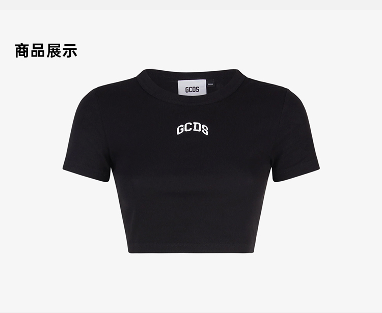 GCDS 女士字母徽标刺绣棉质短款圆领短袖T恤 黑色 A1CW2801JA299