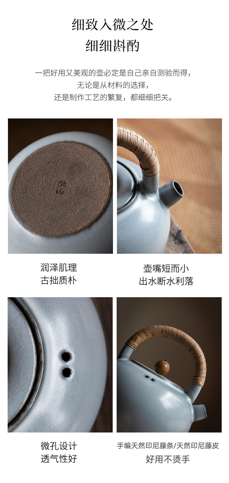 2、细节展示:材质、工艺、做工等;