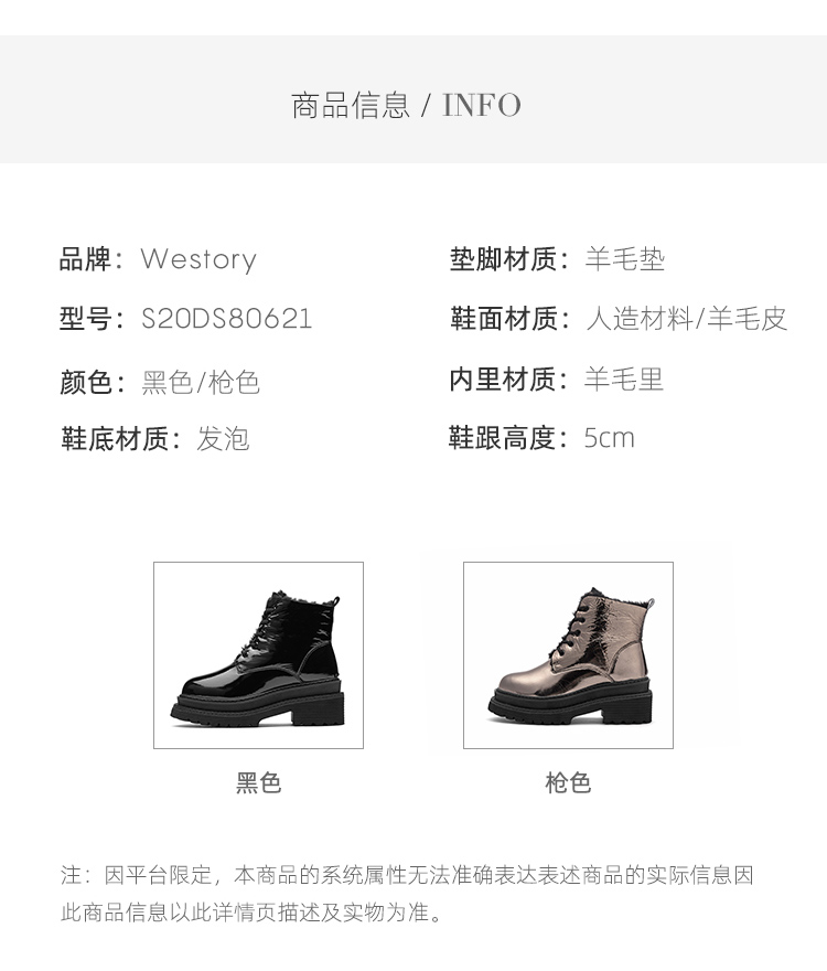 westory马丁靴女2021年春新款加绒短靴英伦风瘦瘦靴潮S20DS80621