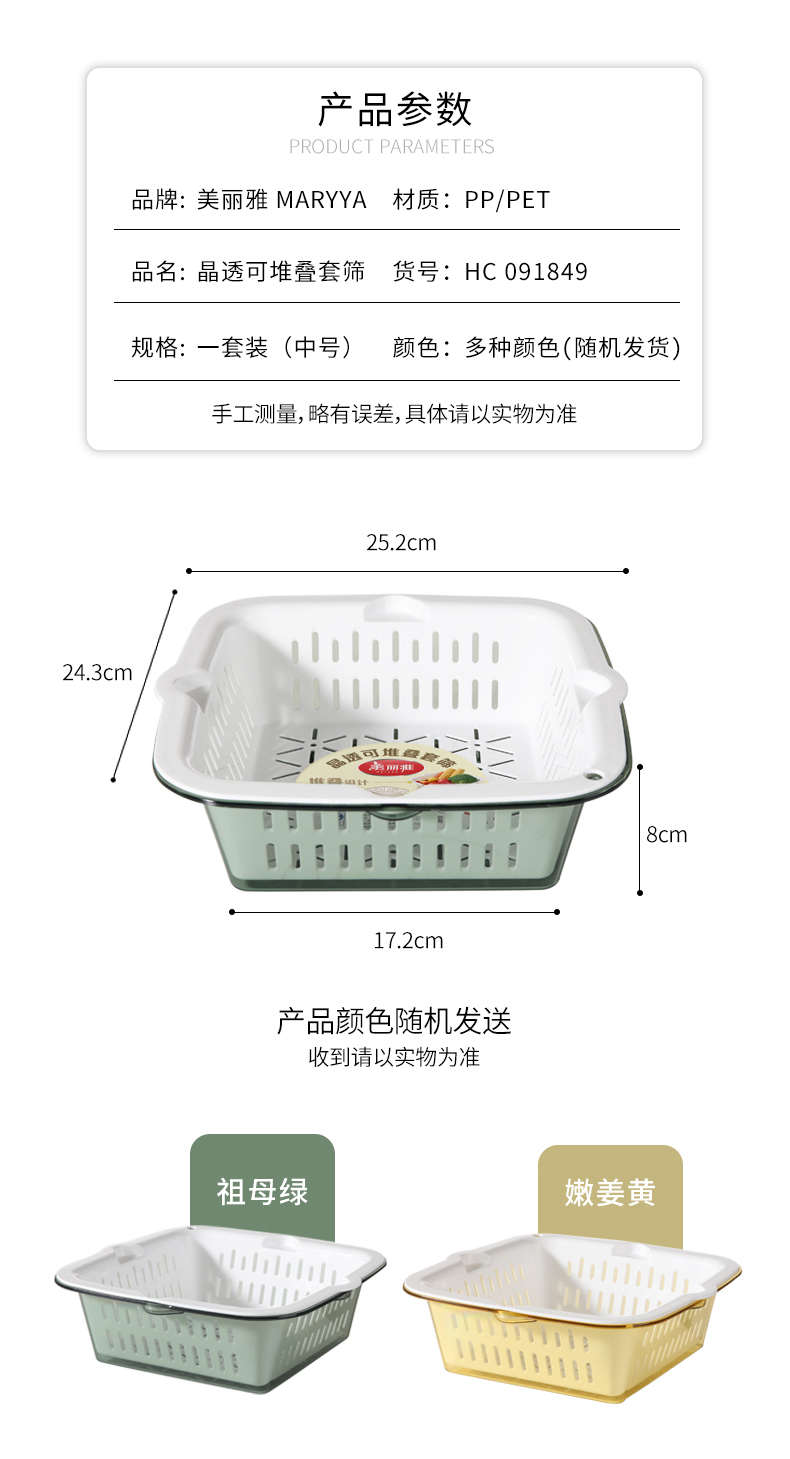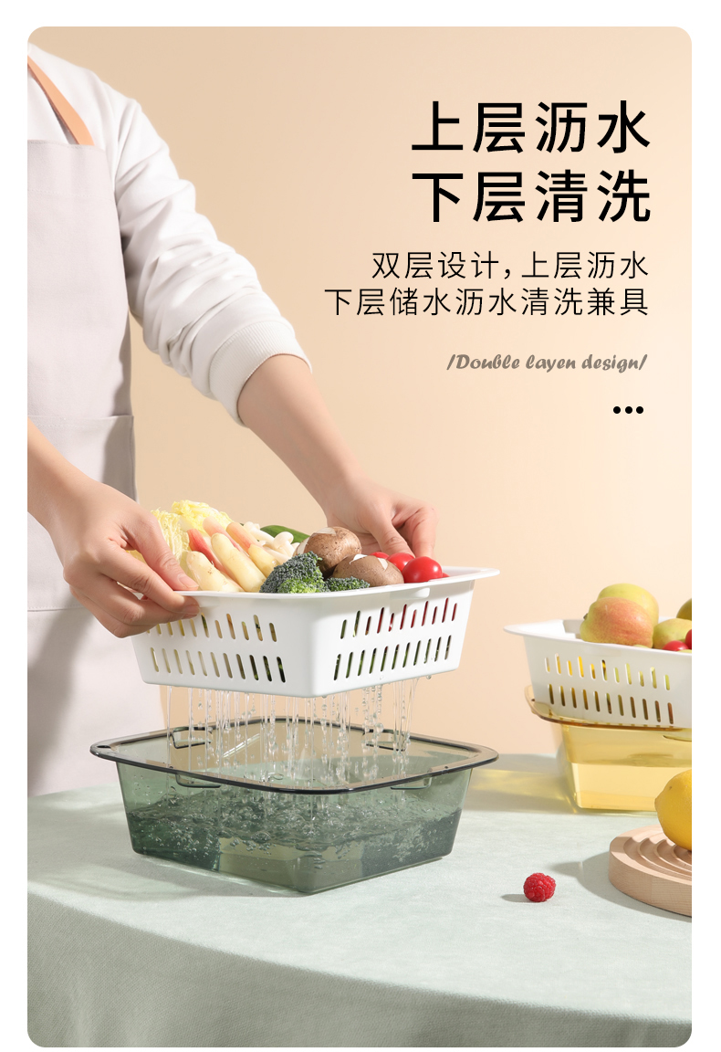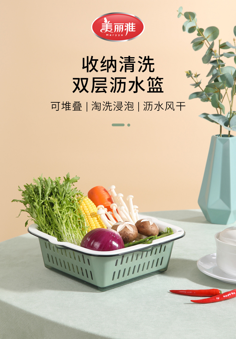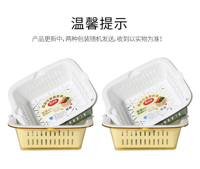 【批发】美丽雅厨房双层晶透洗水果篮多用洗菜篮颜色随机 1套