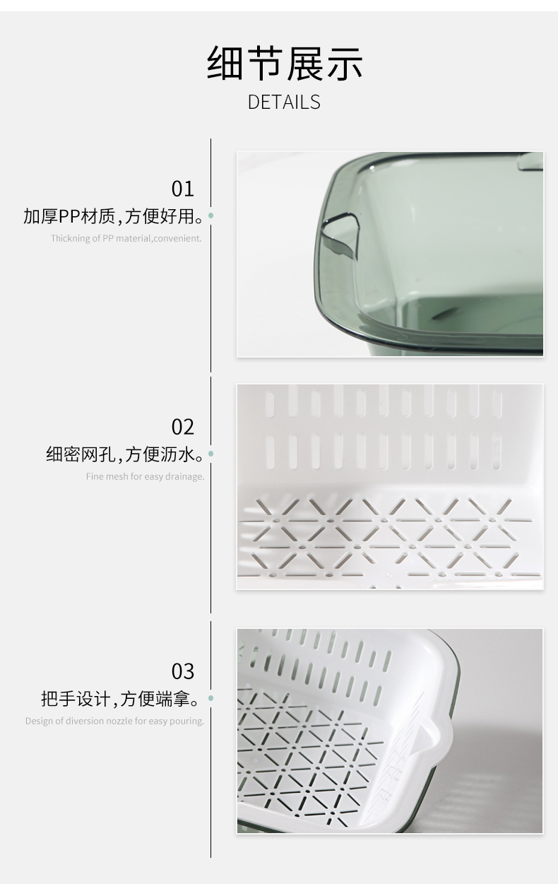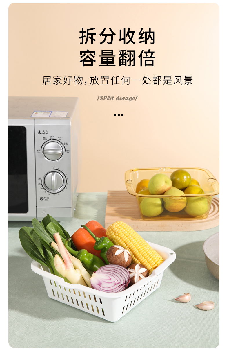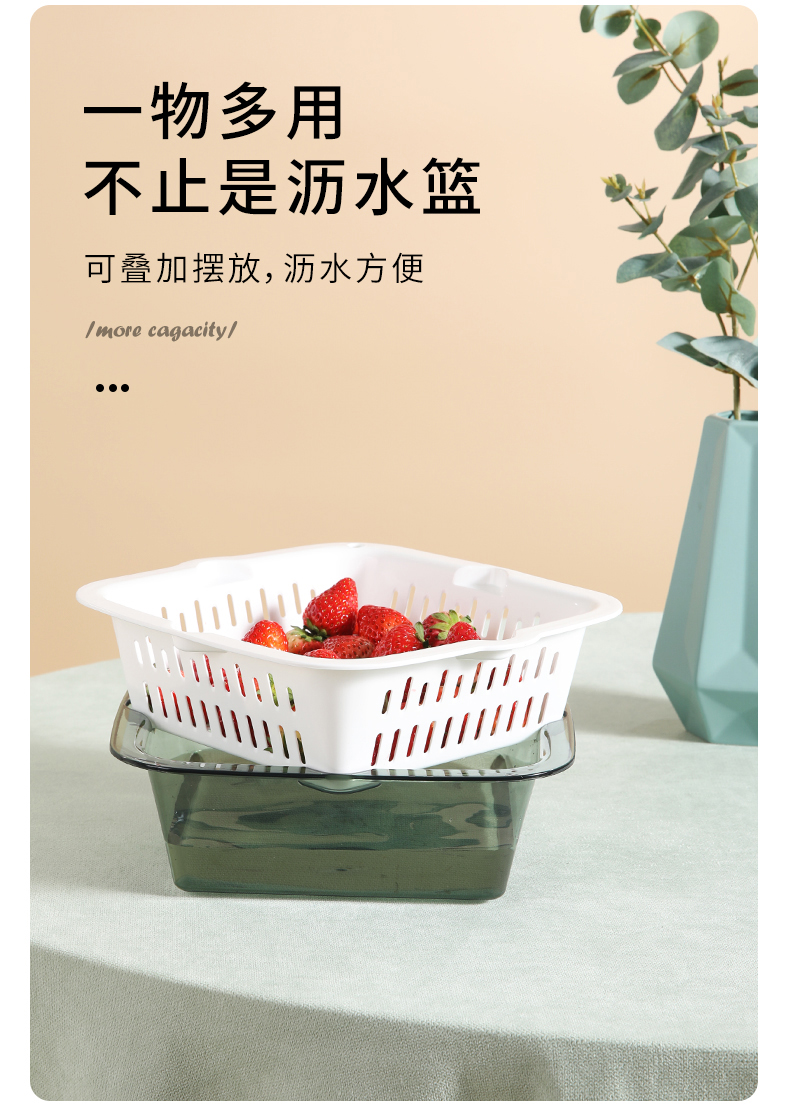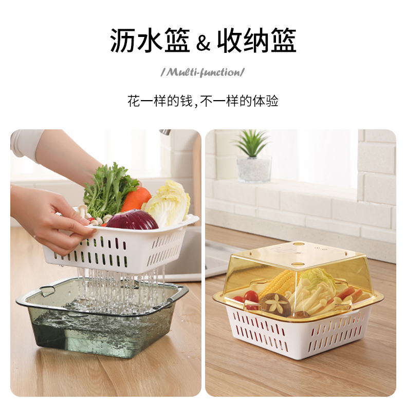 【批发】美丽雅厨房双层晶透洗水果篮多用洗菜篮颜色随机 1套