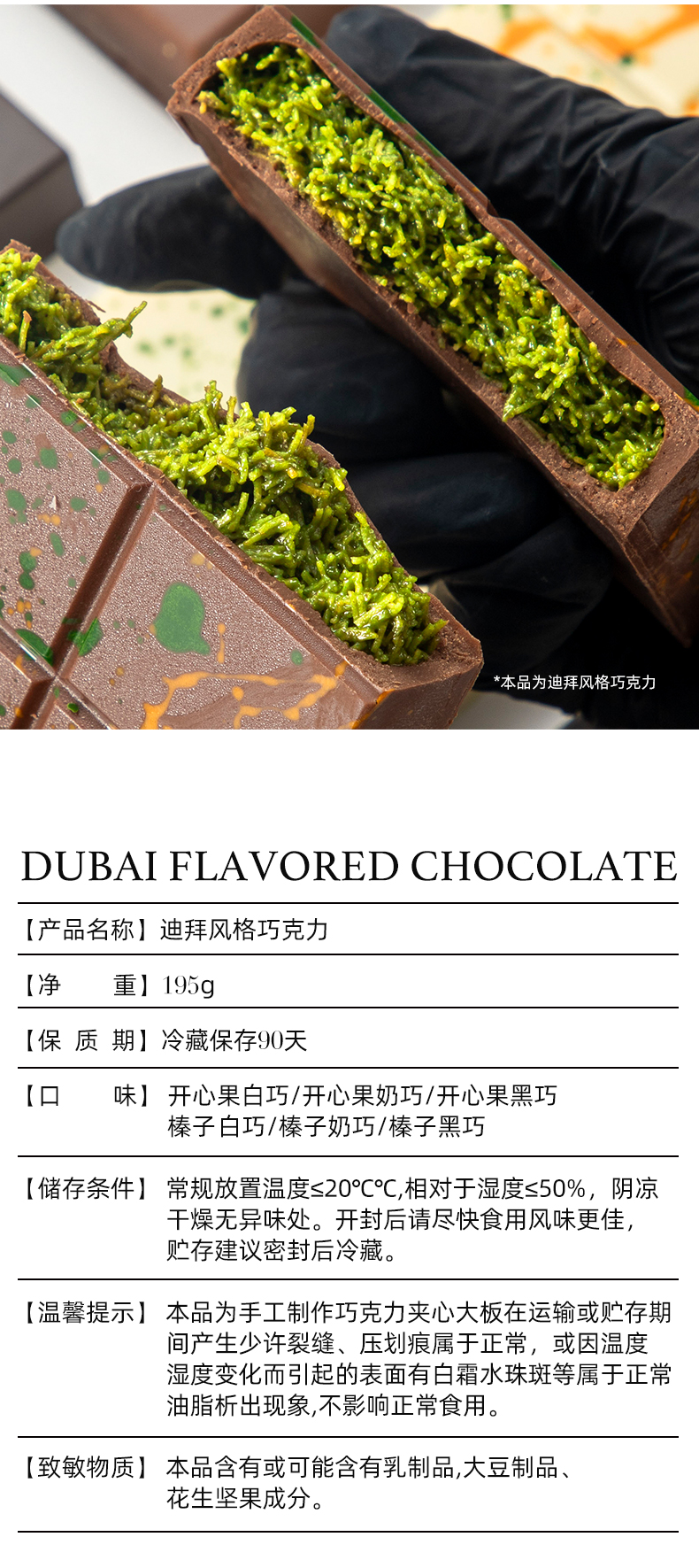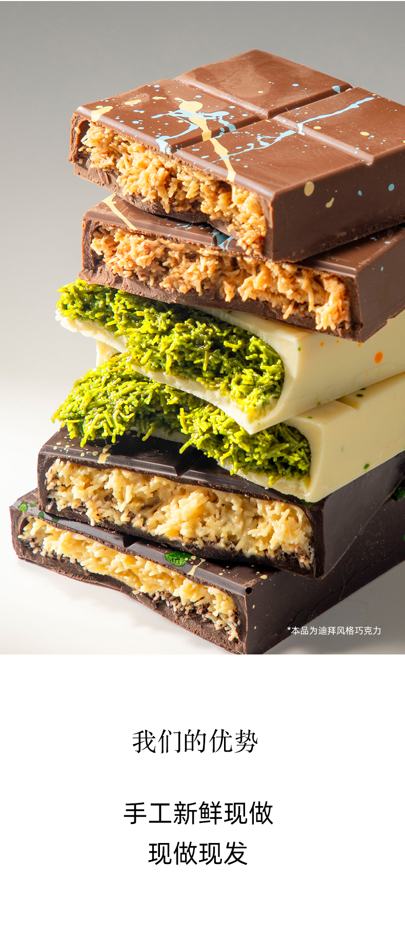【分仓直发包邮】迪拜风格手工巧克力大块200克(奶巧开心果)