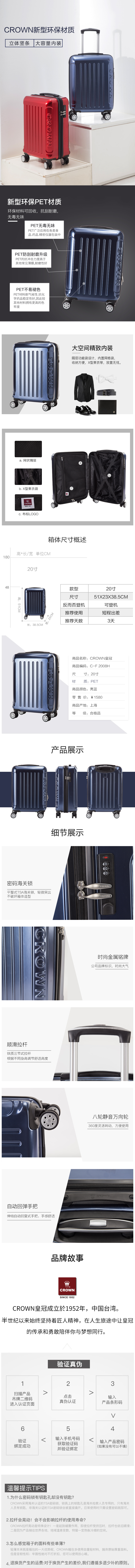 CROWN皇冠拉杆箱CF2008H亮蓝色20寸