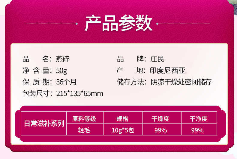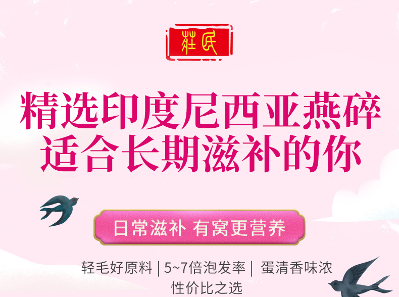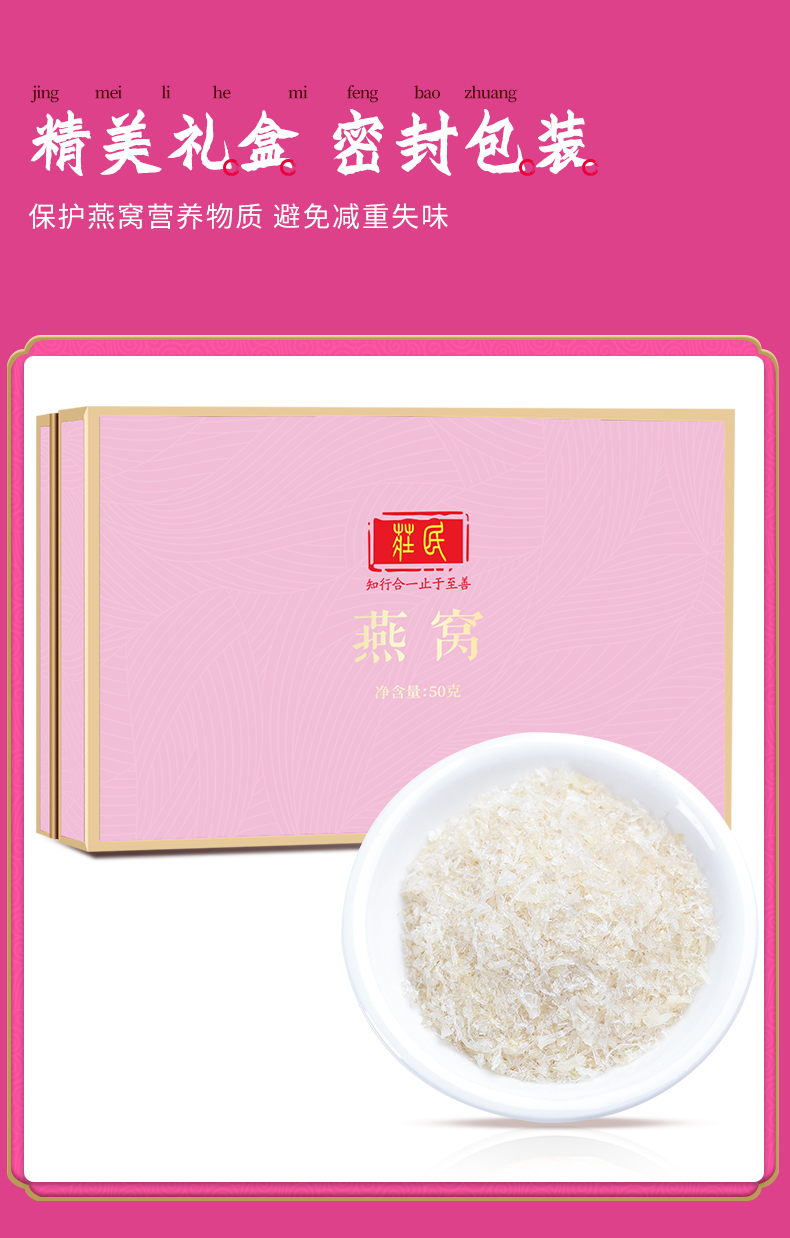 庄民 干燕窝 白燕盏碎50g 粉金版礼盒装 正品老人女人产后燕窝 不刷胶一盏一码 顺丰包邮