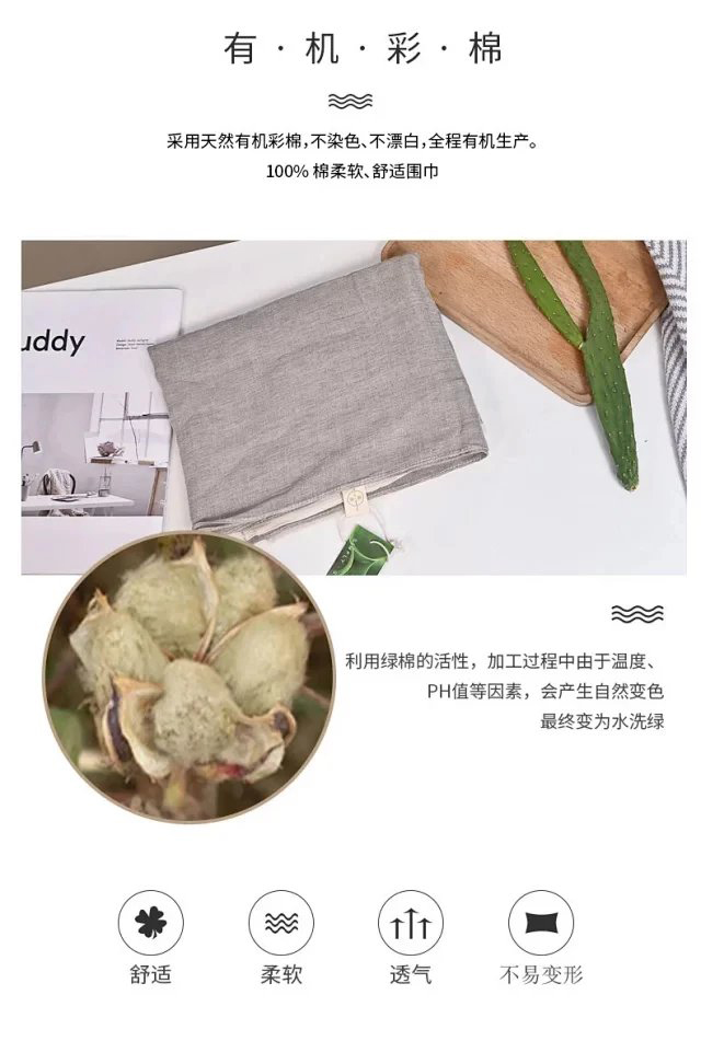 有机彩棉围巾 围脖 薄款四季可披肩 厚款秋冬保暖 柔软亲肤 男女情侣百搭款 素道敦煌天然有机彩棉基地 舒适安全健康