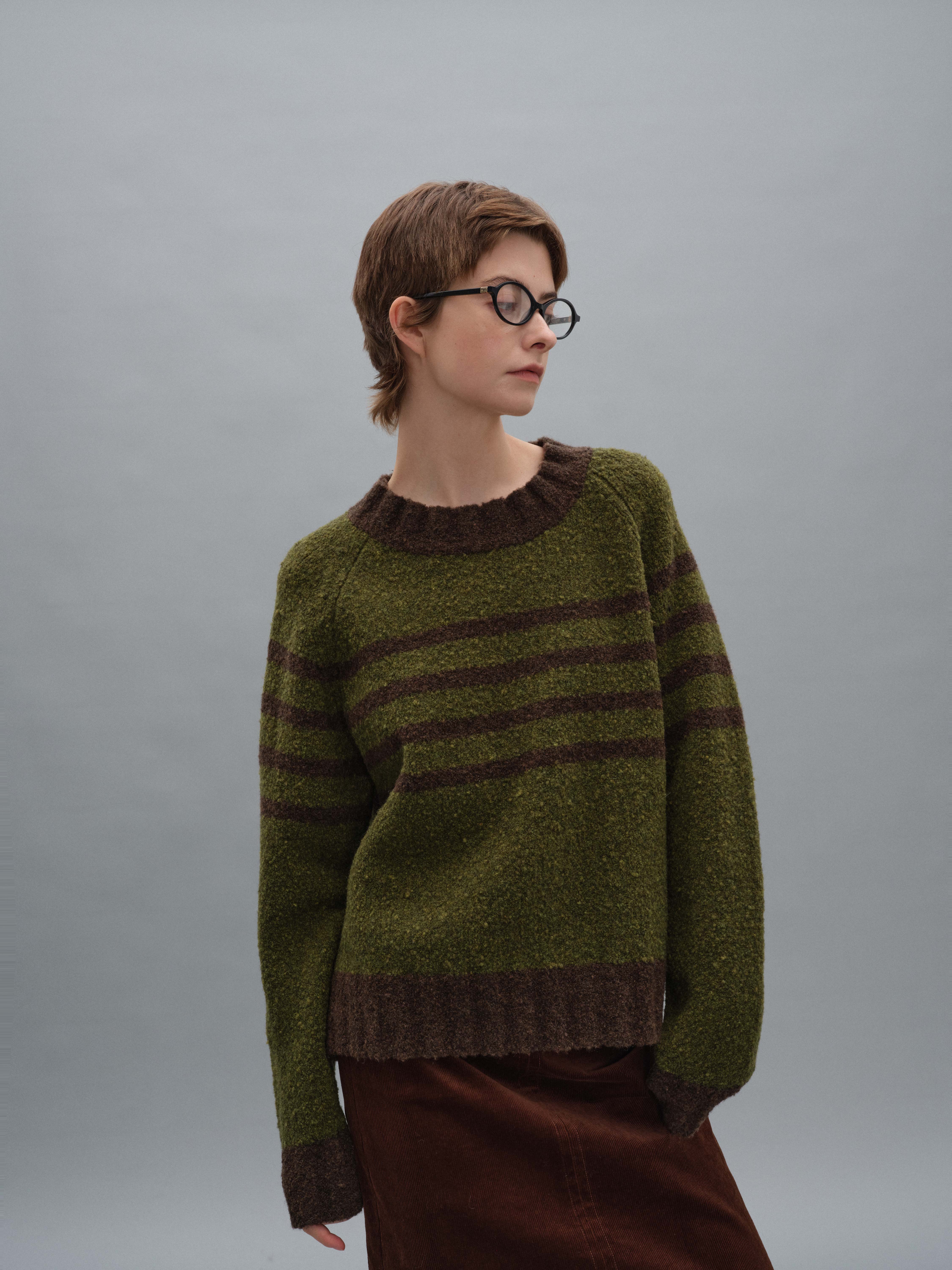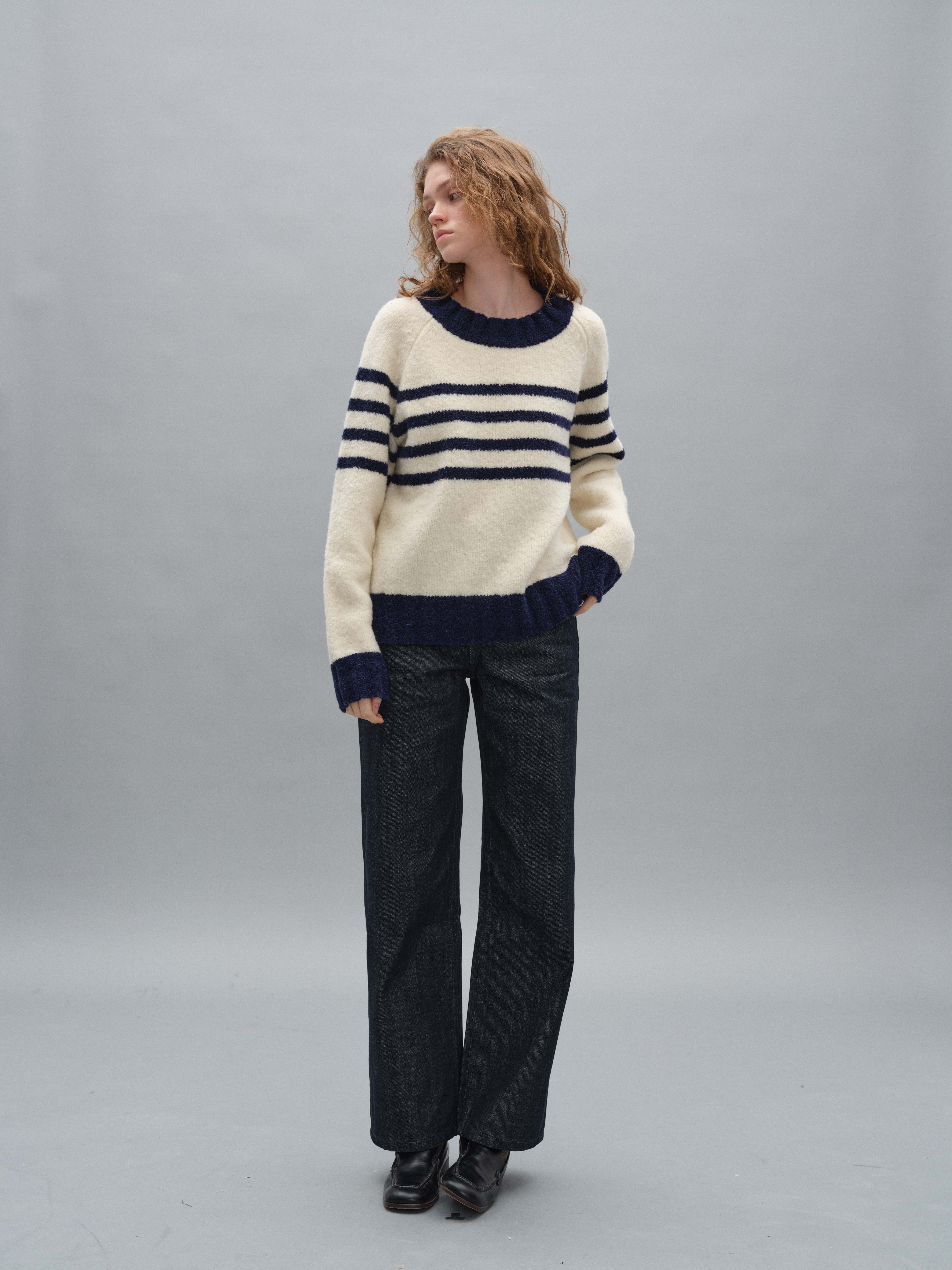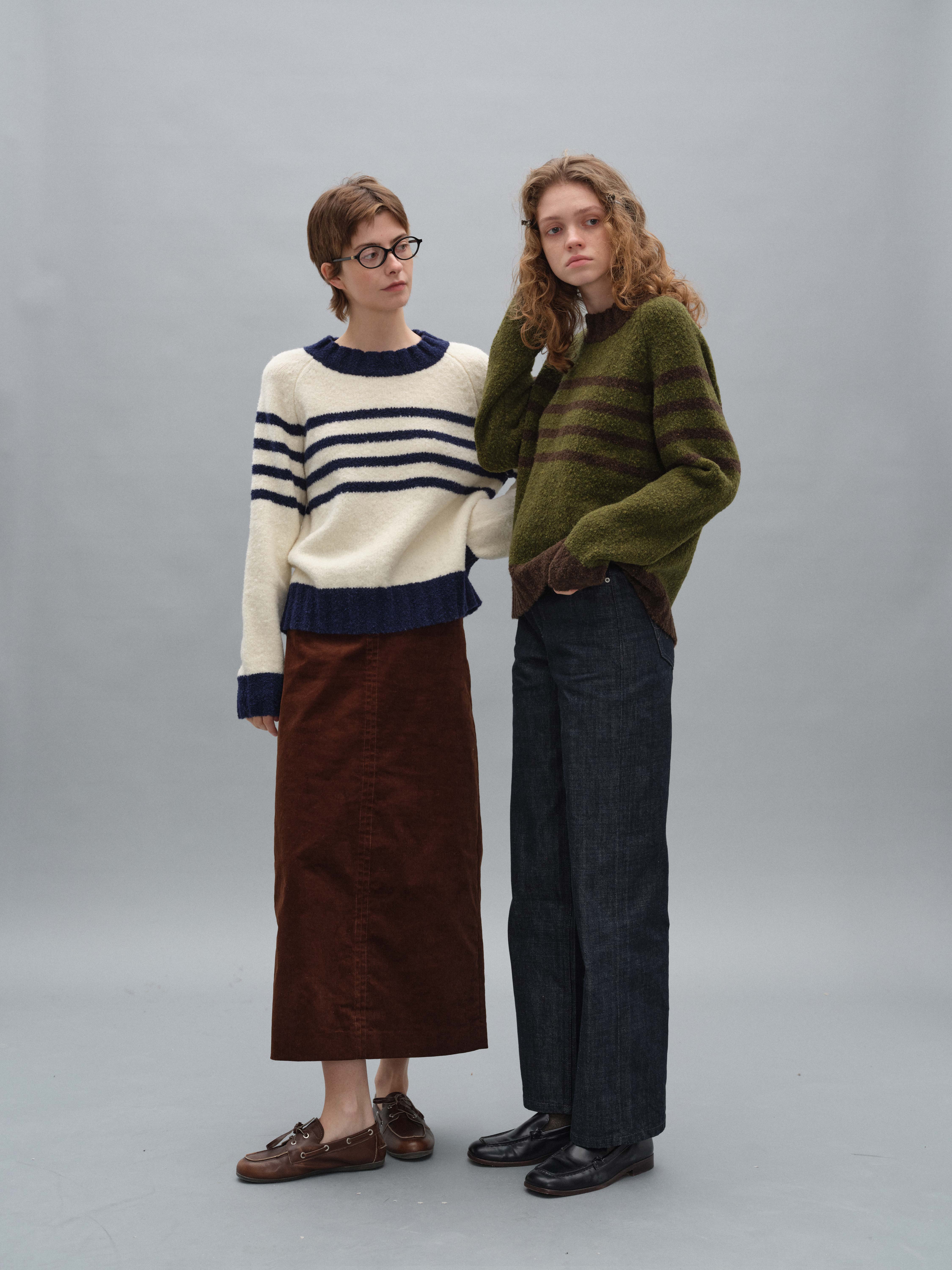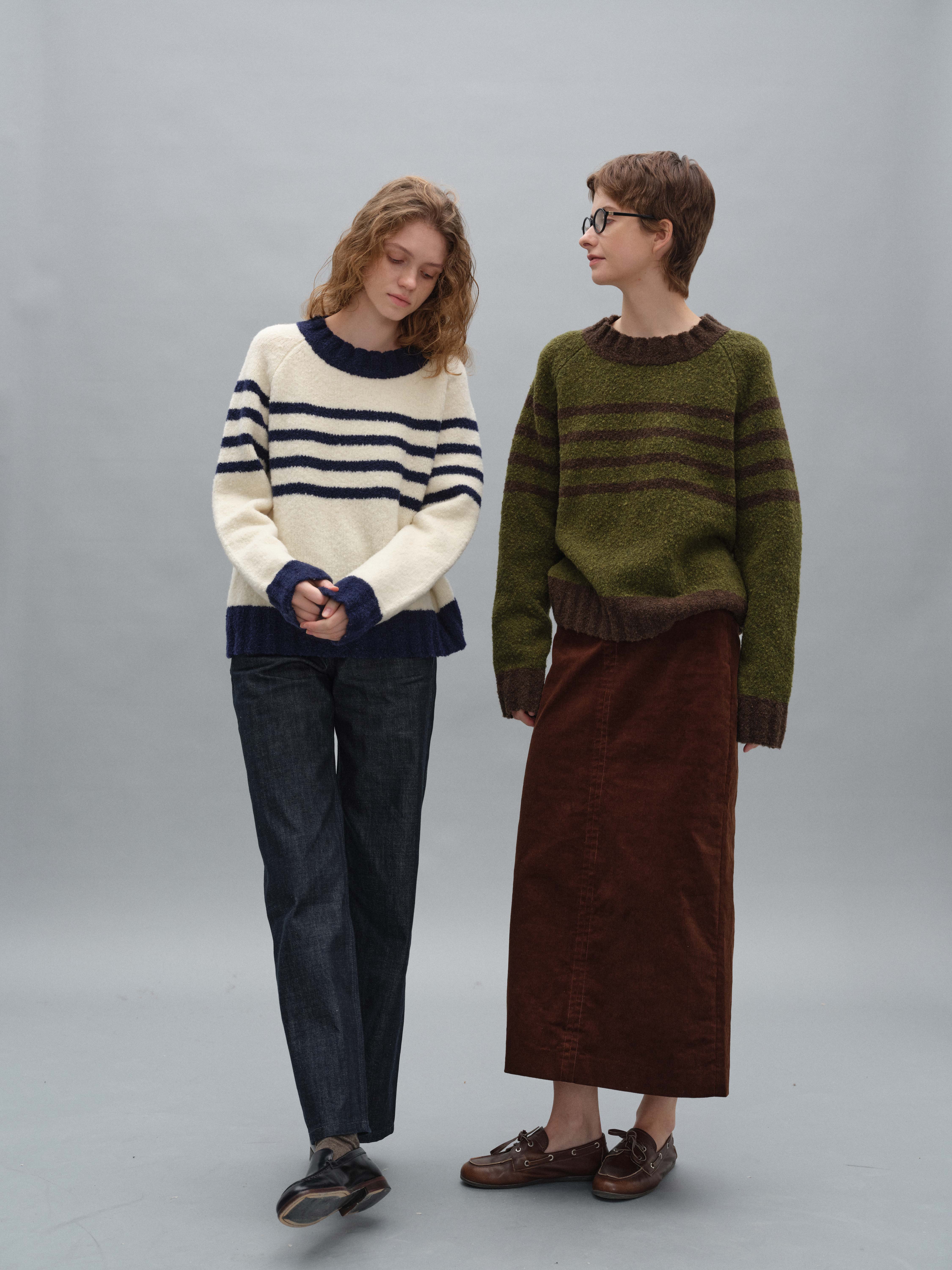 shyshystill/shy202408071/宽边粗条纹撞色宽松圆领套头毛衣