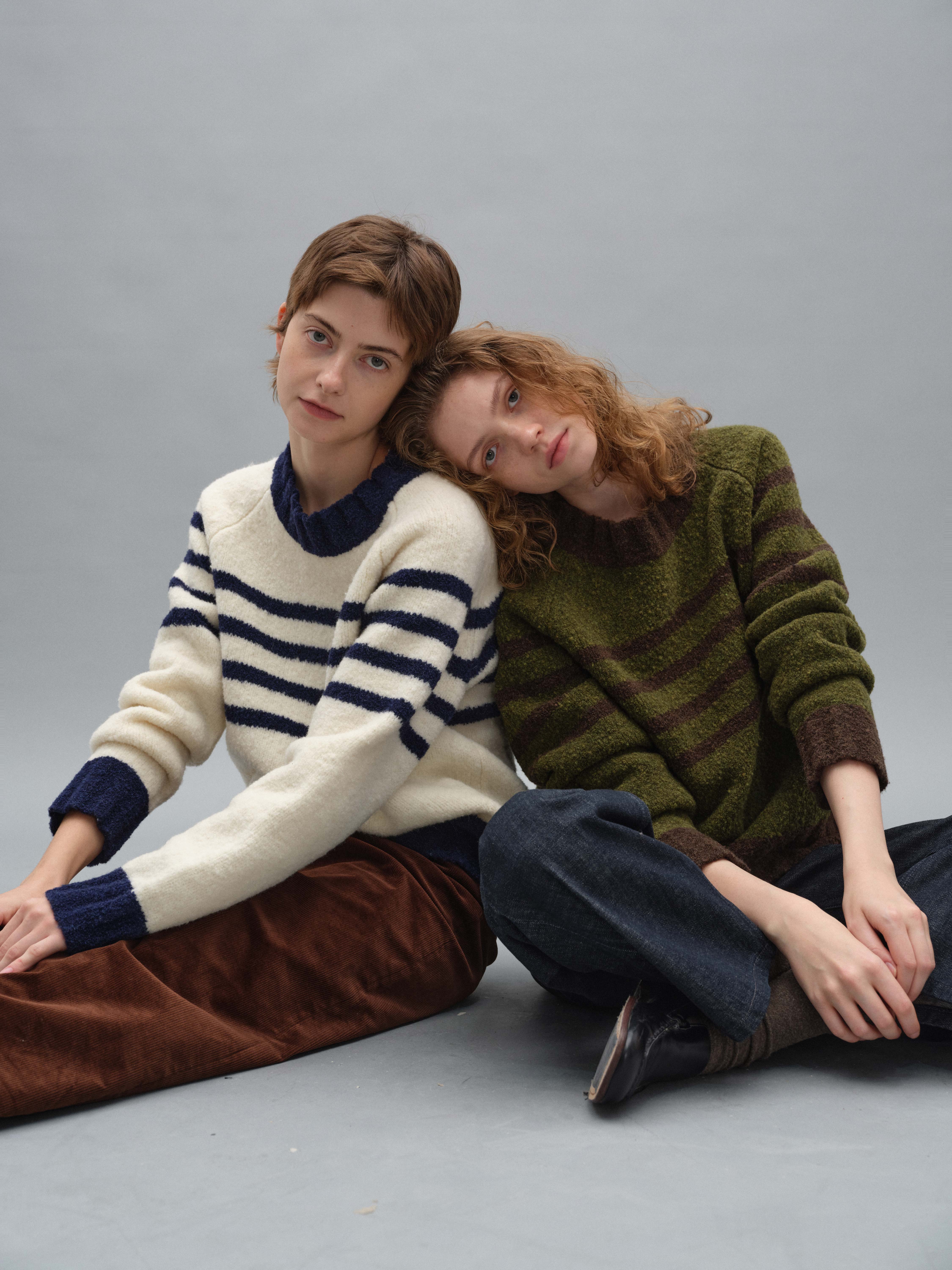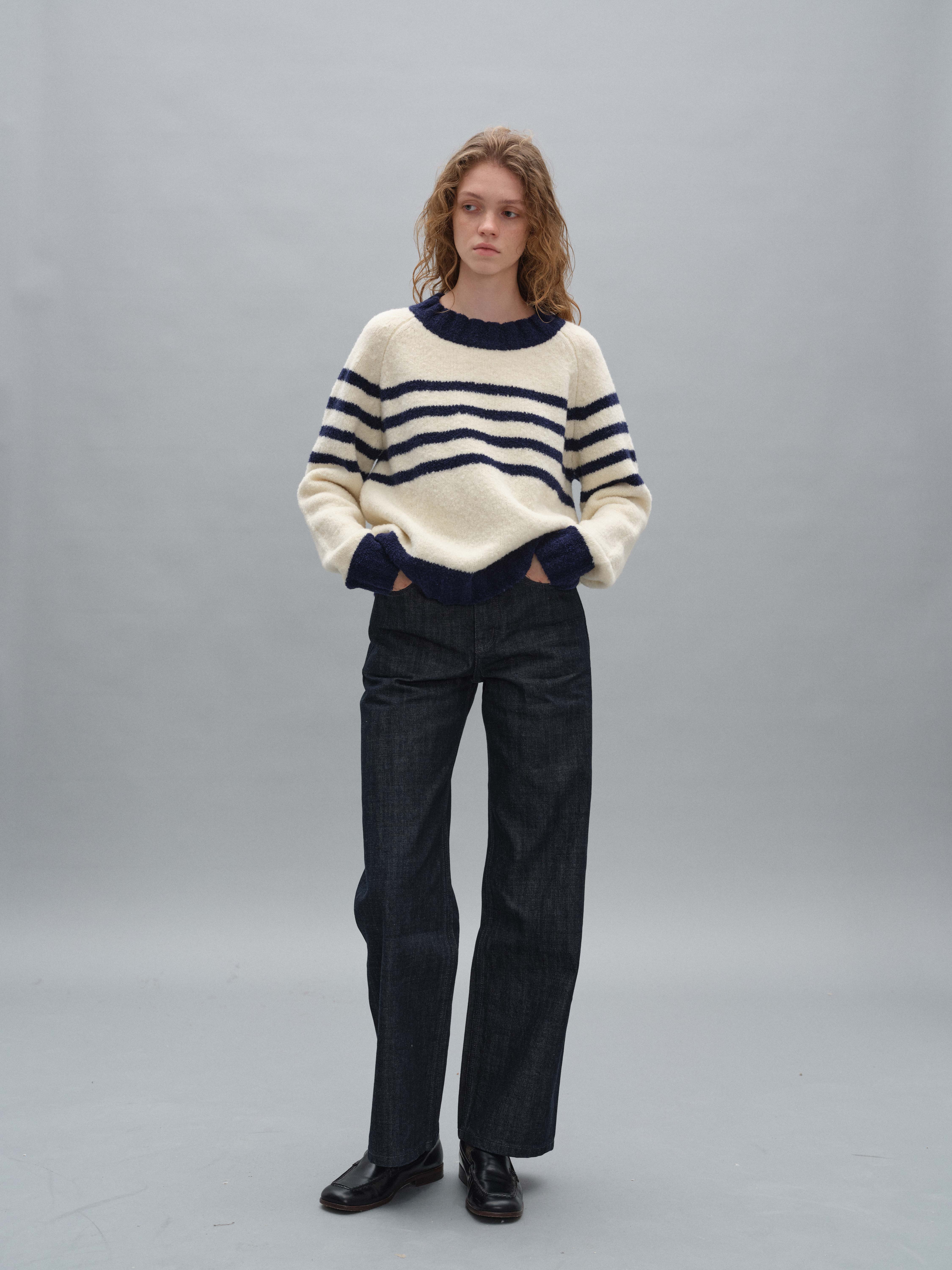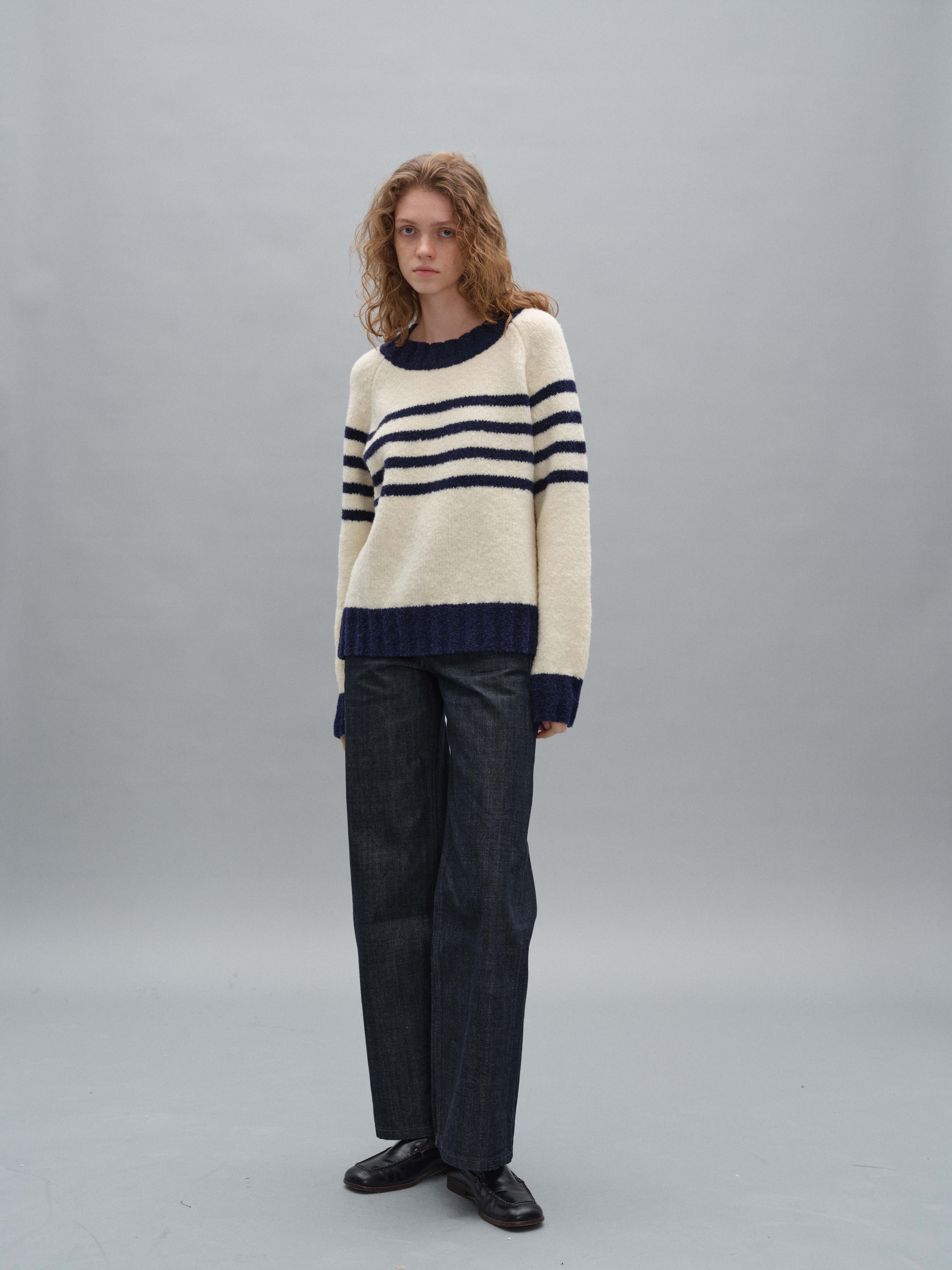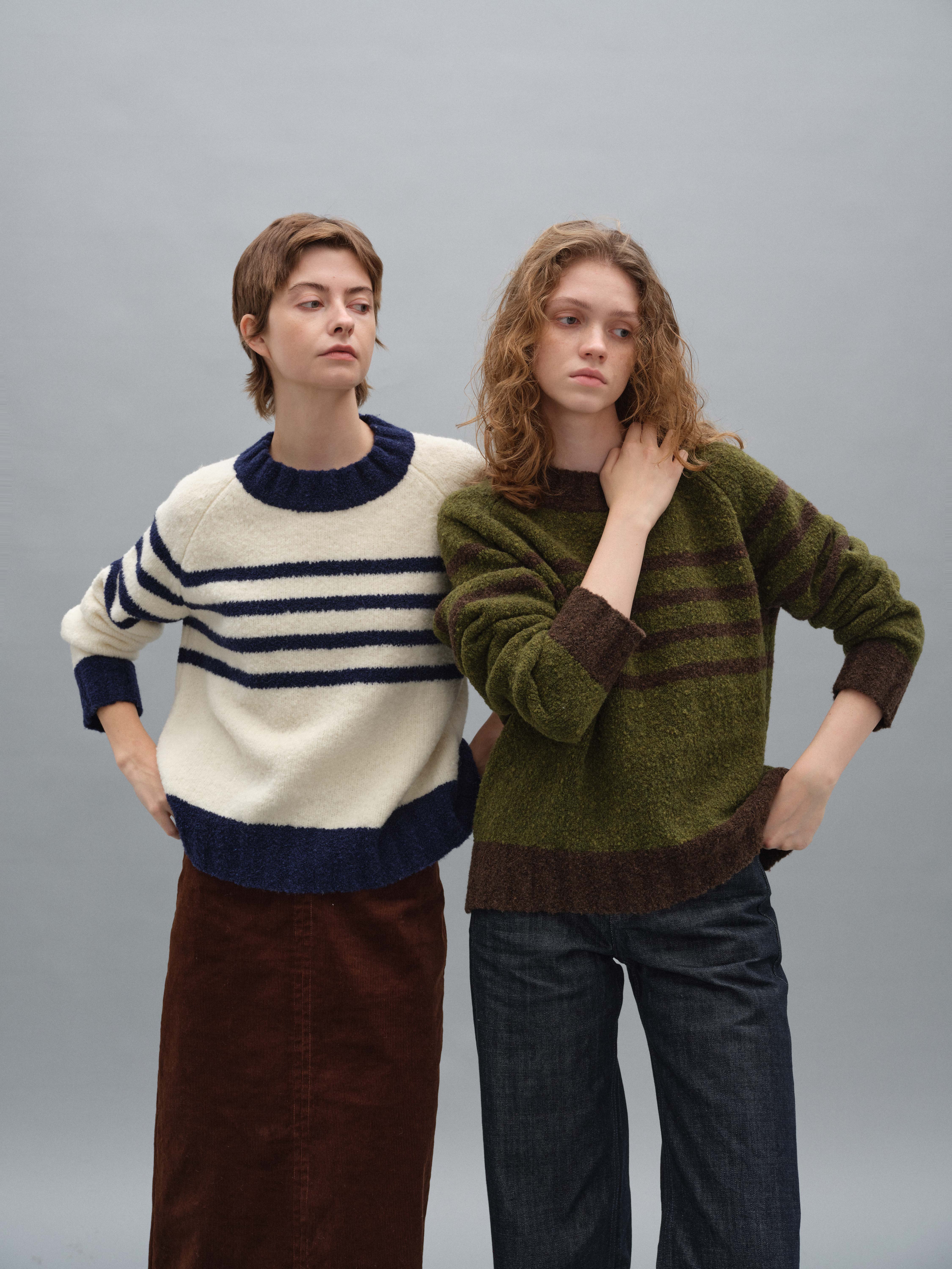 shyshystill/shy202408071/宽边粗条纹撞色宽松圆领套头毛衣
