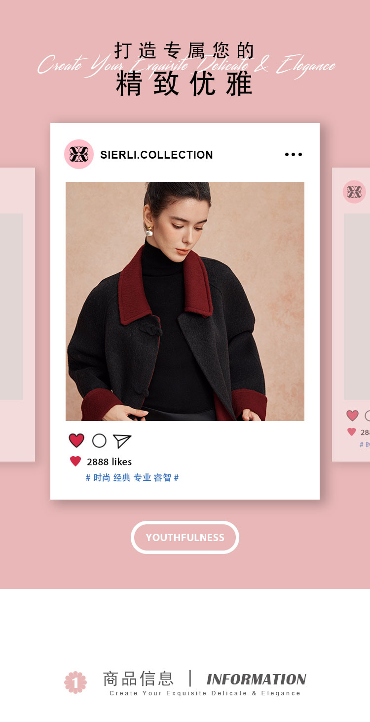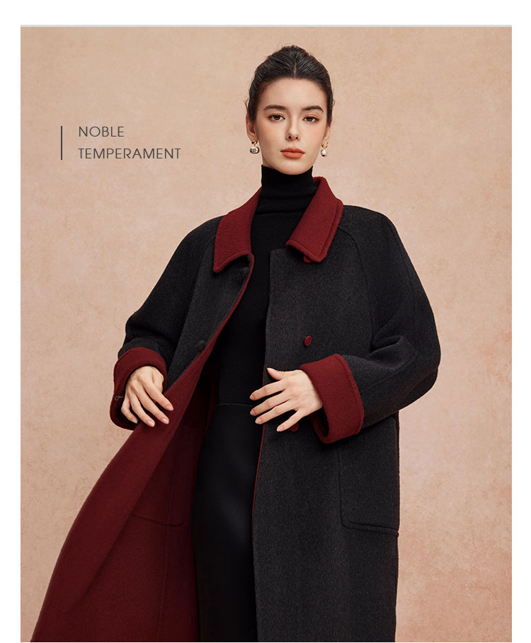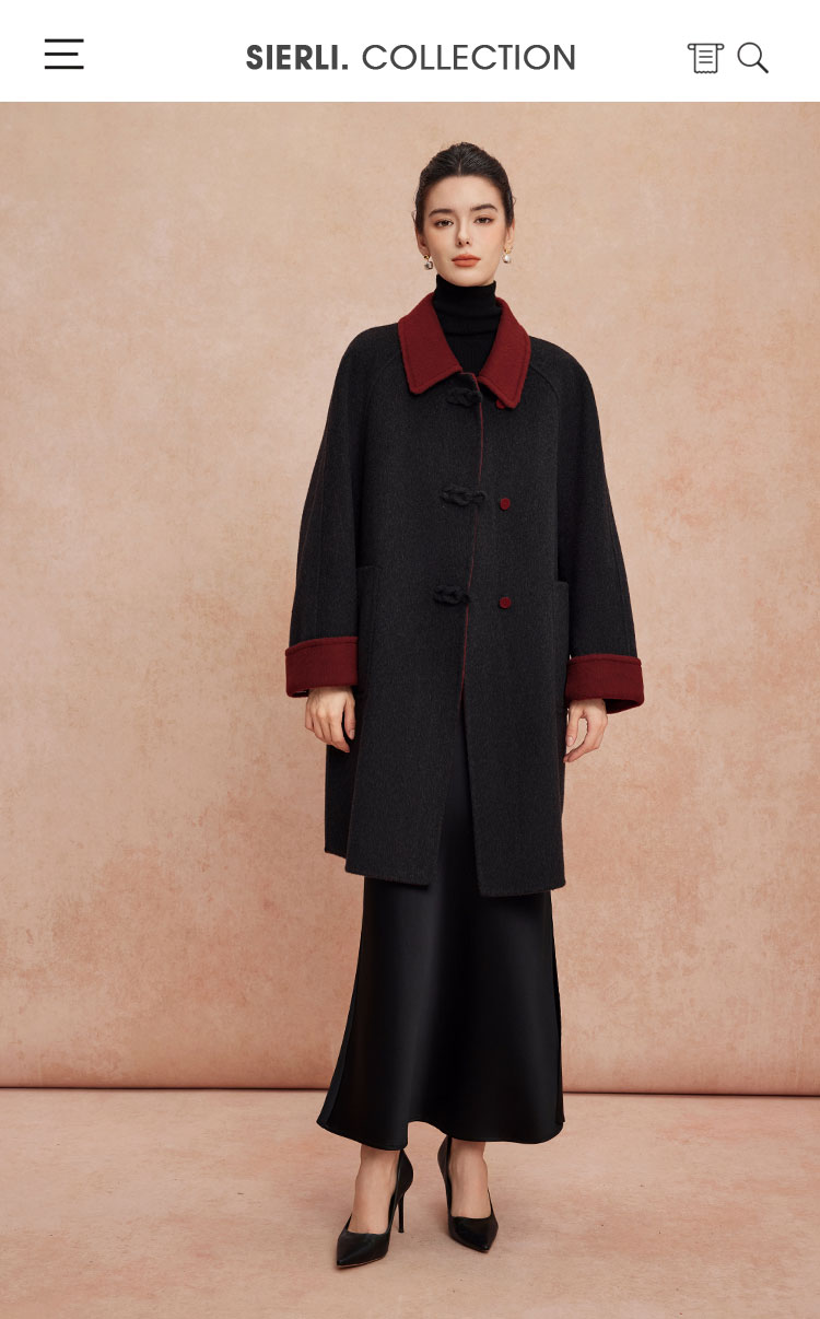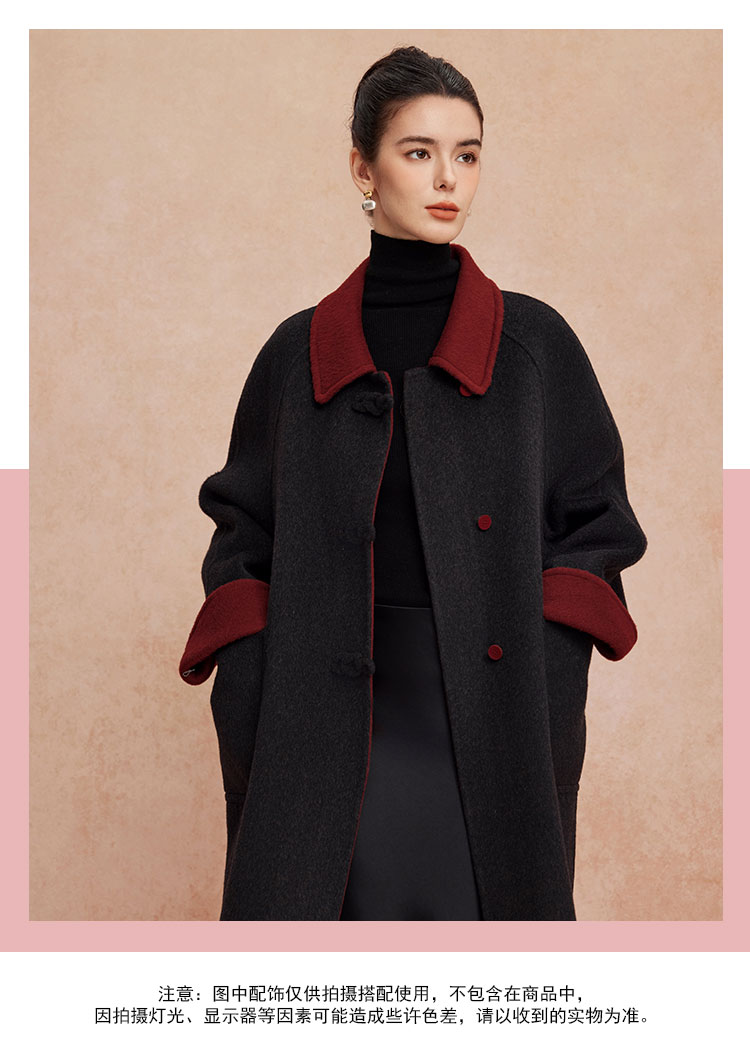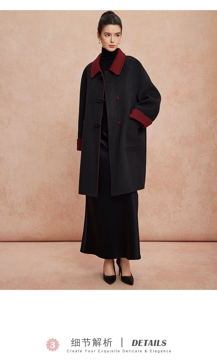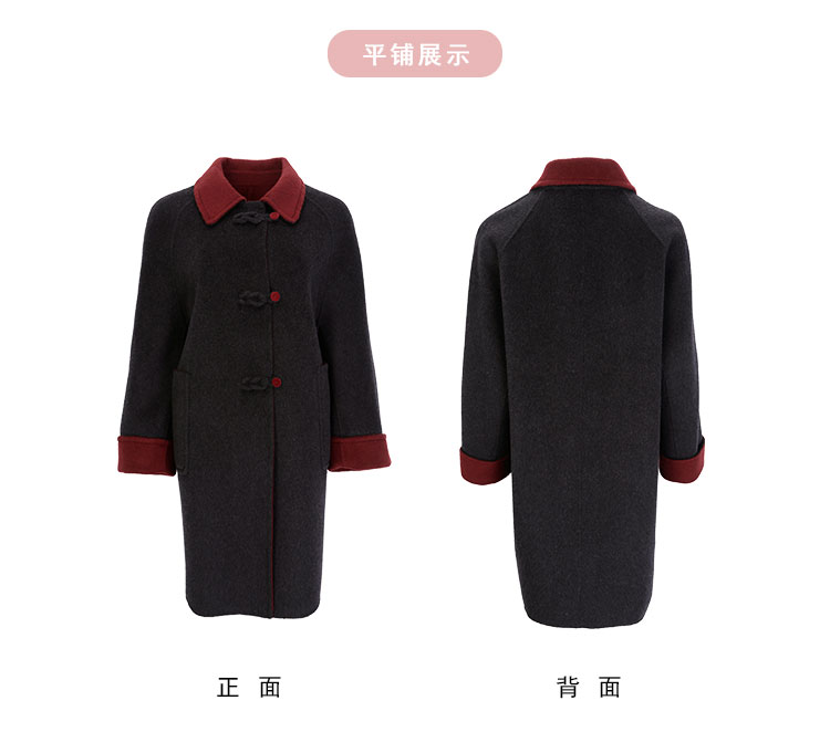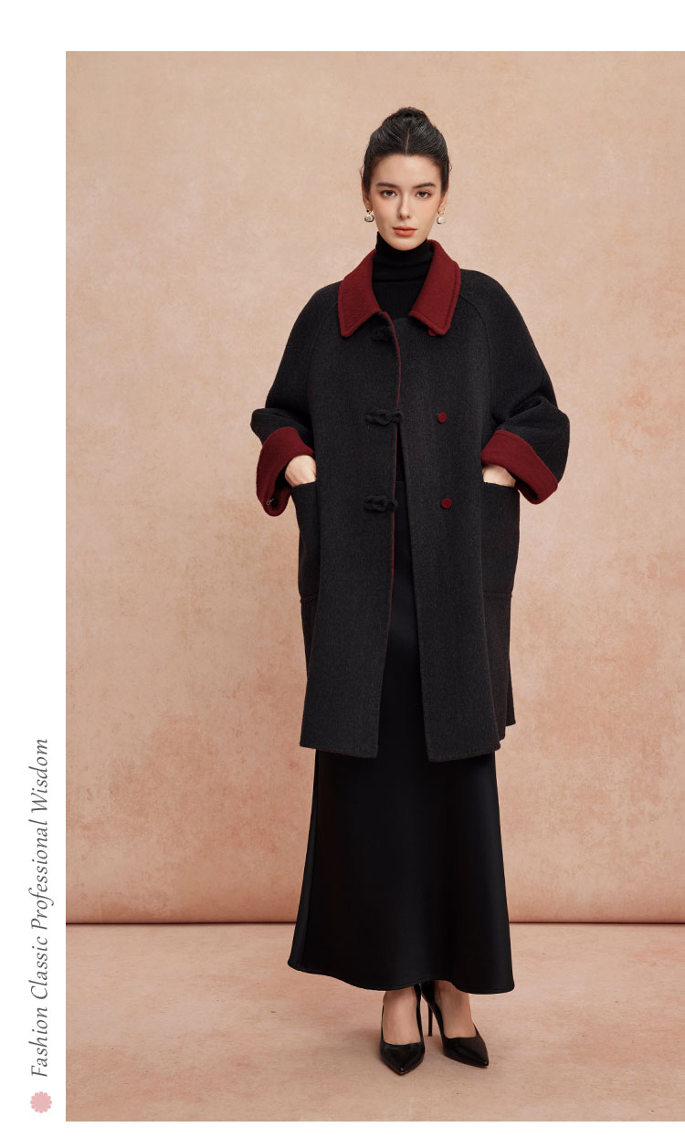 QH923斯尔丽25新款双面双色轻国风H身形盘扣简洁大方OL通勤羊毛大衣