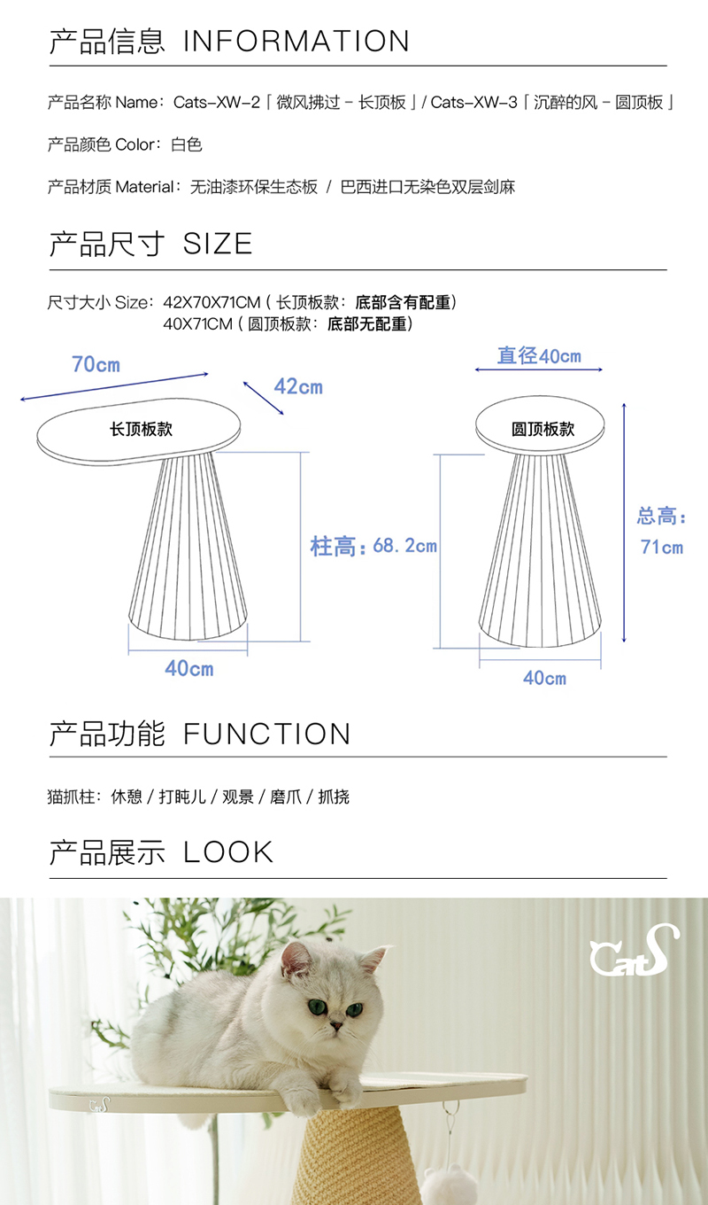 CatS猫家具 向往的风系列猫抓柱猫爬架 进口耐磨不掉屑剑麻太空舱