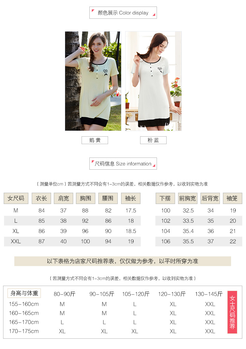 I’d爱帝女式夏季短袖冰丝莫代尔睡裙
