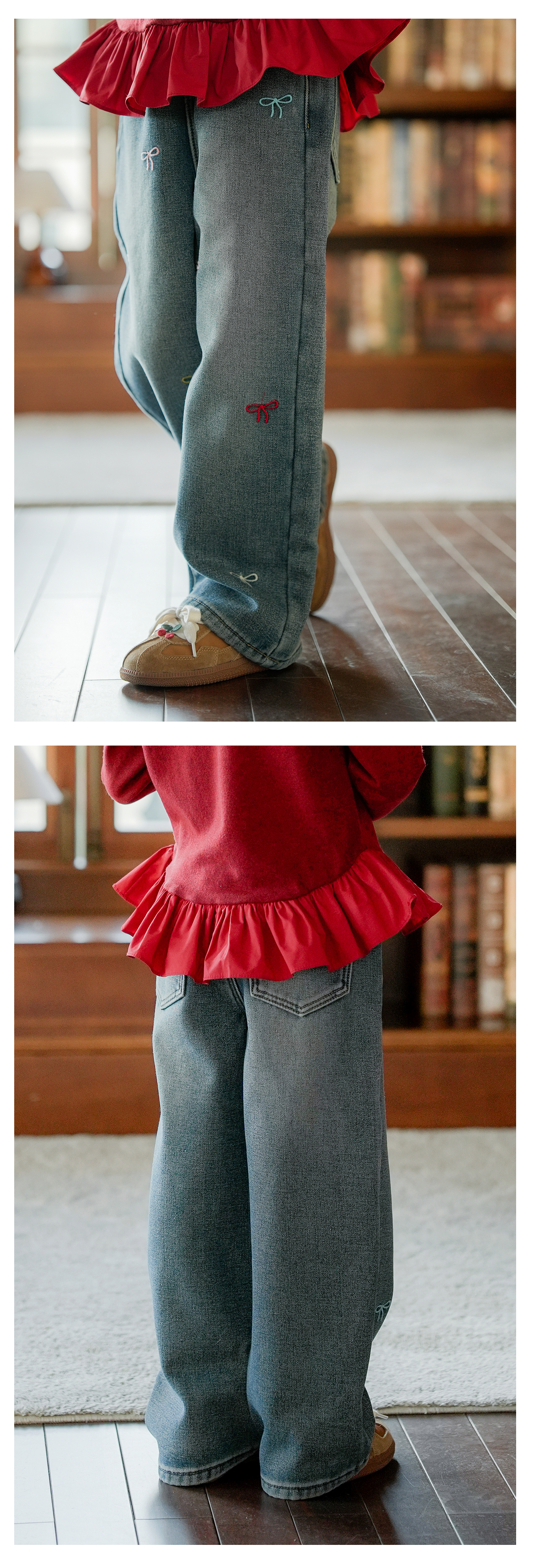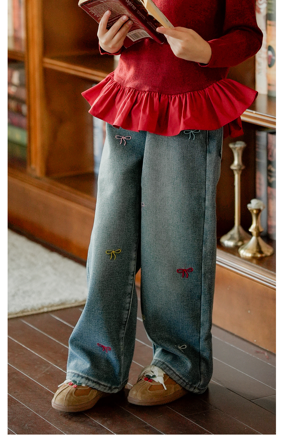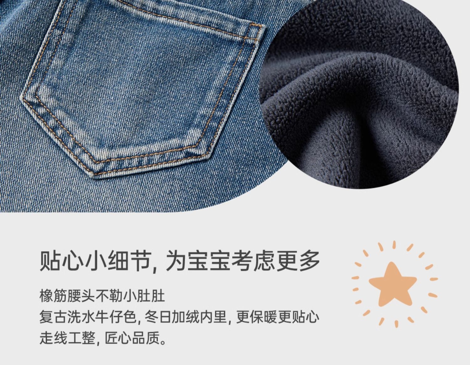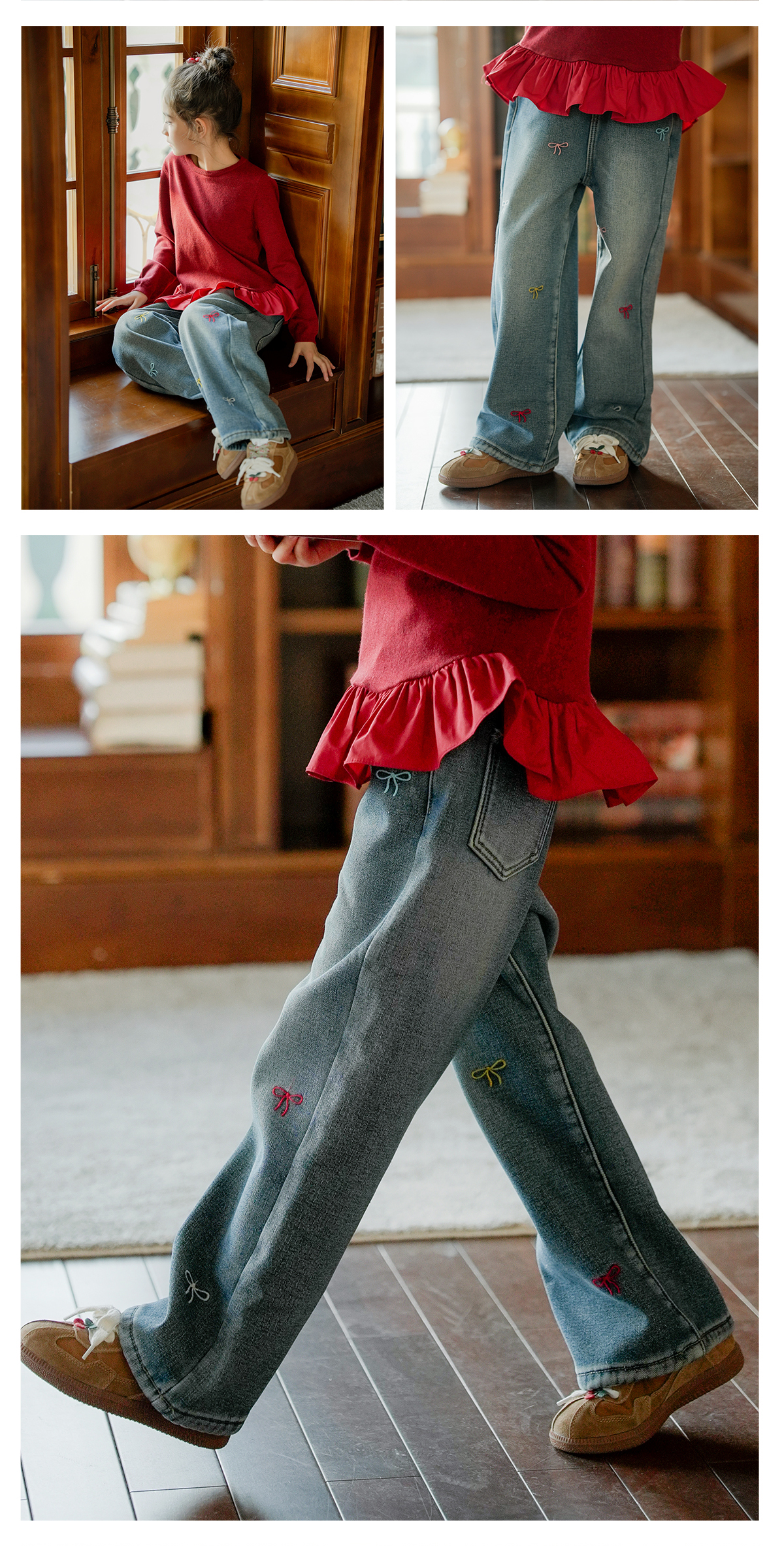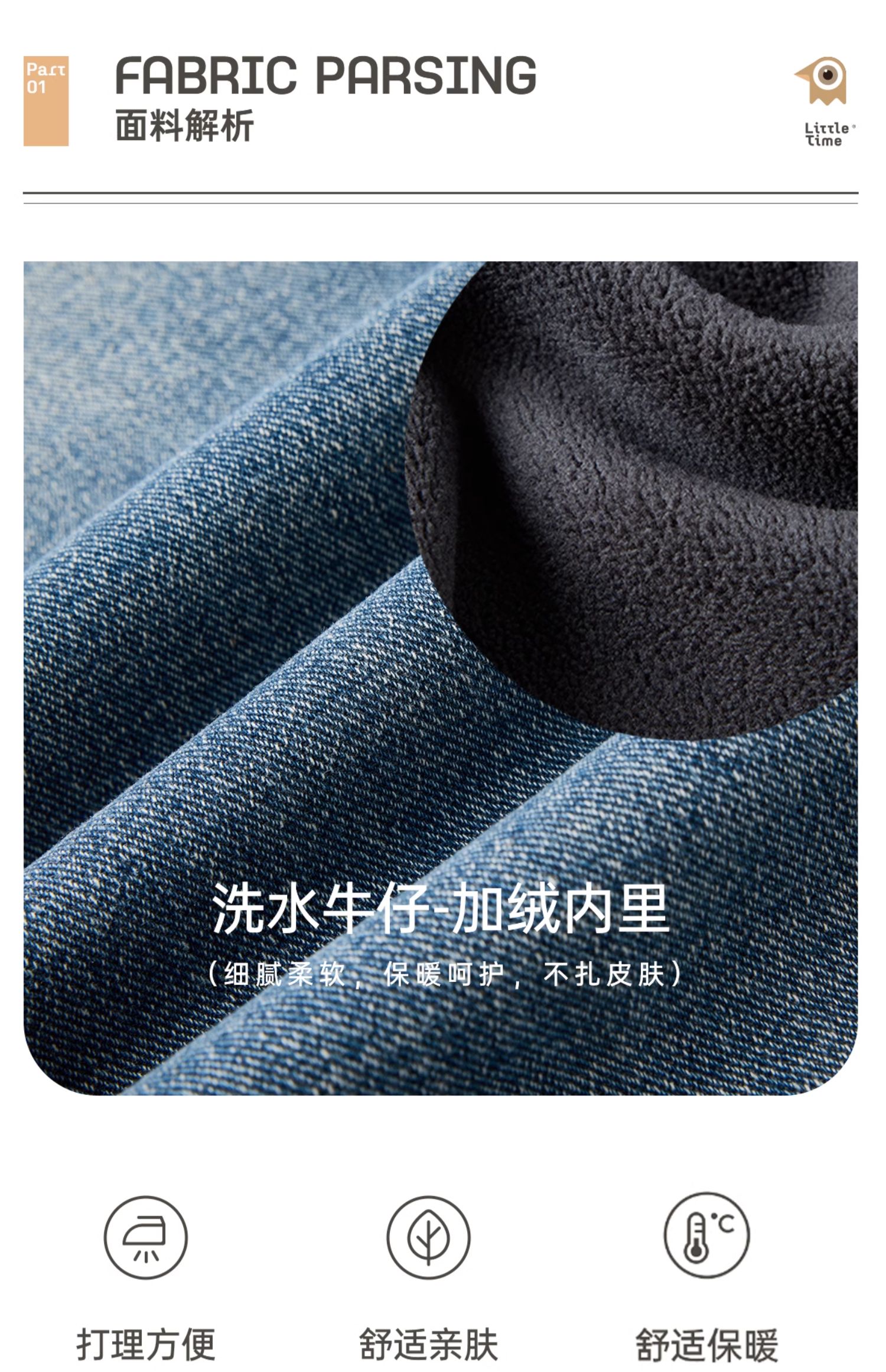 littletime女童牛仔裤秋冬加绒宽松长裤2024新款刺绣儿童直筒裤子