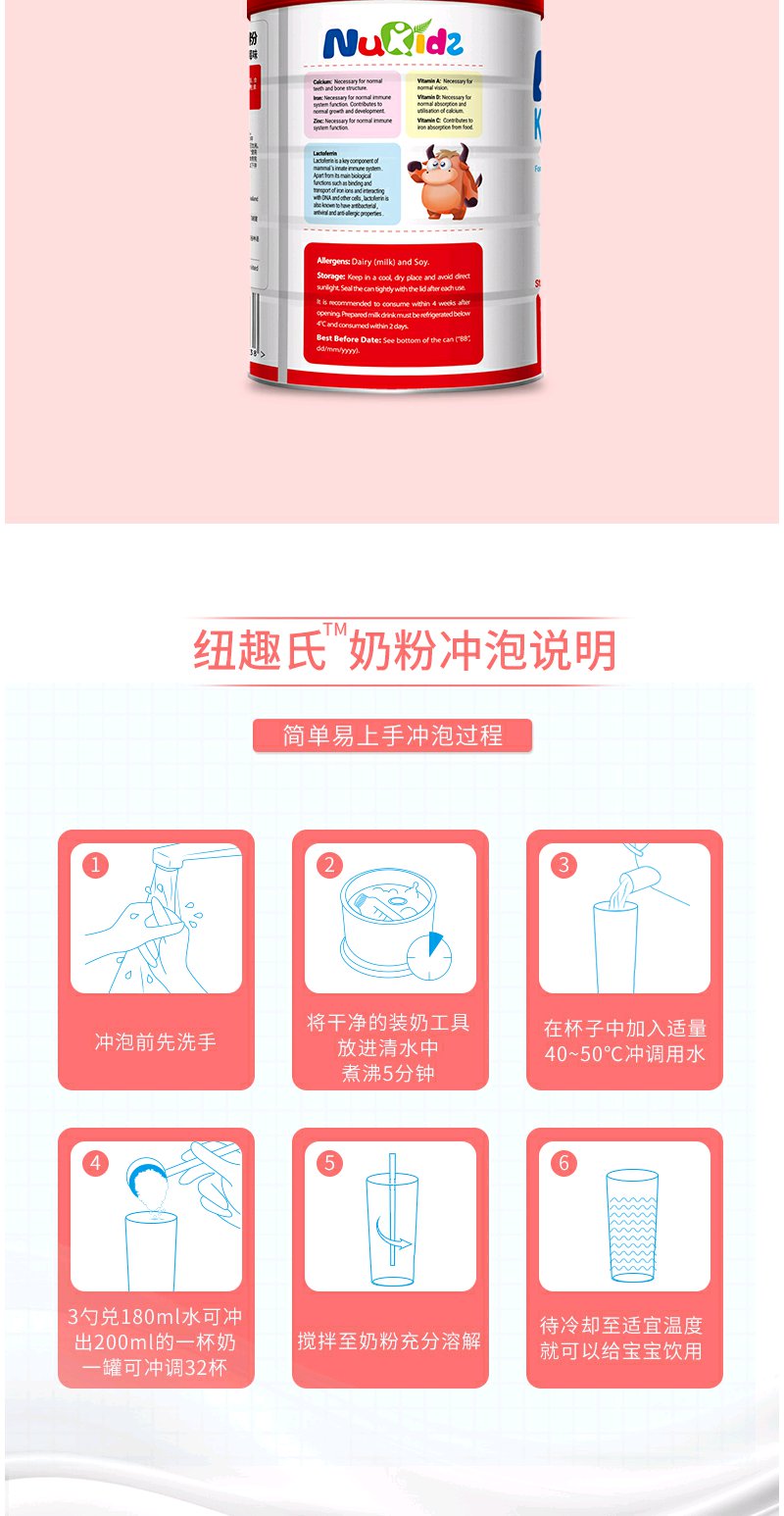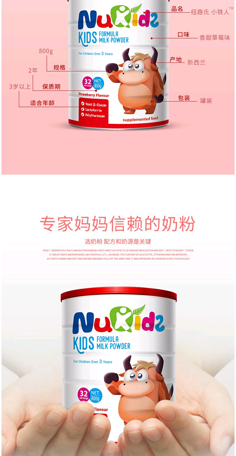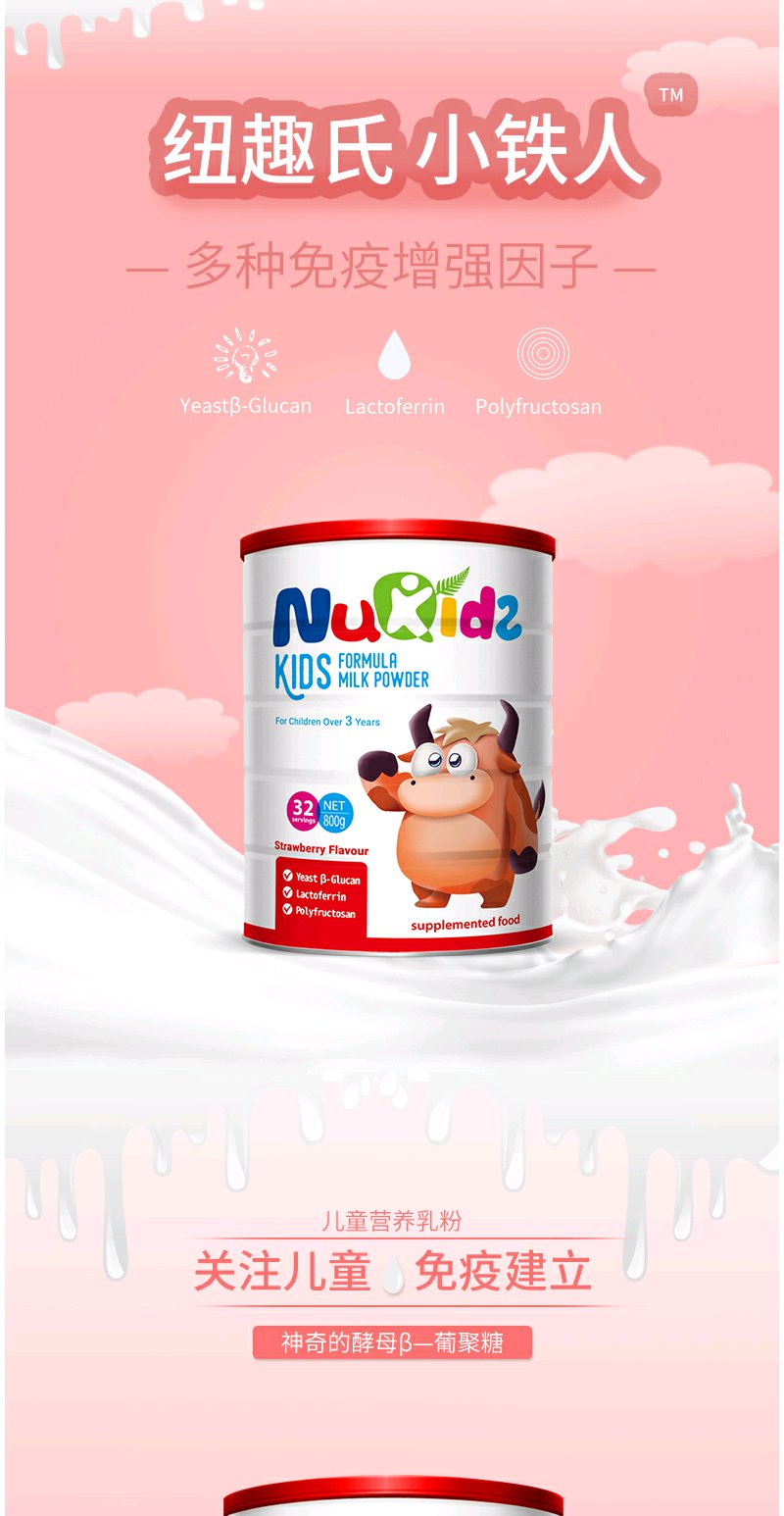 【成长奶粉】纽趣氏新西兰进口儿童成长奶粉小铁人 酵母β葡聚糖提高免疫 800g