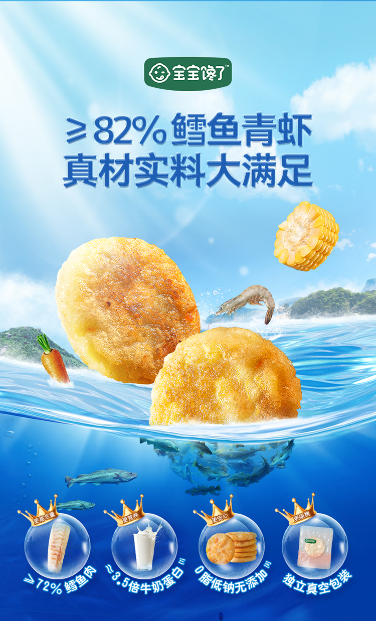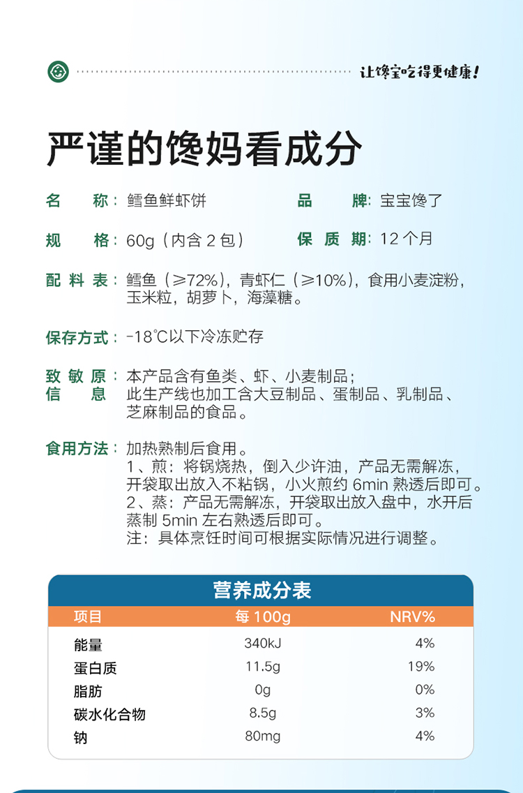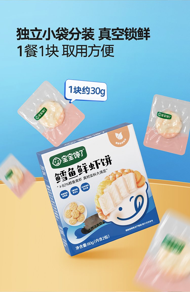【宝宝馋了】鳕鱼鲜虾饼 ≥82%鳕鱼青虾 送6月+婴幼儿食谱