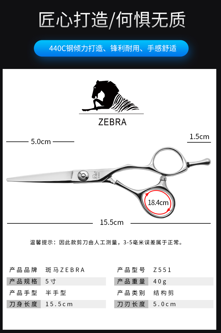 ZEBRA斑马 剪刀 Z551 锋利/直发/刘海/结构剪/线条剪/平剪/半手型/5寸