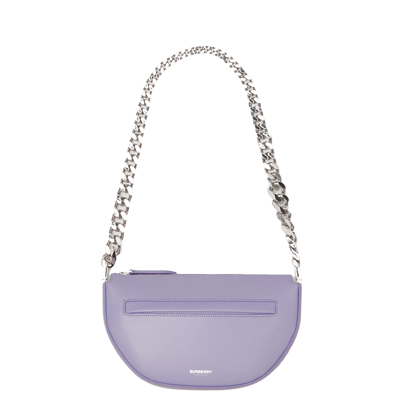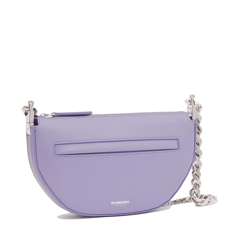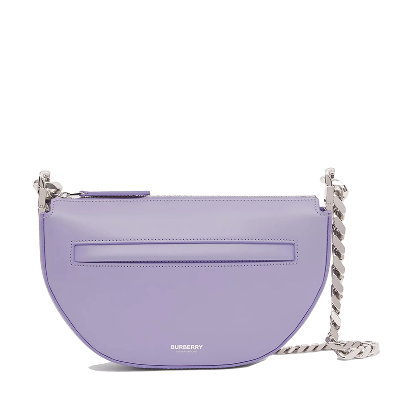【包税】BURBERRY/博柏利 21秋冬新款Olympia系列 女士迷你浅紫色牛皮革拉链开合弧形手提单肩腋下包80490051