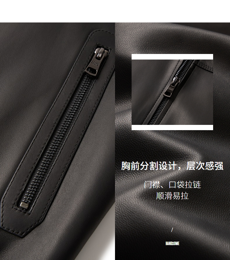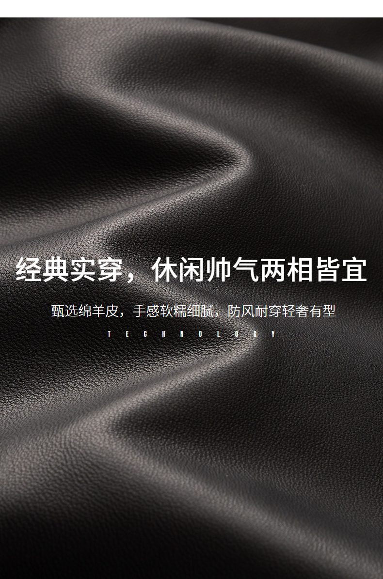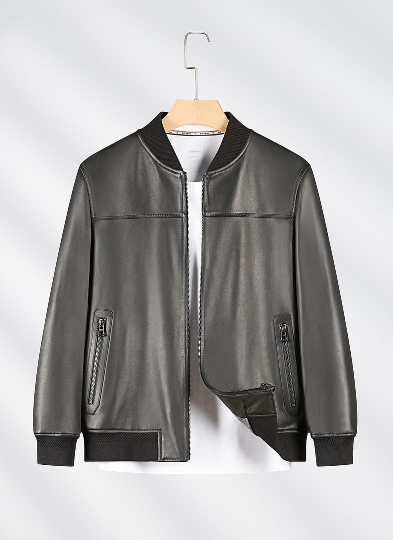 【绵羊皮】柒牌男装真皮皮衣2024秋冬新款商务棒球领男士黑色外套 127J70060