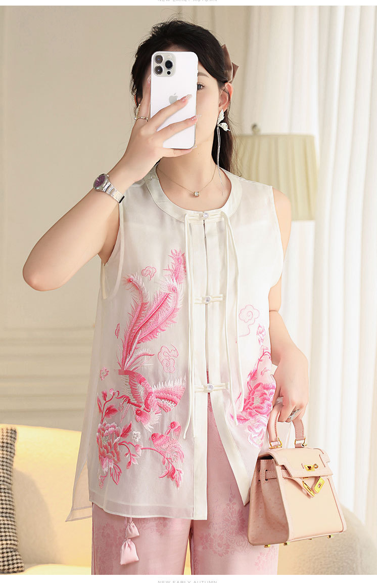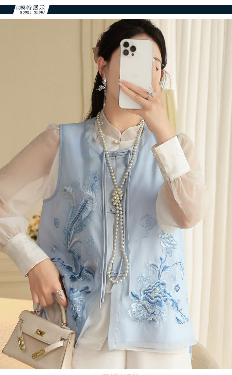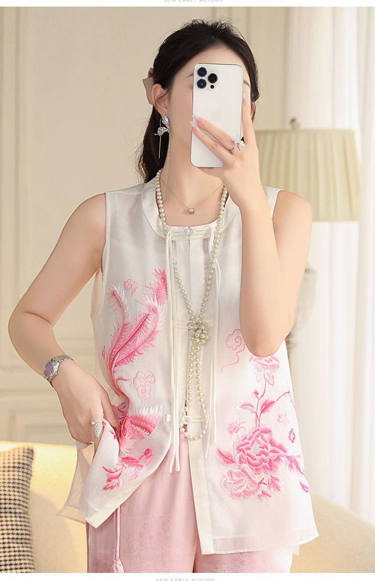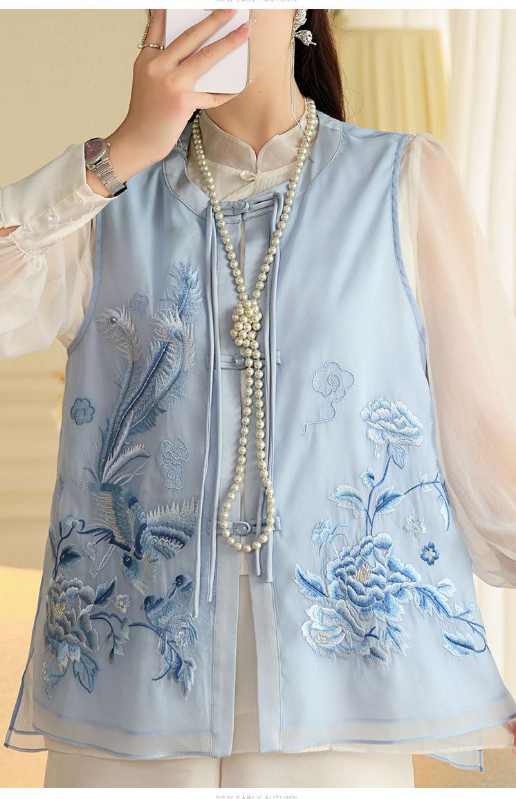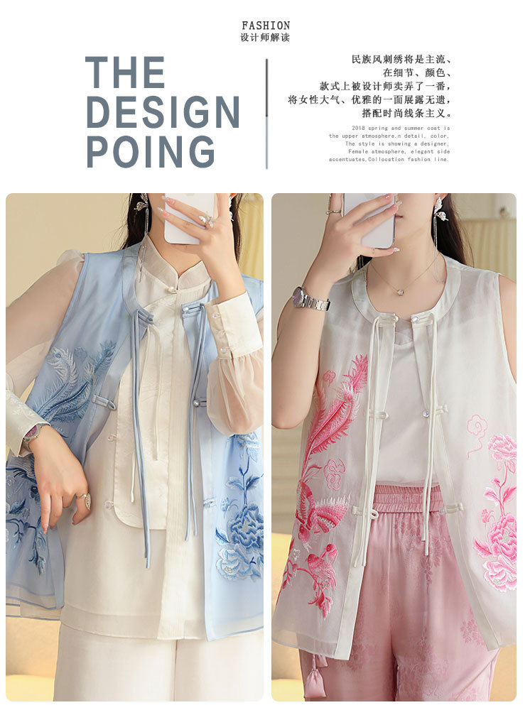 时尚气质复古民族风,凤凰刺绣外搭背心上衣OG- A9338