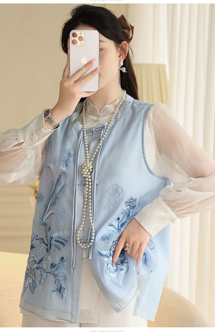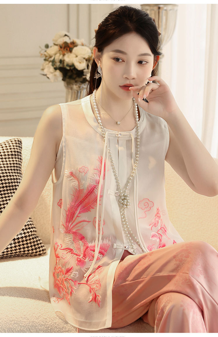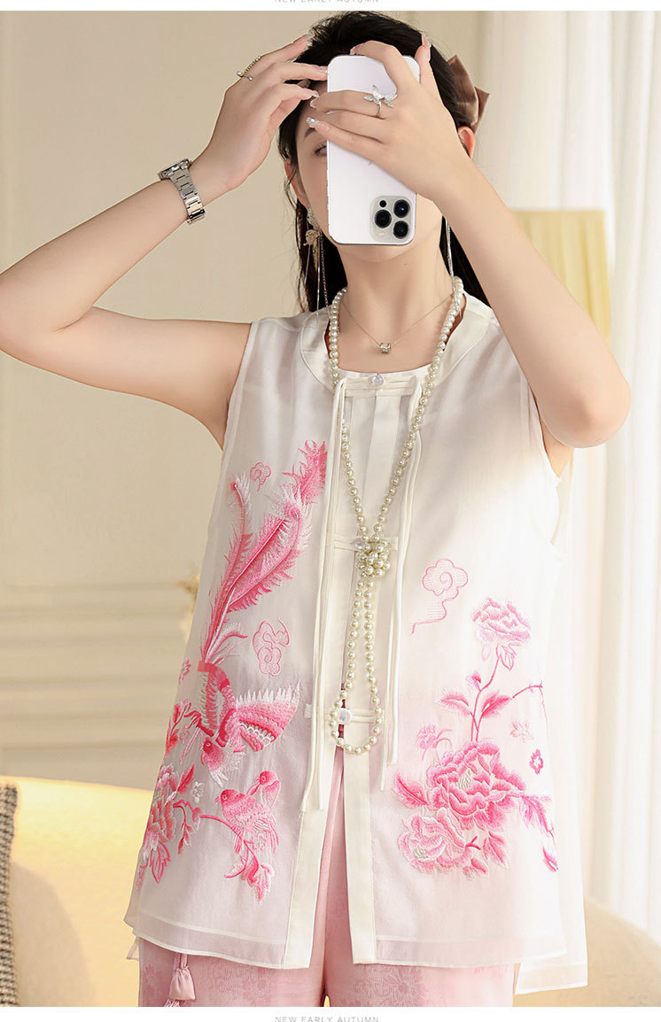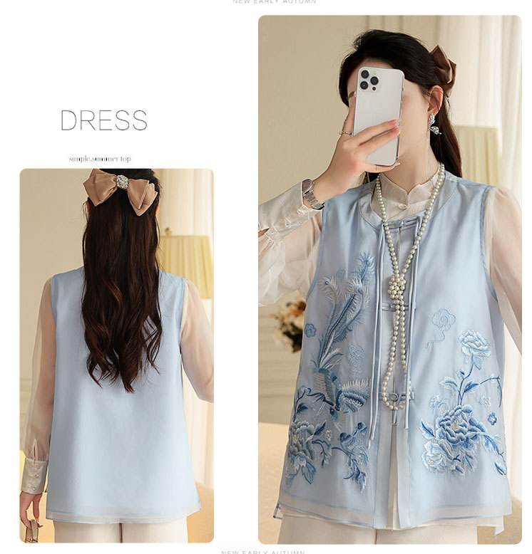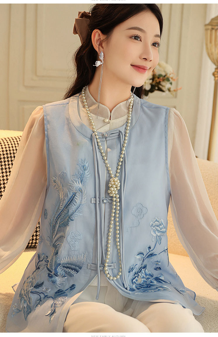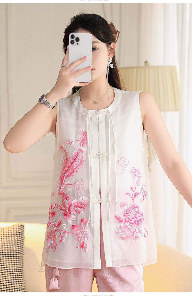 时尚气质复古民族风,凤凰刺绣外搭背心上衣OG- A9338