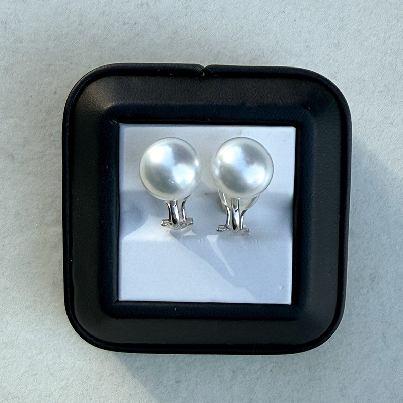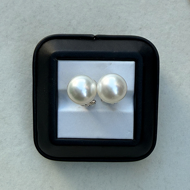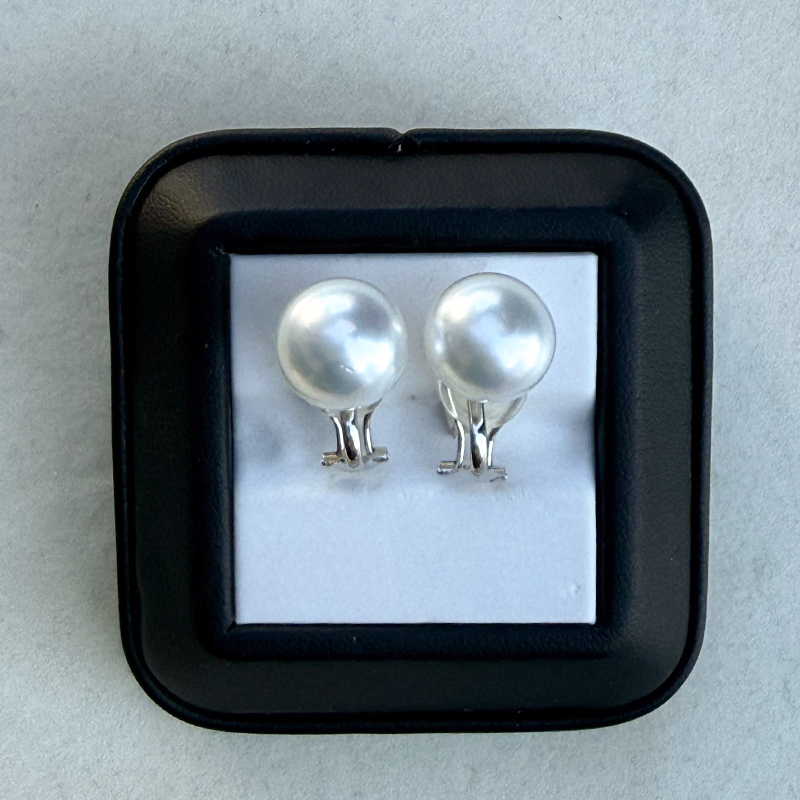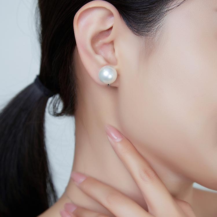 【挚友限定】(经典款)18K金澳白珍珠耳夹 扁圆形极光等级