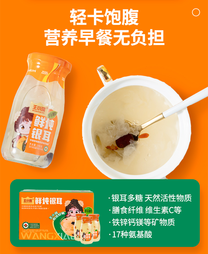 【有机鲜炖银耳】 开盖即食营养便捷 0添加剂 真空密封锁鲜 198g*6瓶